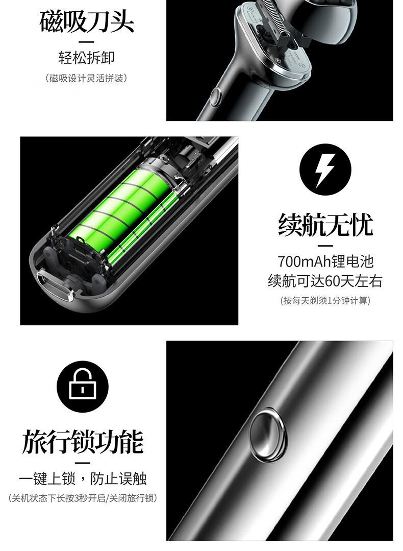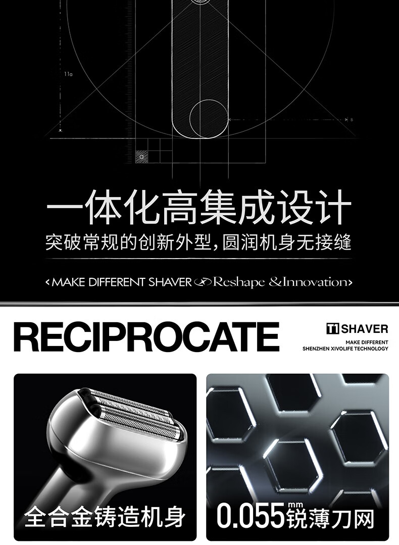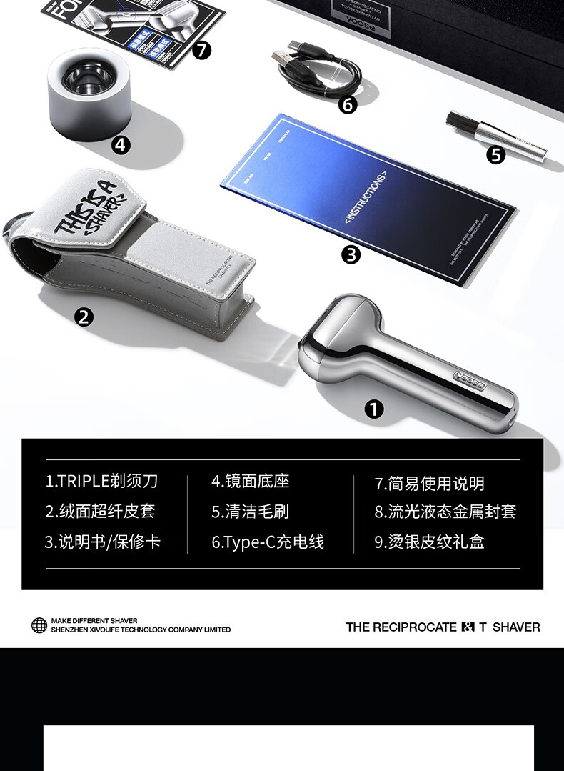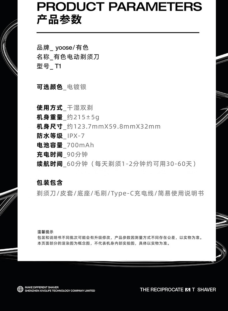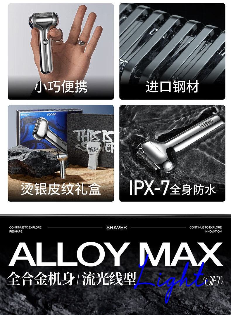 【有色T1】有色(yoose)电动剃须刀 迷你便携 往复式三刀头 刮胡刀 全身防水 节日礼物送男友 胡须刀礼盒