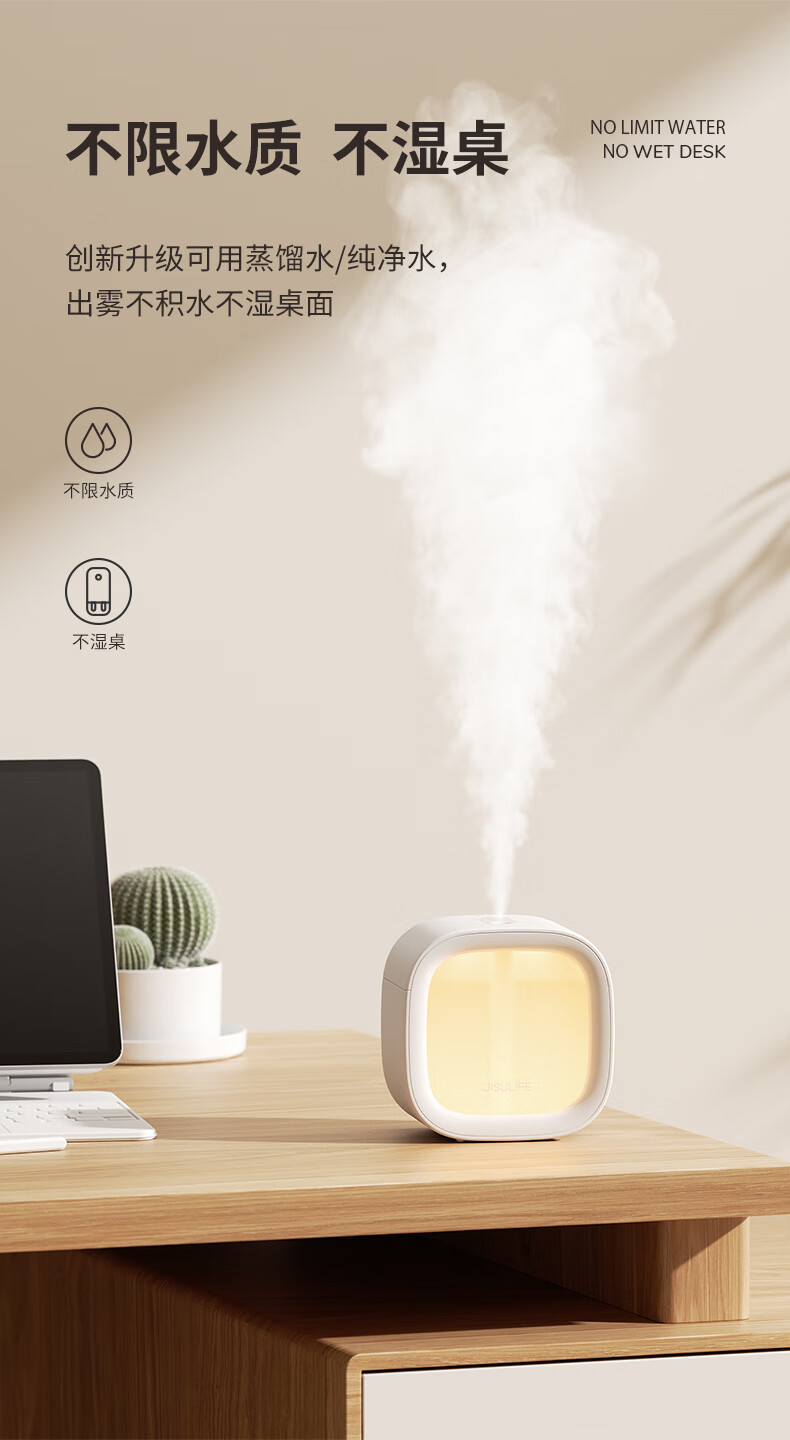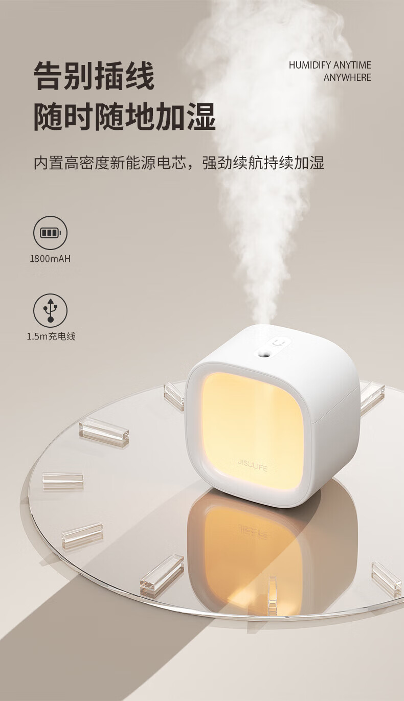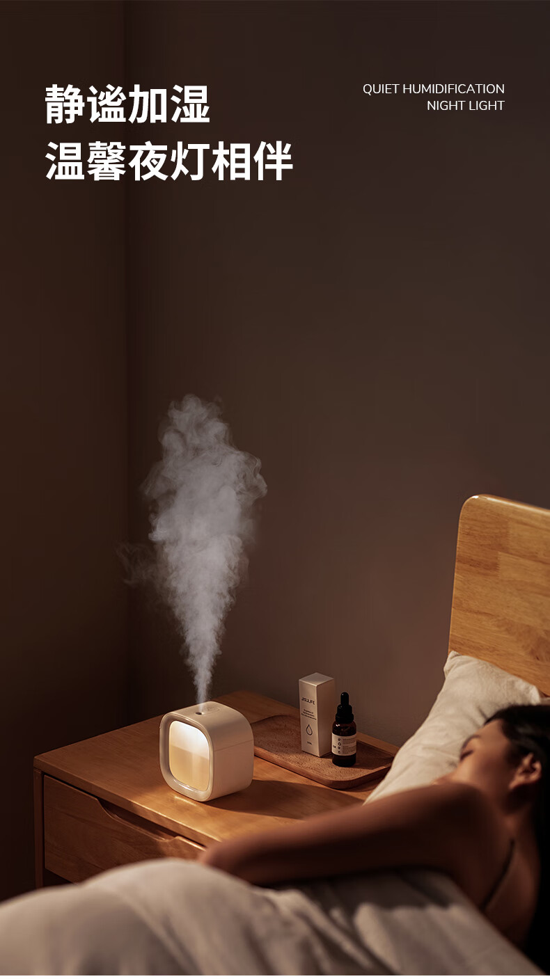 几素加湿器桌面办公桌卧室宿舍迷你便携小型无线空气婴儿床头小巧办公室充电车载生日礼物香薰机加湿 棕色【温馨夜灯_可加香薰_不挑水质】