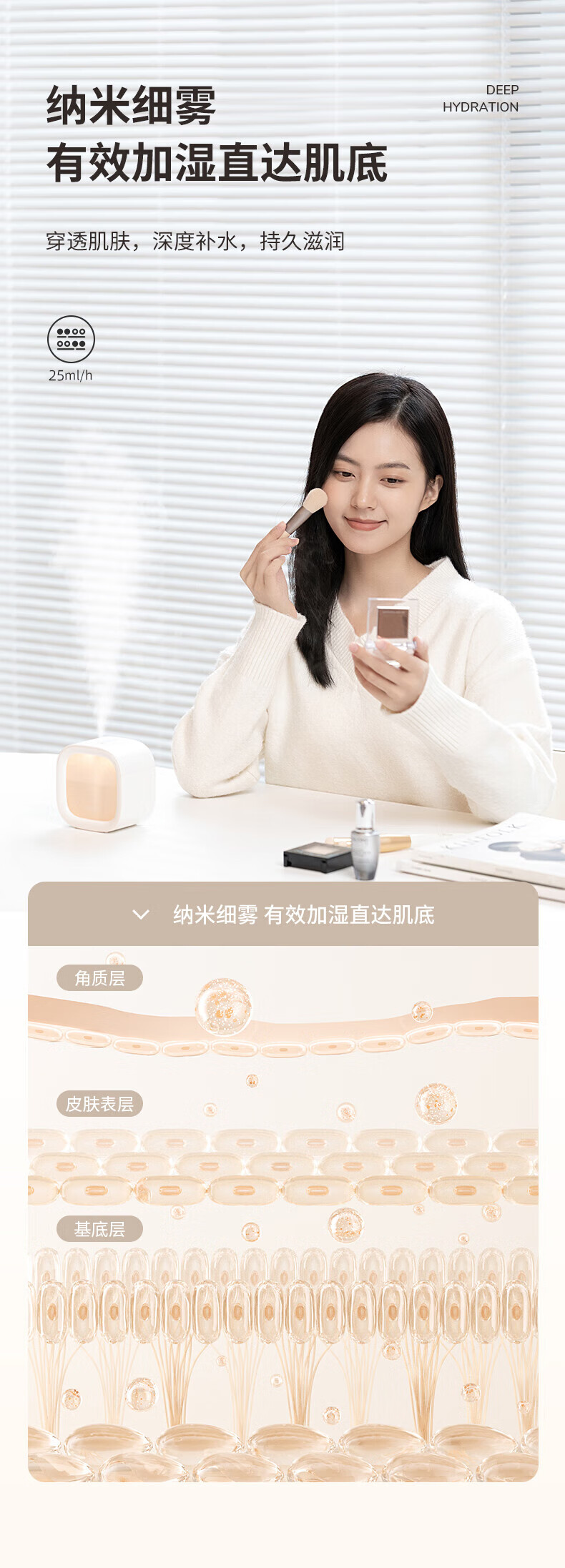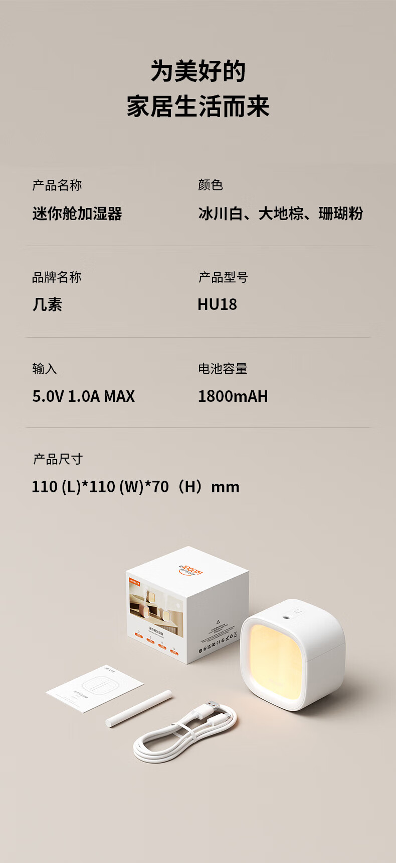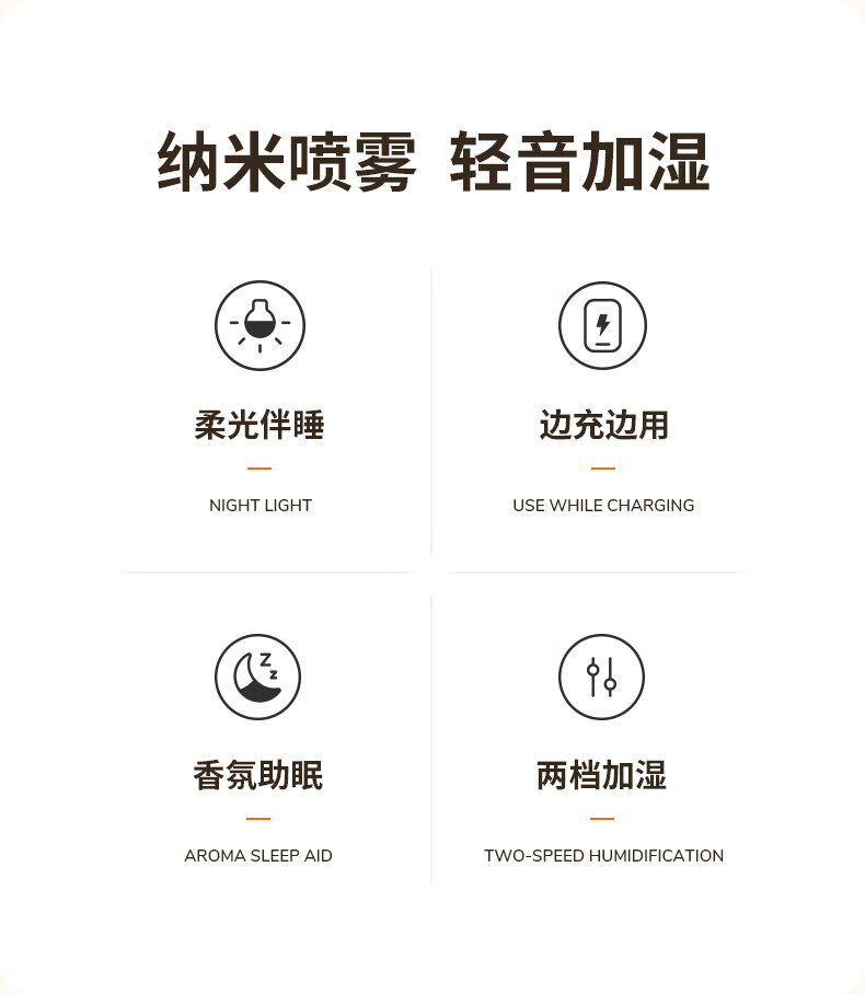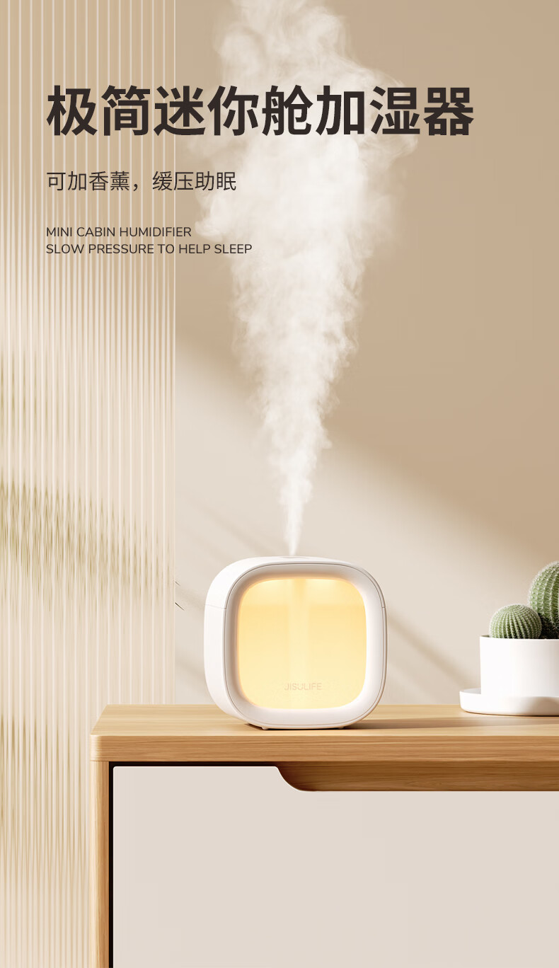 几素加湿器桌面办公桌卧室宿舍迷你便携小型无线空气婴儿床头小巧办公室充电车载生日礼物香薰机加湿 棕色【温馨夜灯_可加香薰_不挑水质】