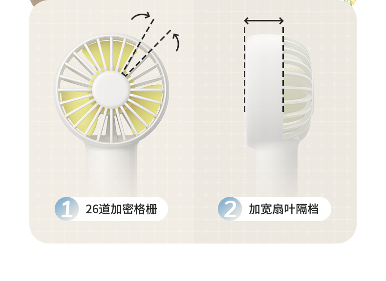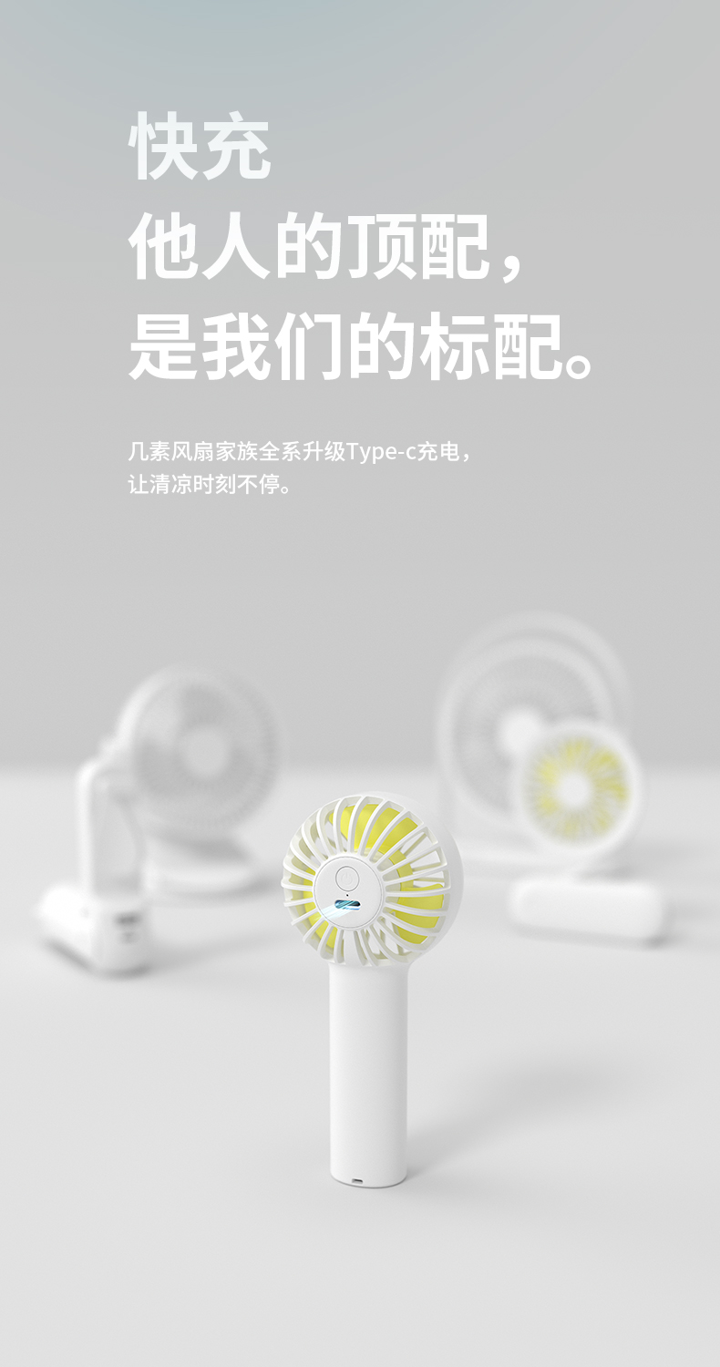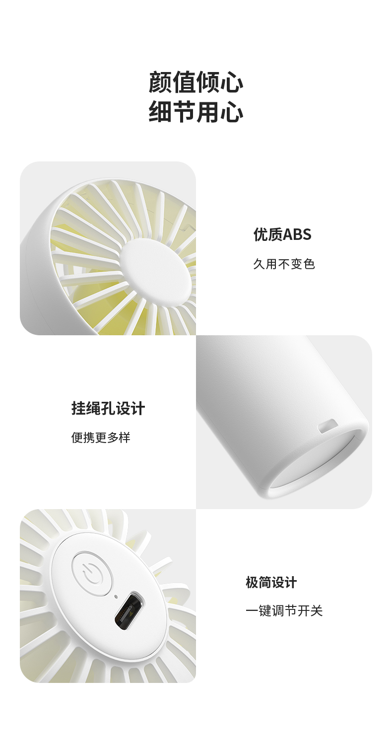 几素 手持小风扇迷你便携式usb充电风扇儿童学生宿舍随身小型户外挂脖口袋 小黄鸭露营小电扇 【冰川白】大风力_长续航_带挂绳