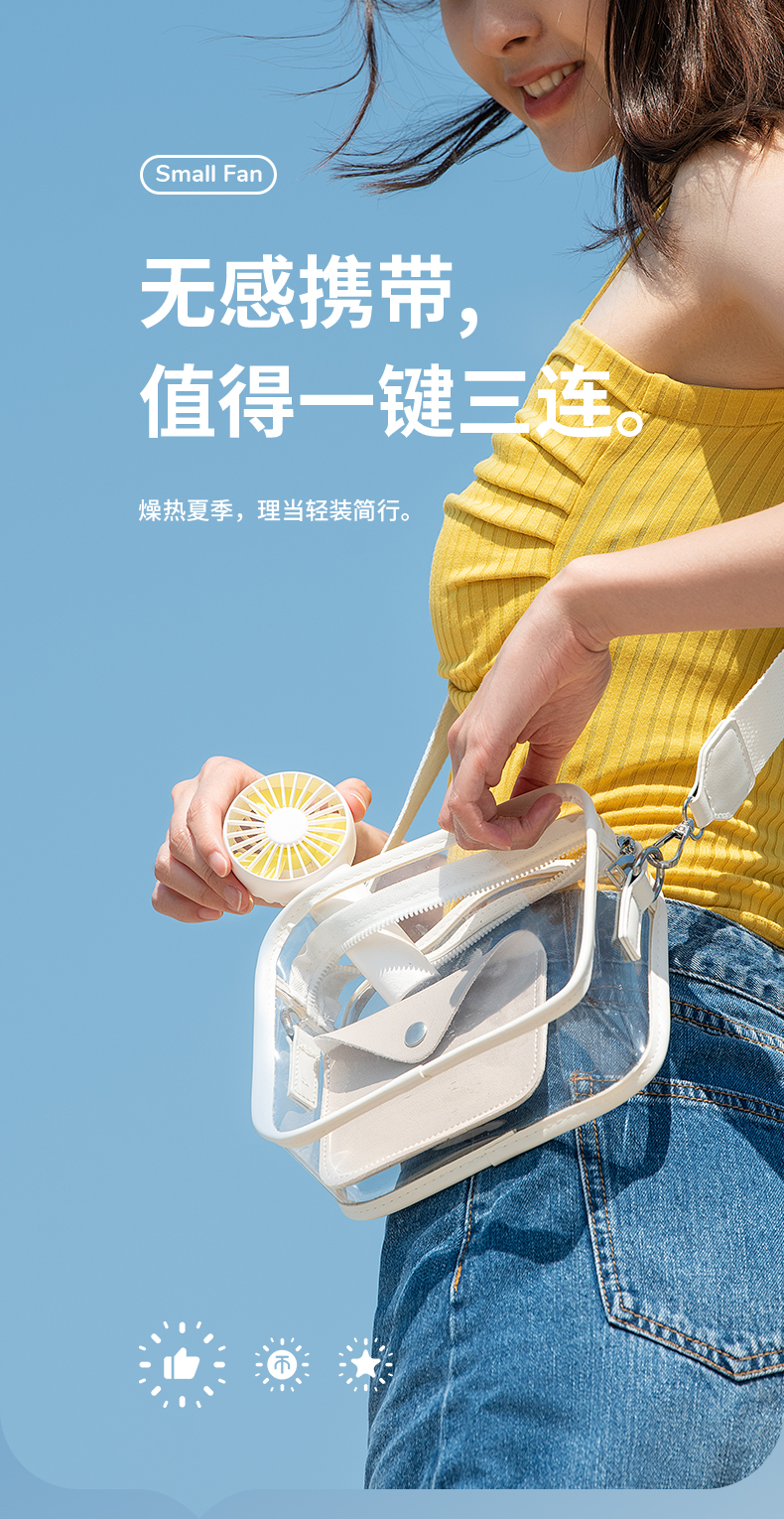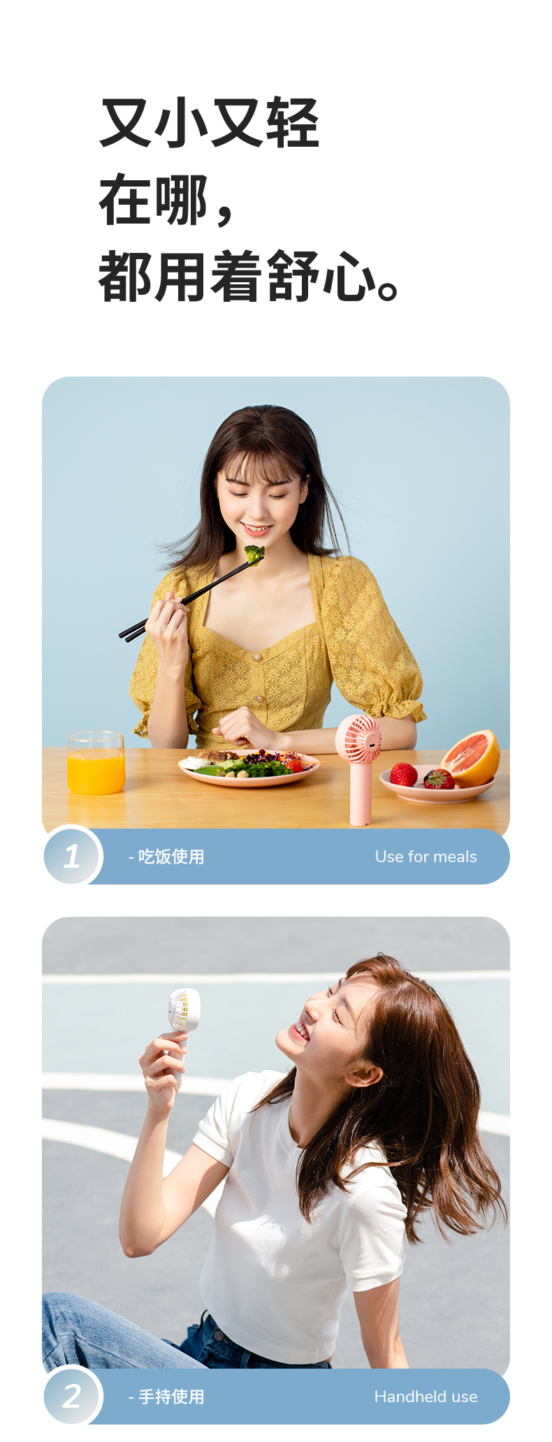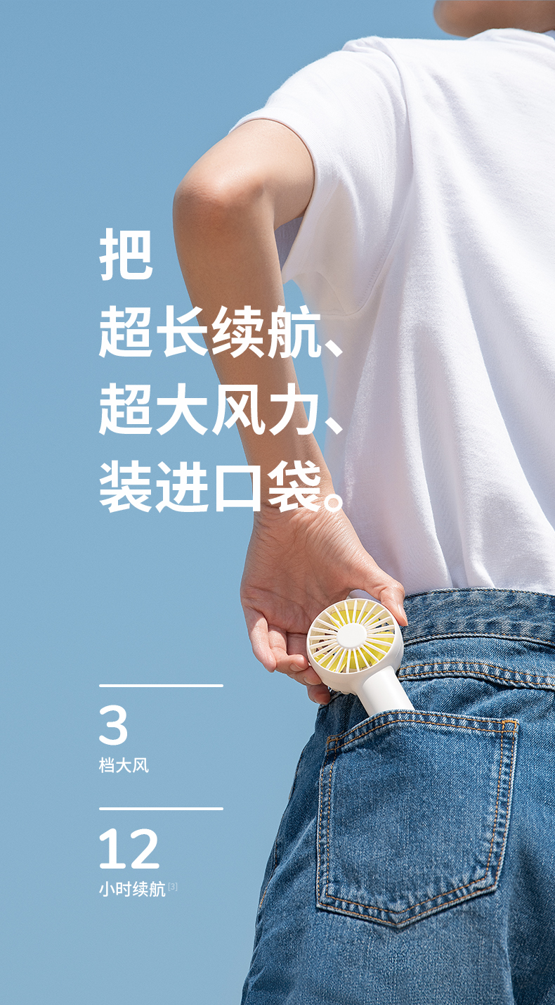 几素 手持小风扇迷你便携式usb充电风扇儿童学生宿舍随身小型户外挂脖口袋 小黄鸭露营小电扇 【冰川白】大风力_长续航_带挂绳