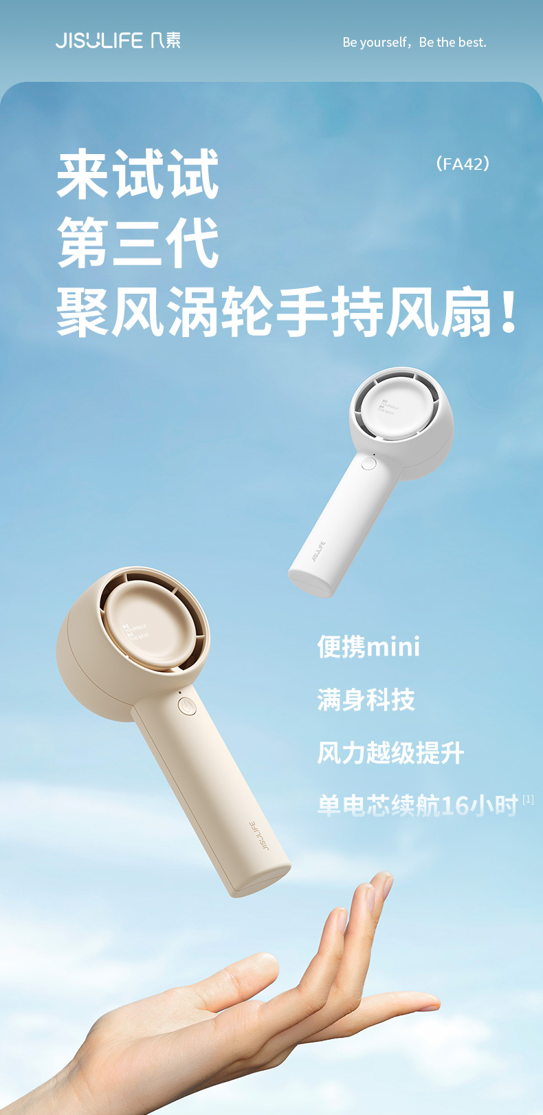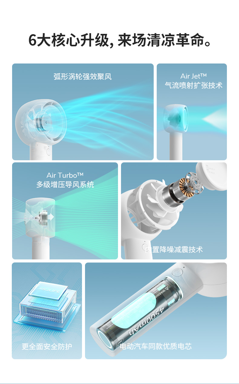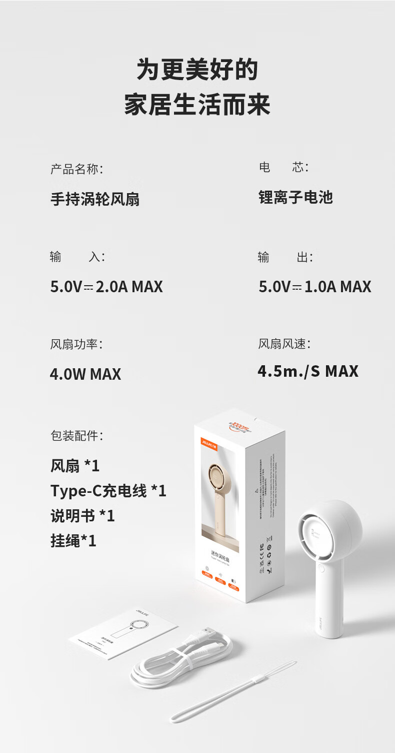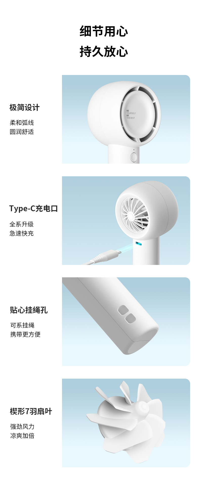 几素 【涡轮聚风】小风扇手持迷你小型随身便携式usb充电大风力办公室学生宿舍手拿儿童无叶轻音电风扇 【层云白】轻巧版_3挡劲风_2000mAh_挂绳