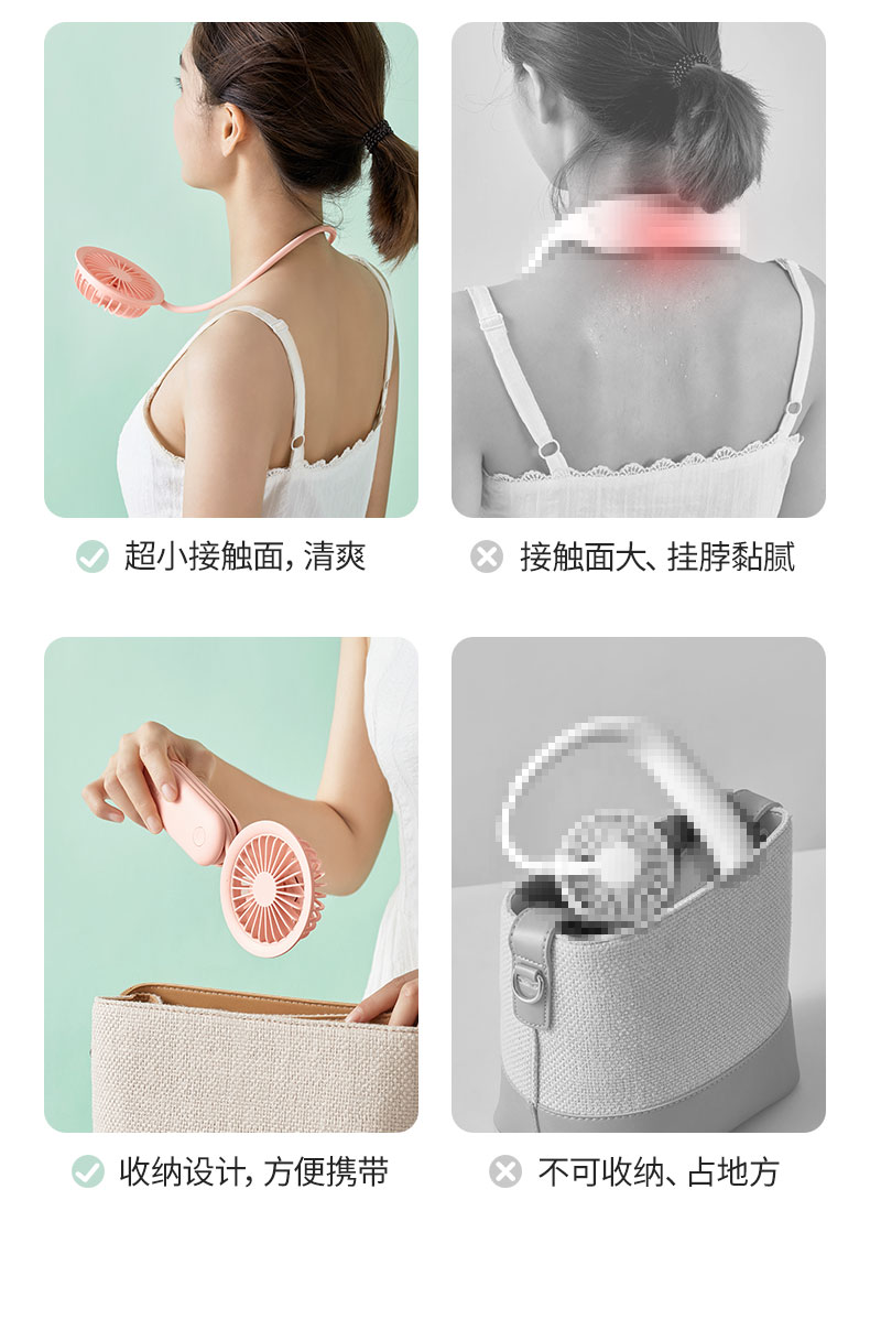 几素挂脖小风扇手持便携式迷你随身小型携带挂脖子可充电电风扇USB静音儿童婴儿车折叠手表电扇桌面办公室