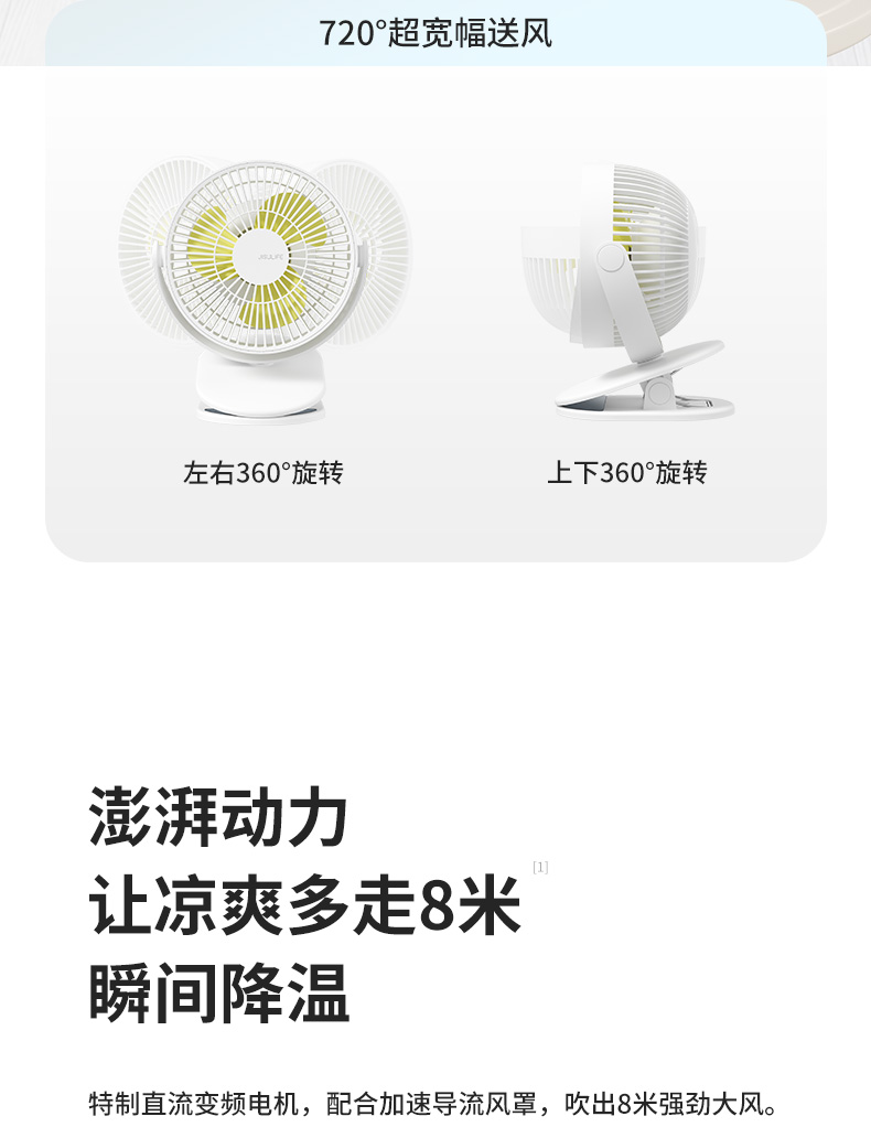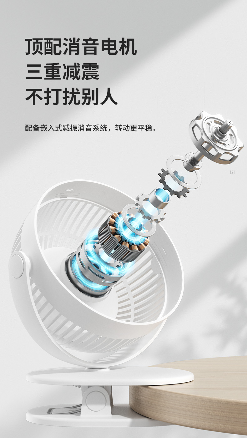 几素 usb小风扇夹子型桌面风扇办公室充电风扇台式学生宿舍床头睡眠夹扇婴儿车风扇户外露营小电扇 【白色升级款-插线版】720度旋转_4挡大风