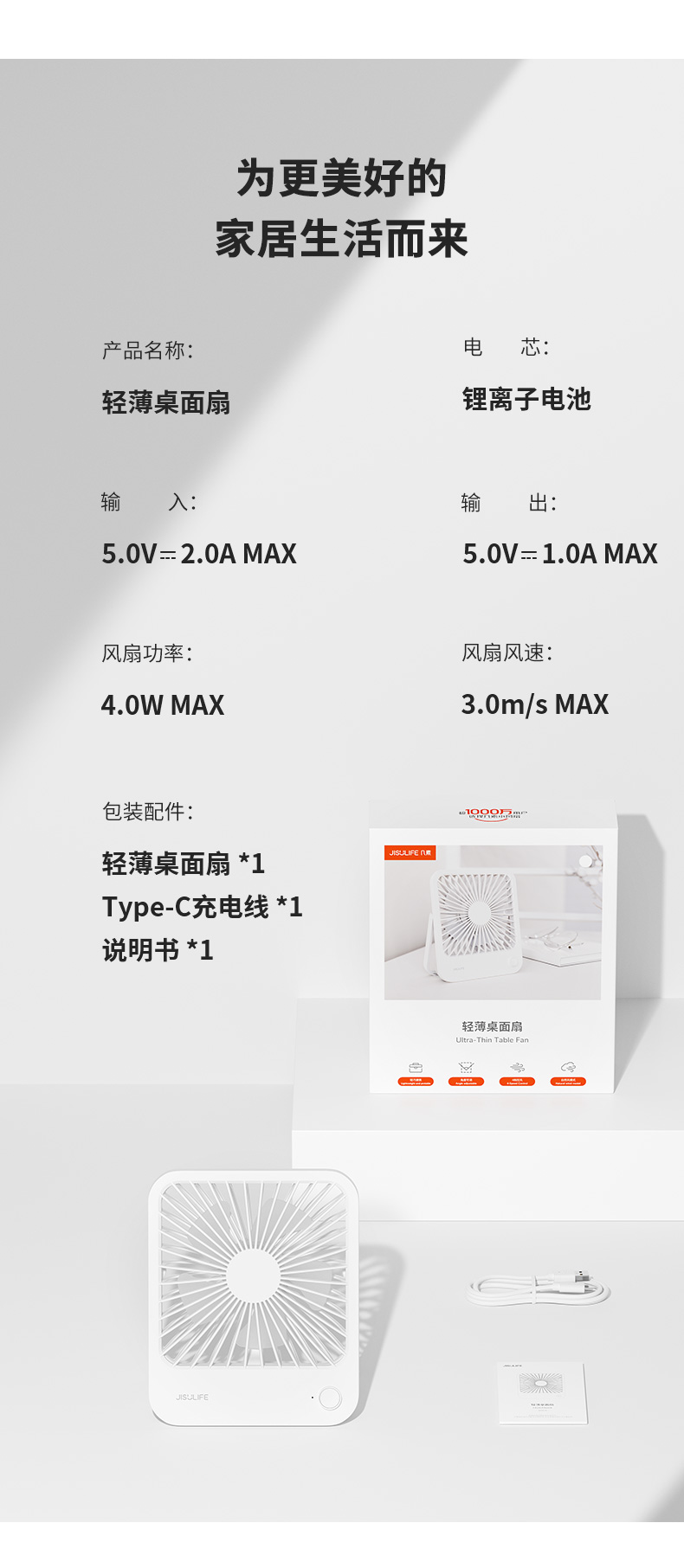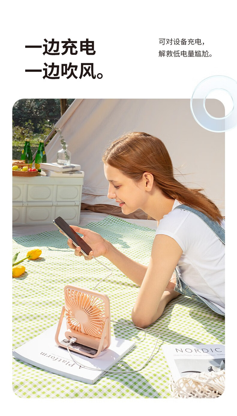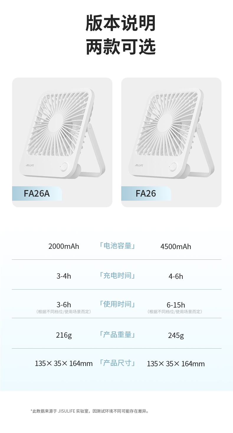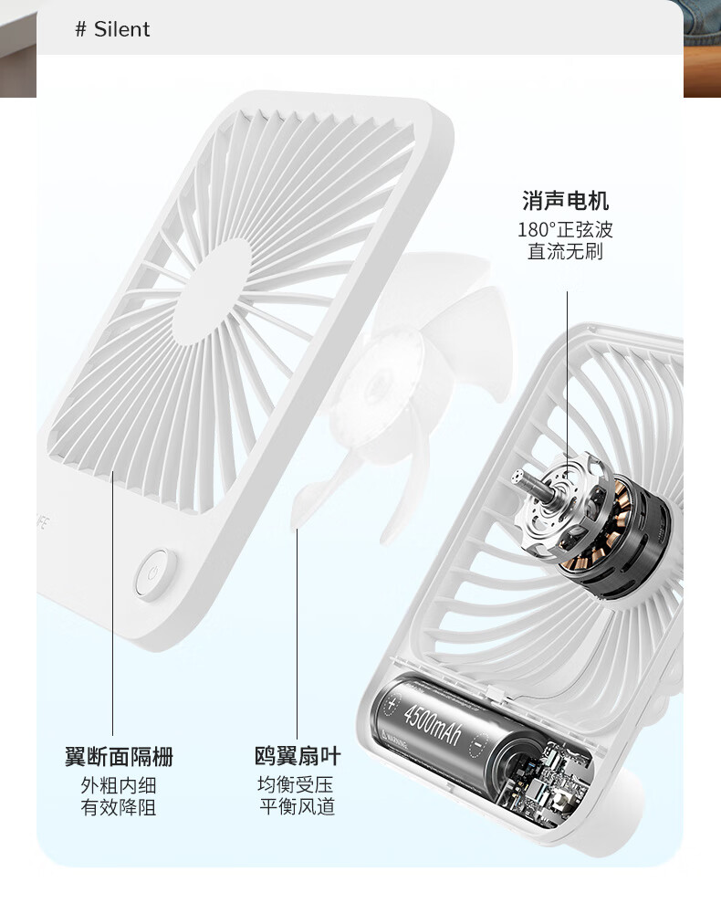 几素 小风扇桌面台式办公室学生宿舍桌上usb风扇迷你挂扇壁扇床头台扇户外便携露营超薄可折叠手持电扇 【FA26A-2000毫安】超薄机身_轻音大风力