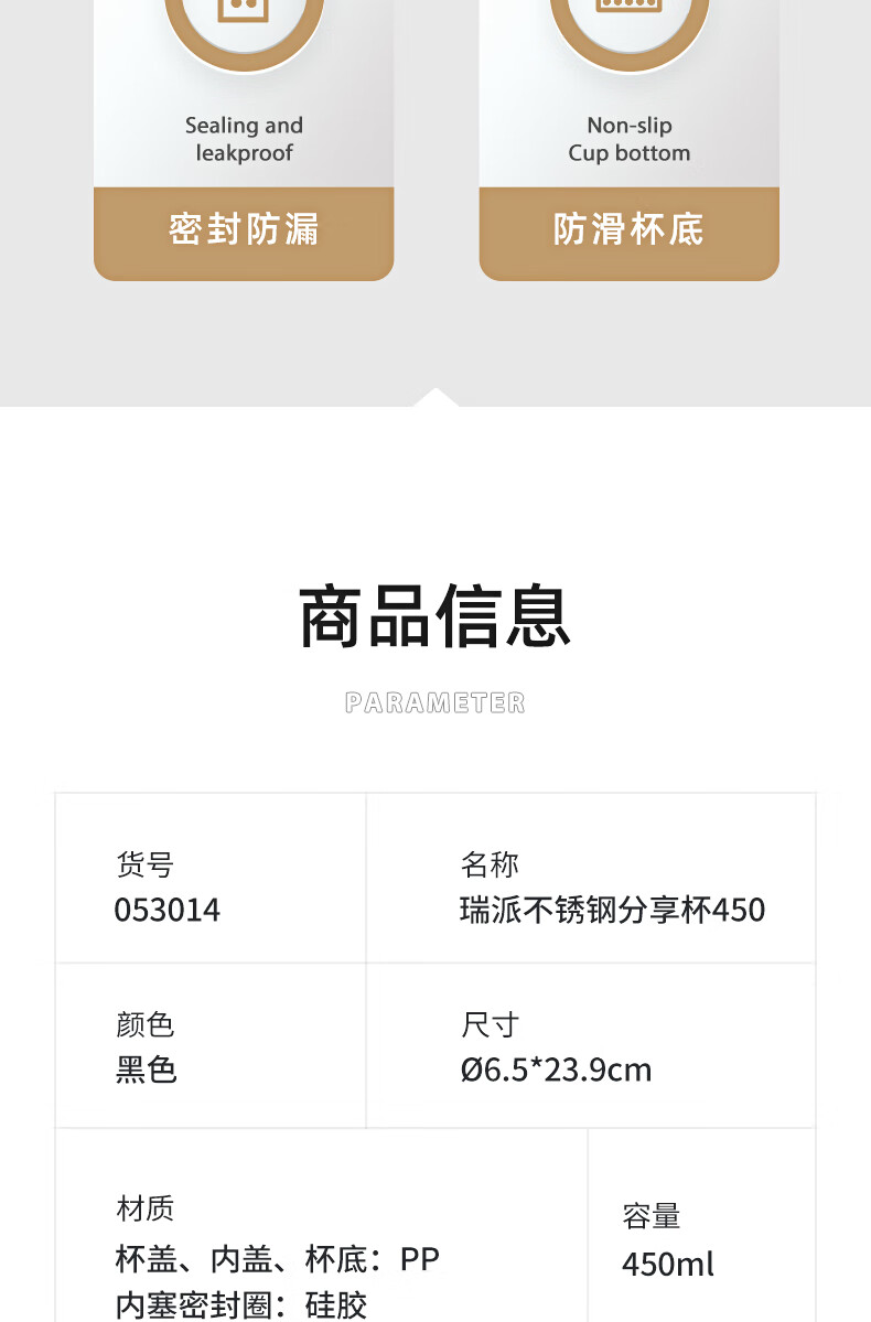 茶花(HT)053014 瑞派不锈钢分享杯450