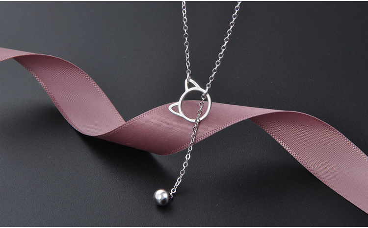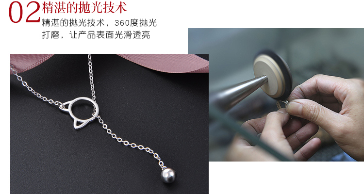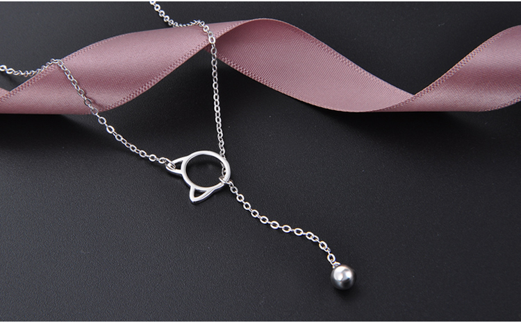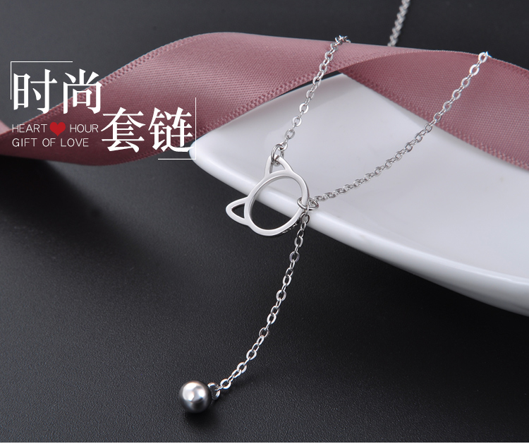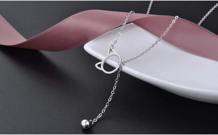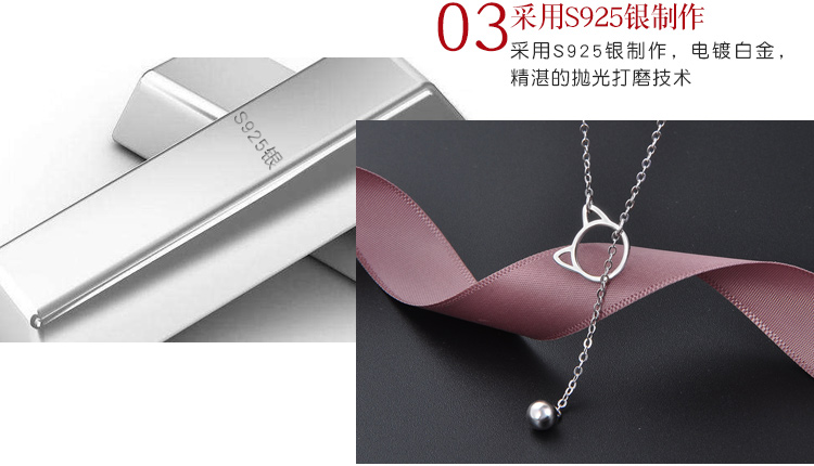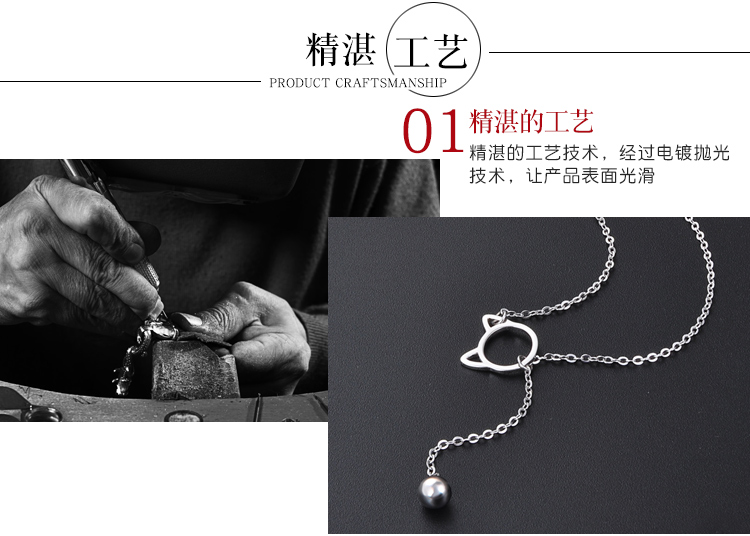 中国珠宝 S925纯银猫咪十字圆珠项链 YJYS-08210