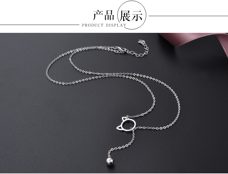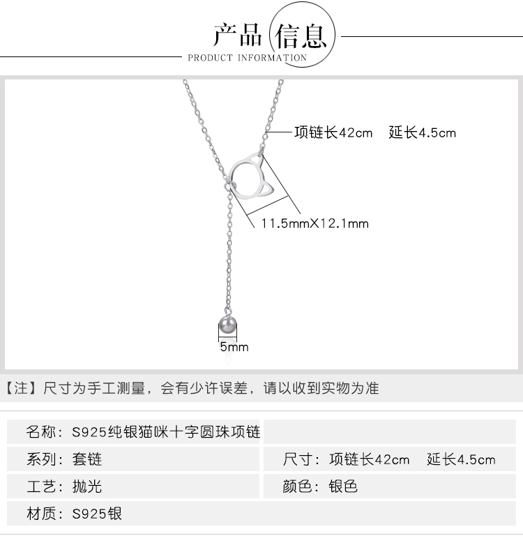 中国珠宝 S925纯银猫咪十字圆珠项链