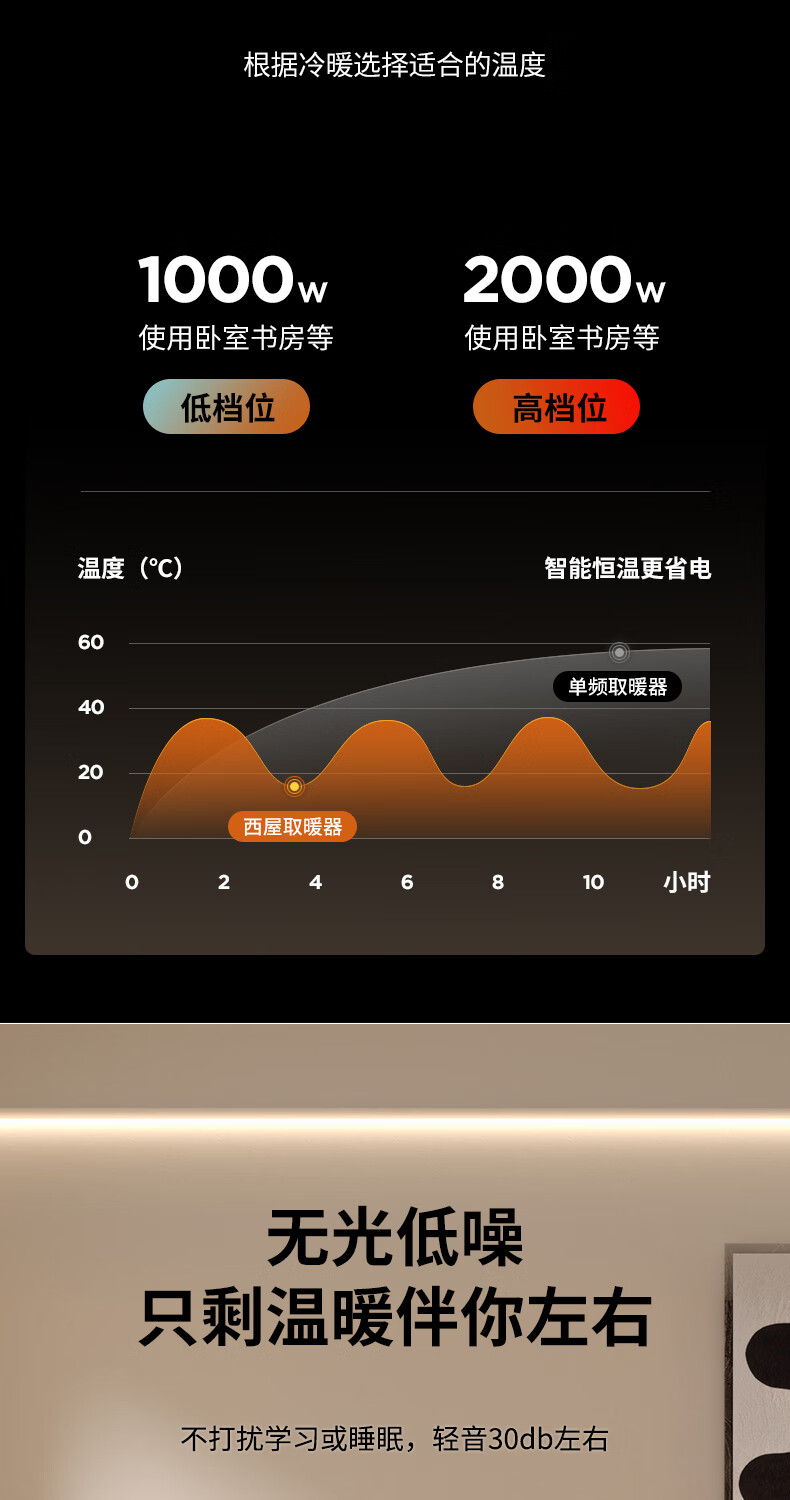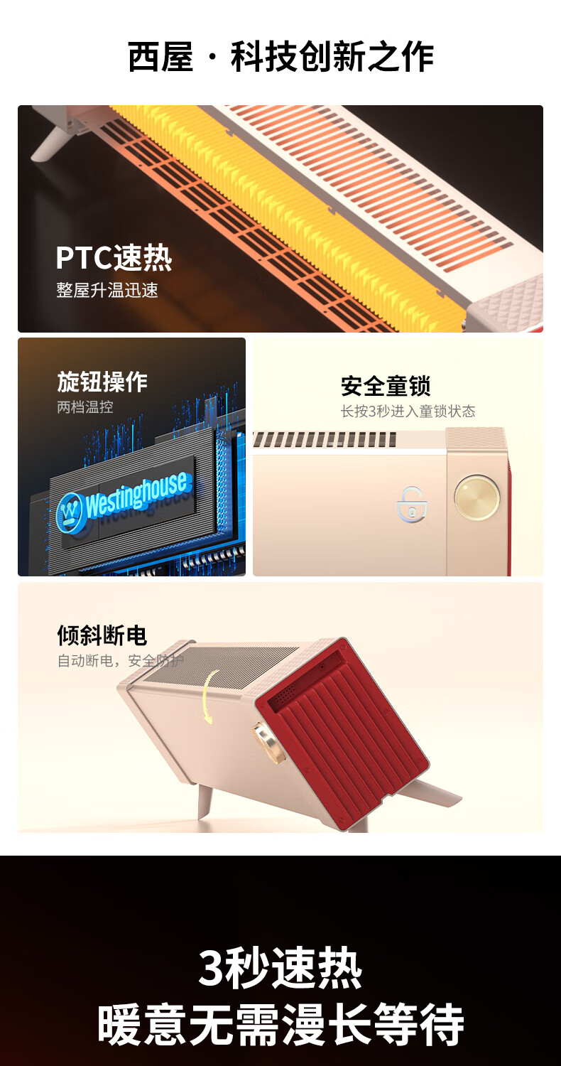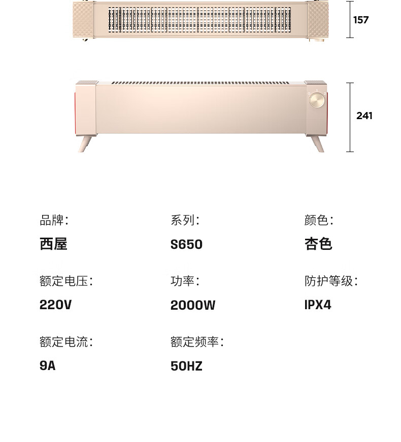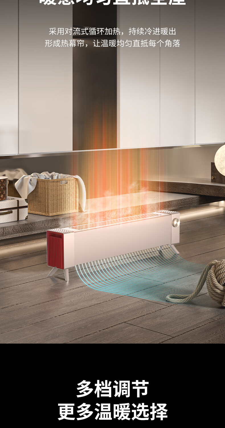 西屋(Westinghouse)踢脚线取暖器家用轻音电暖器移动地暖居浴两用对流电暖气节能省电暖气片WTH-S650 机械粉【旋钮 3秒速热 2挡调节】