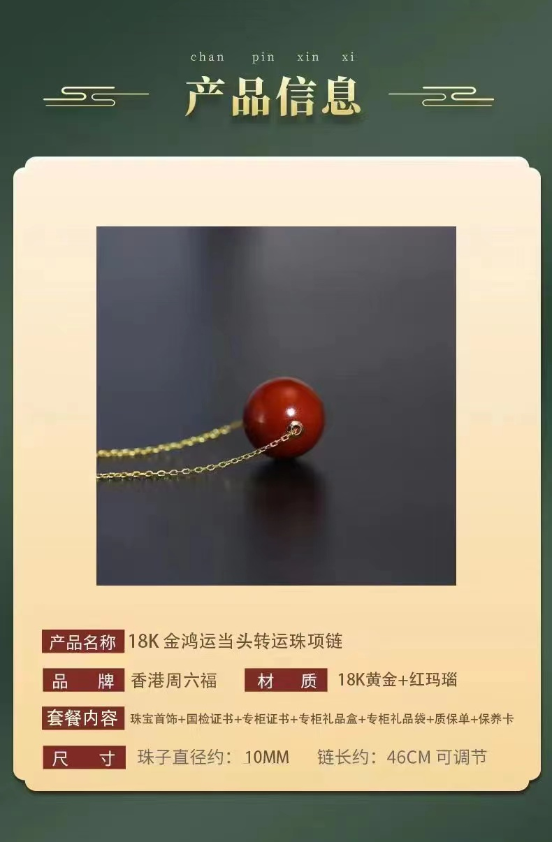 18K黄金系列-鸿运当头转运珠吊坠18K金 高冰玛瑙