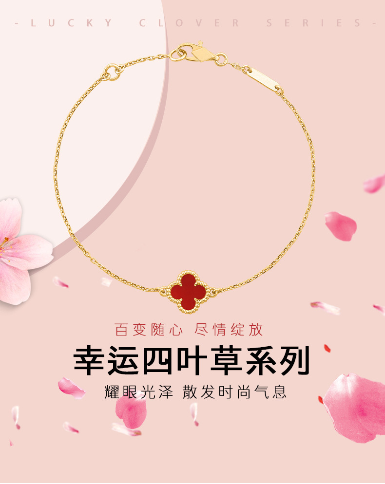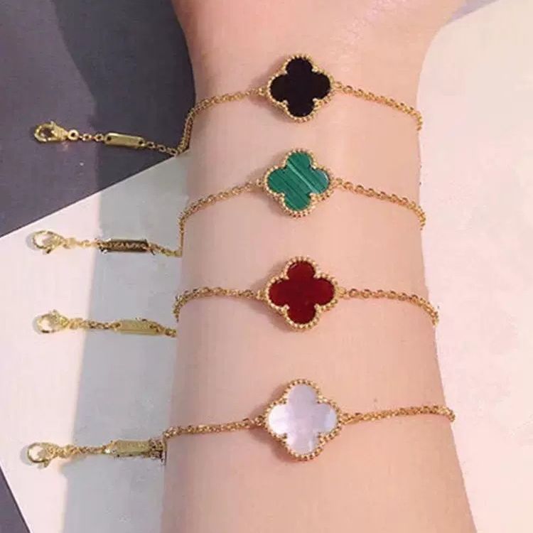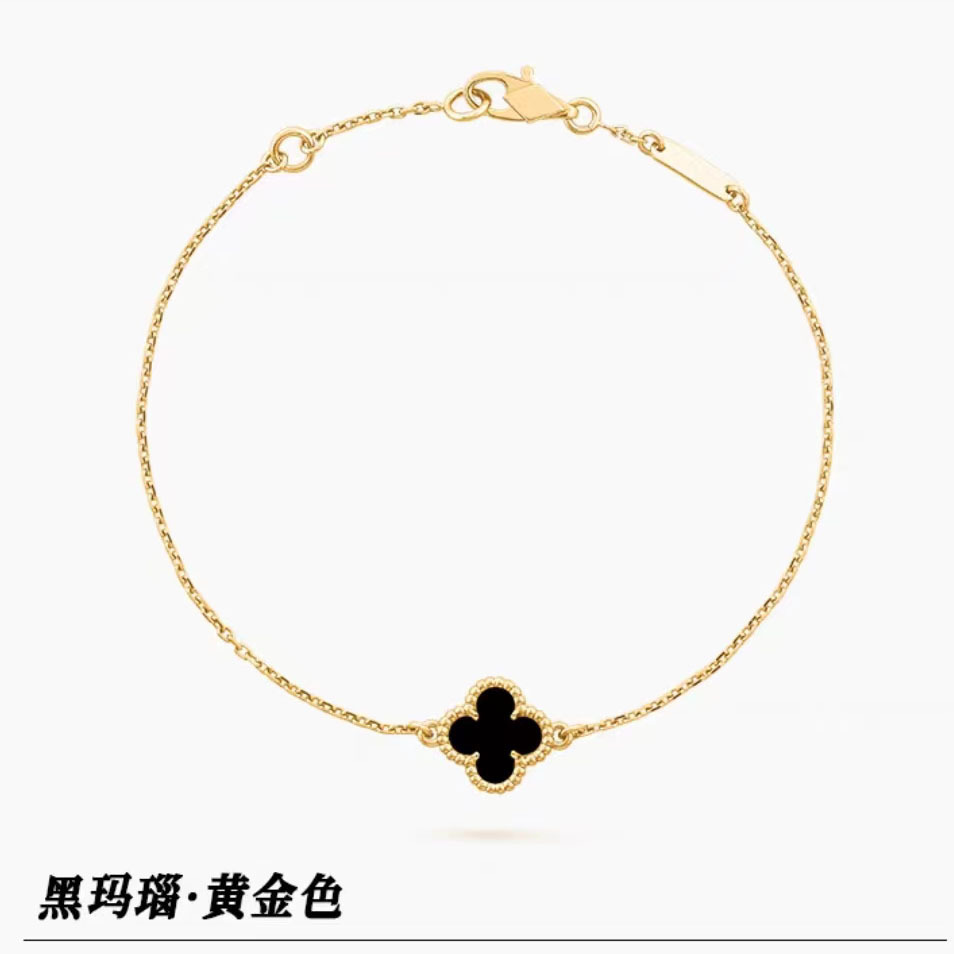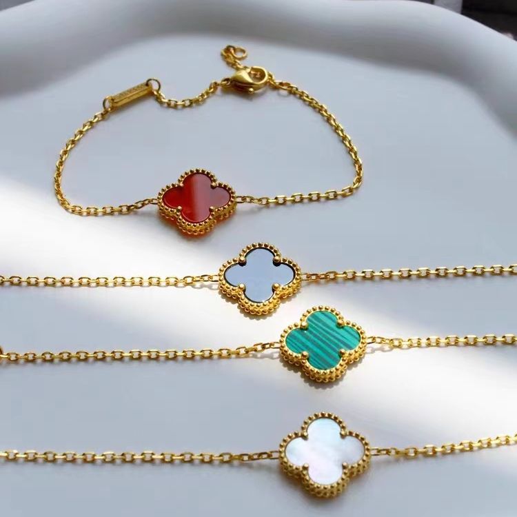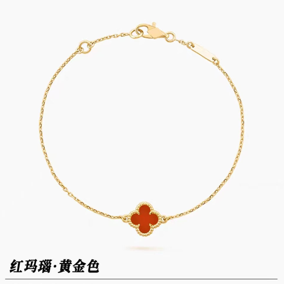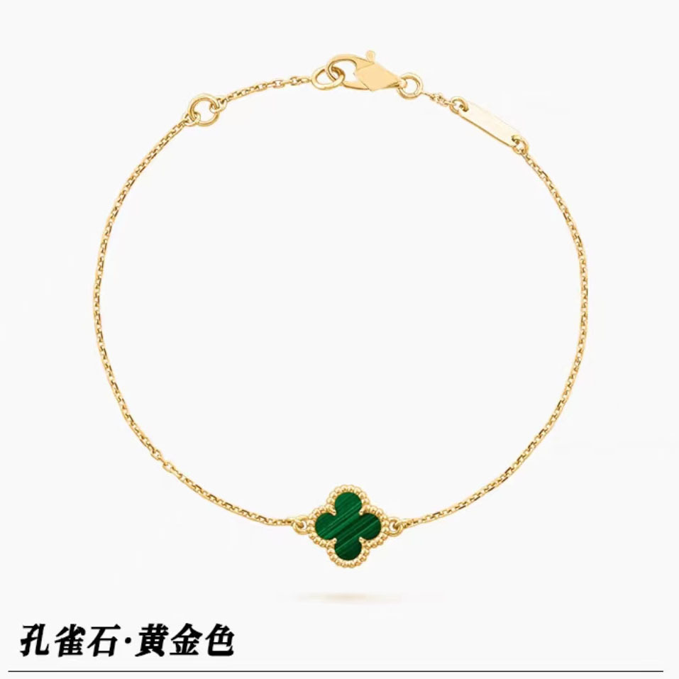 VC四叶草单颗手链(白贝母、红玉髓、孔雀石、黑玉髓)18KGP 白贝母、红玉髓、孔雀石、黑玉髓