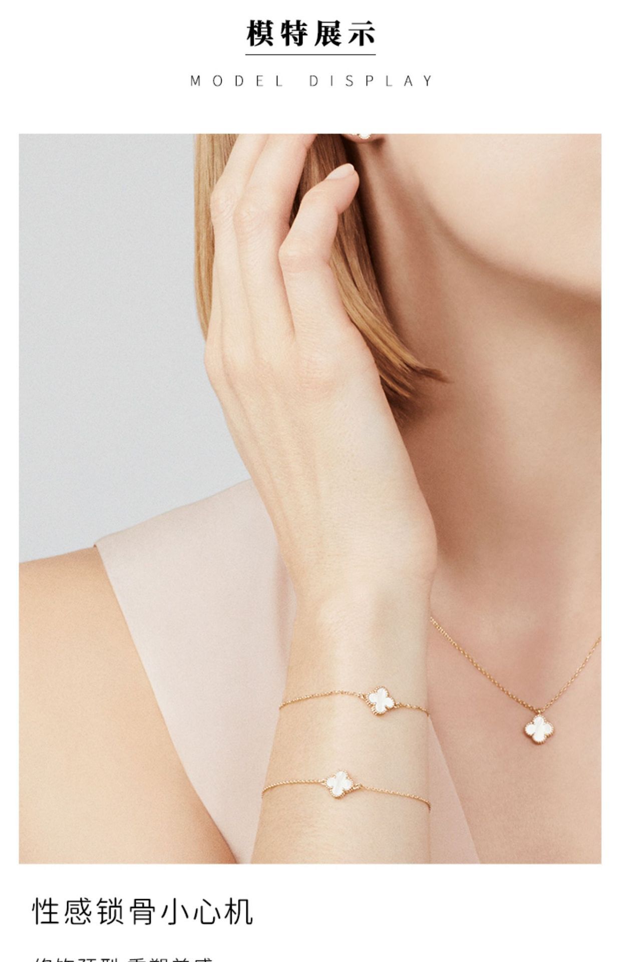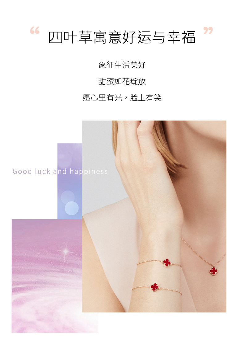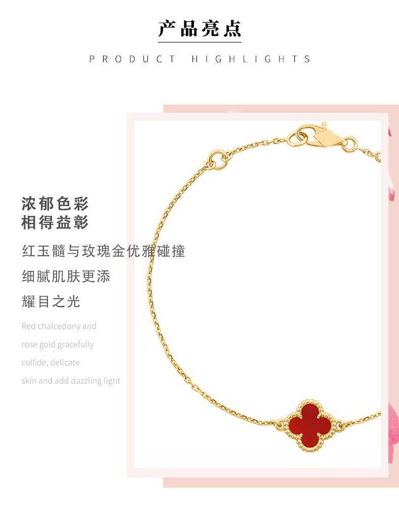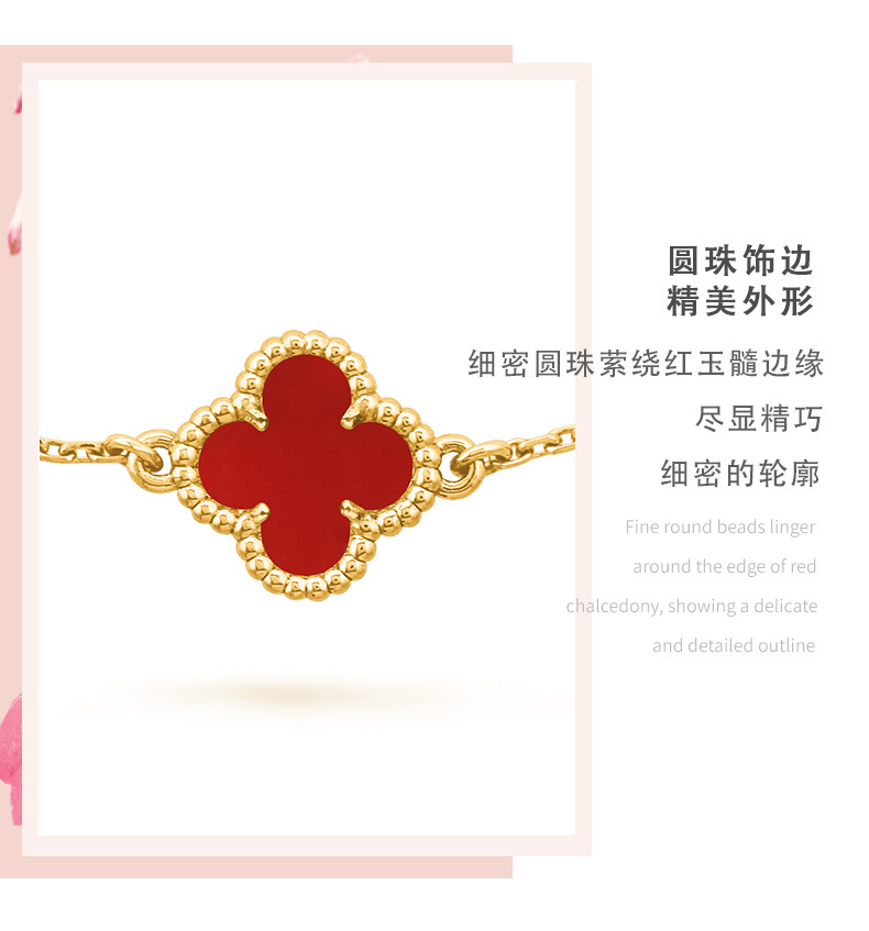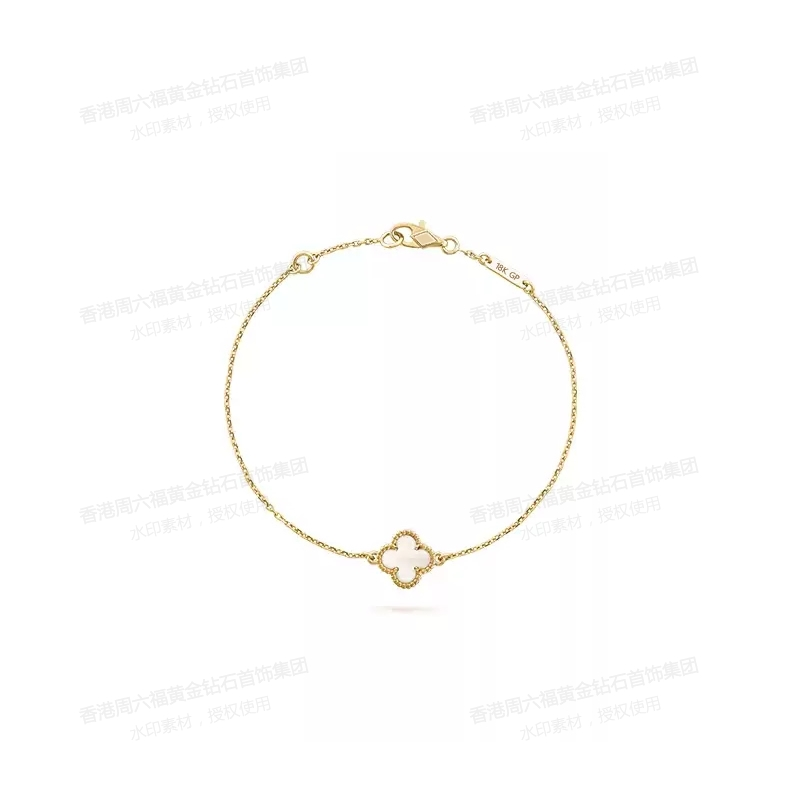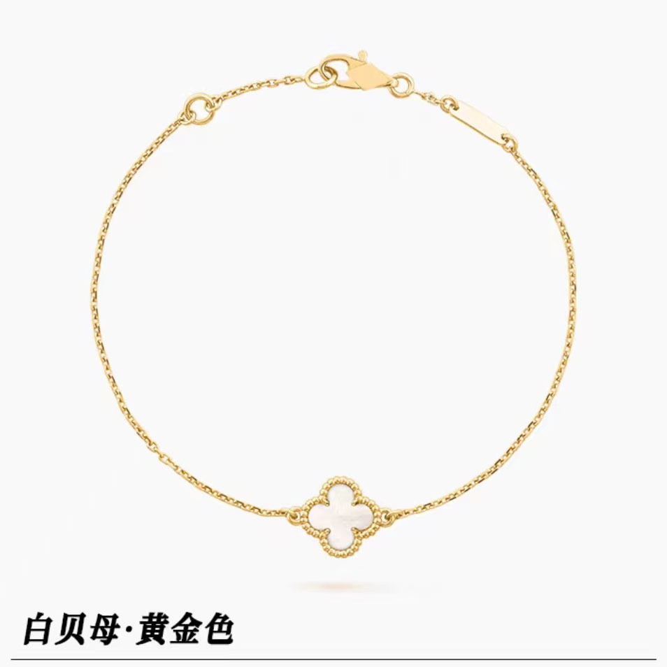 VC四叶草单颗手链(白贝母、红玉髓、孔雀石、黑玉髓)18KGP 白贝母、红玉髓、孔雀石、黑玉髓
