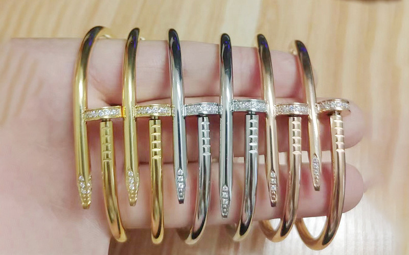 博爱系列时尚天后钉子满钻情侣手镯(玫瑰金、黄金、白金)KXZ54034160
