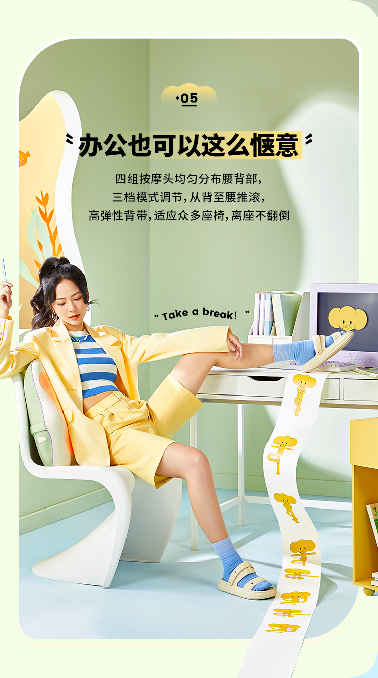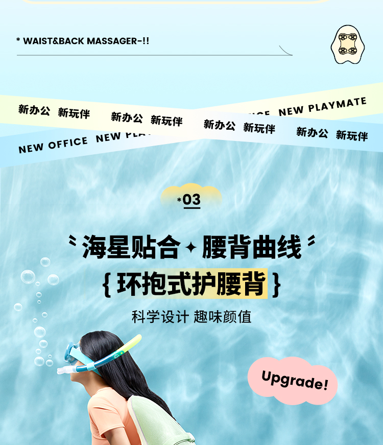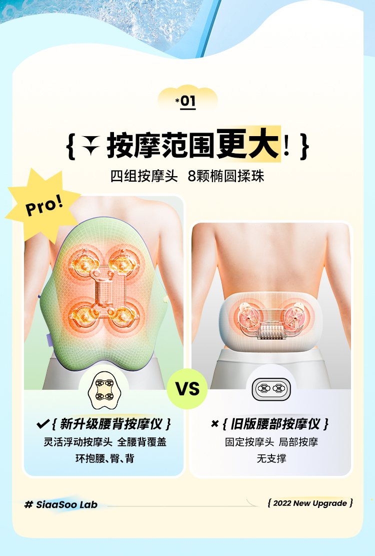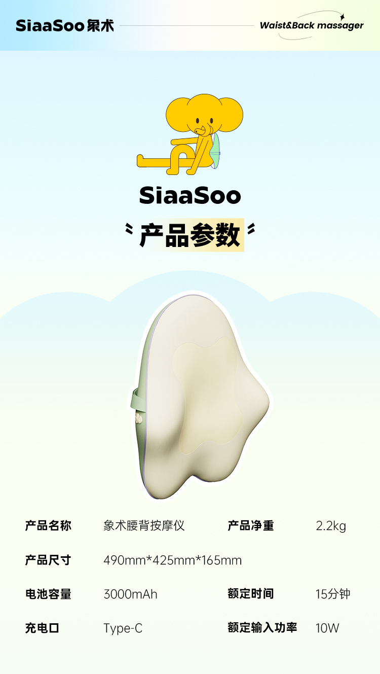 象术W2腰部按摩器仪腰背部靠垫热敷腰椎肩颈抱枕靠