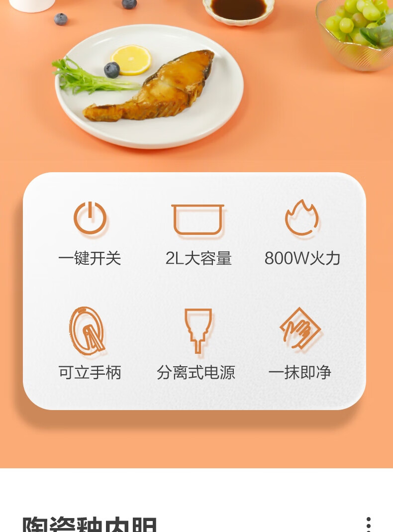 内胆采用加厚陶釉内胆,不粘油易清洗