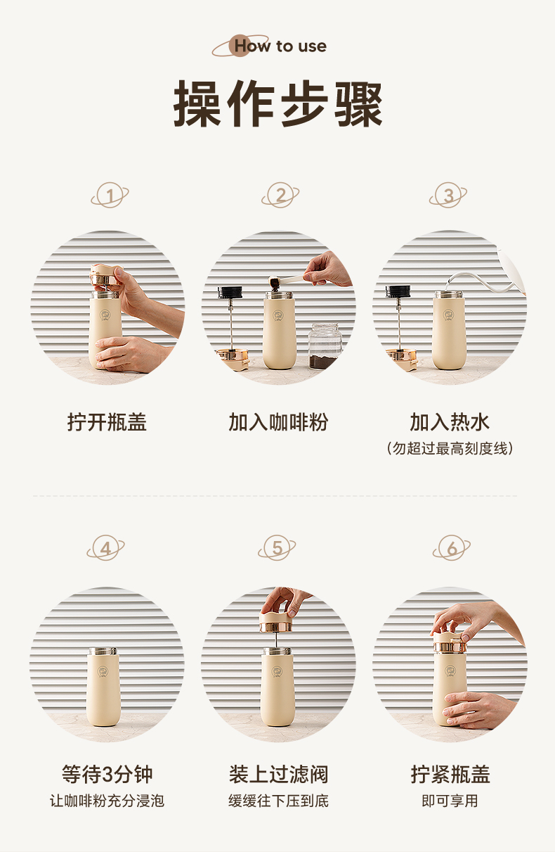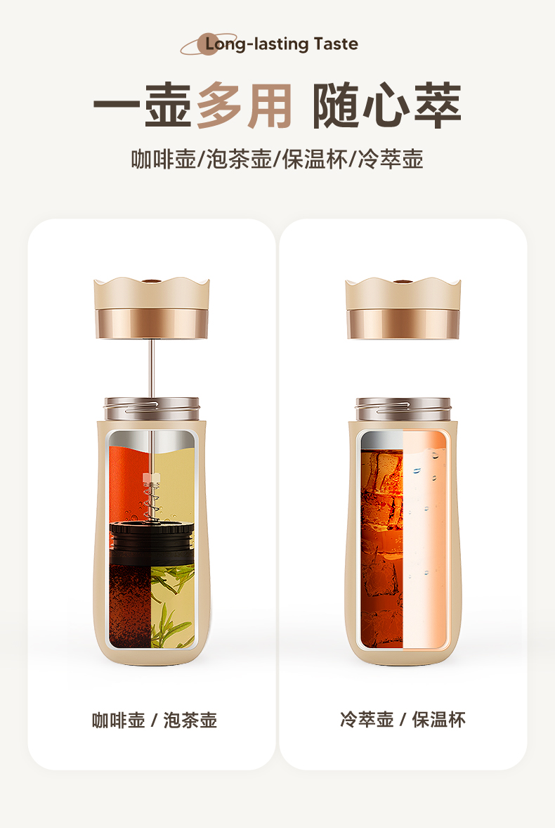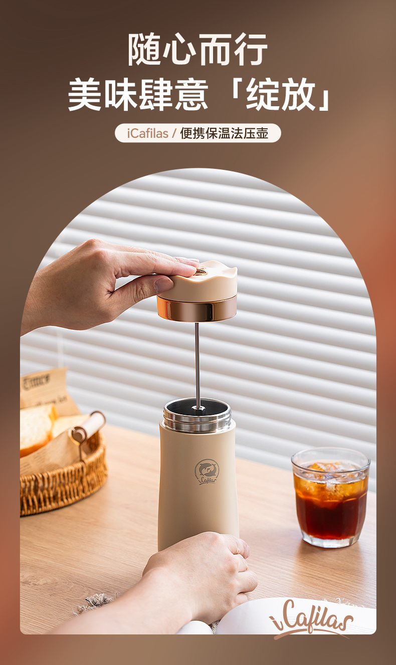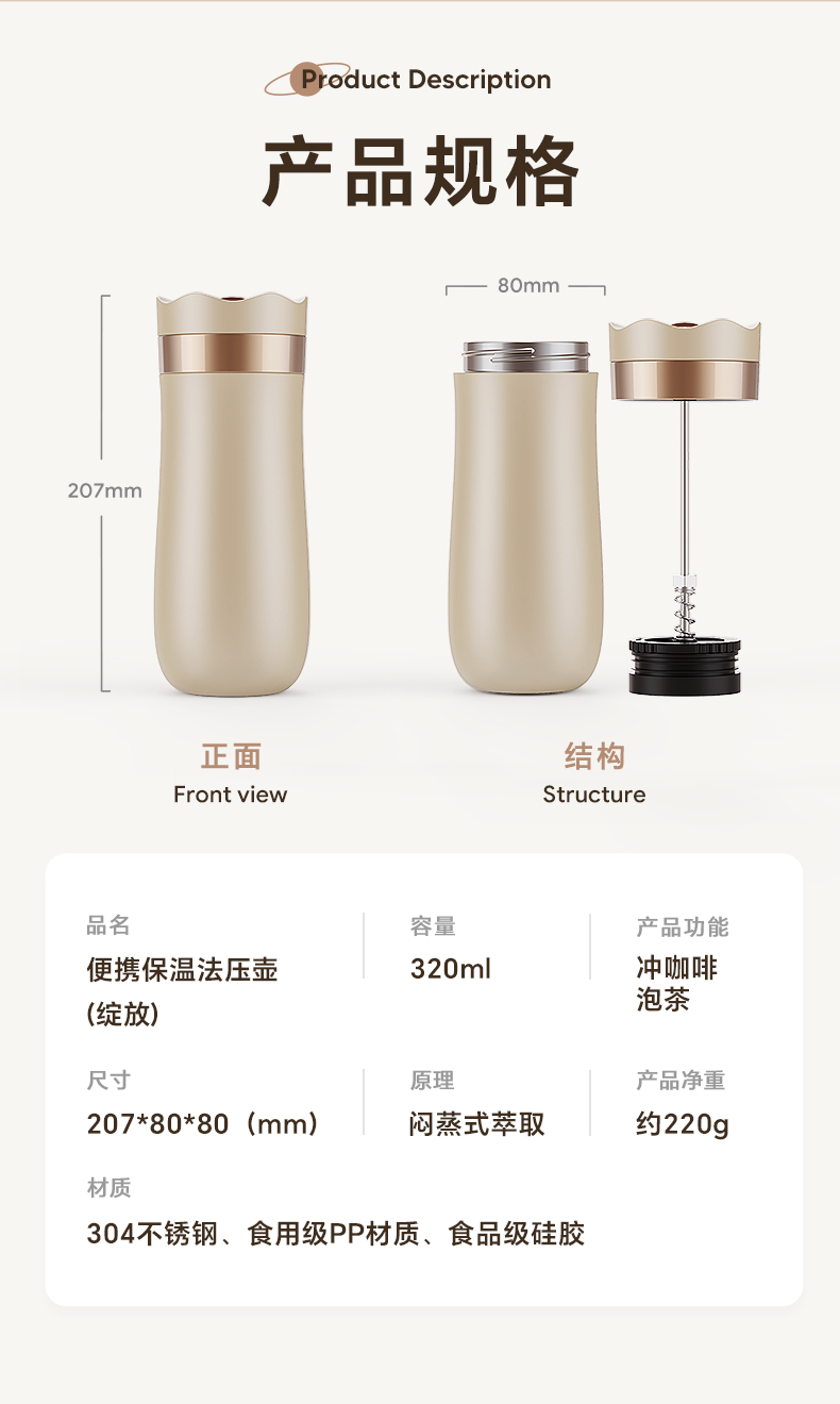亚马逊礼品商务简约真空保温杯内304不锈钢保温便携式法压壶