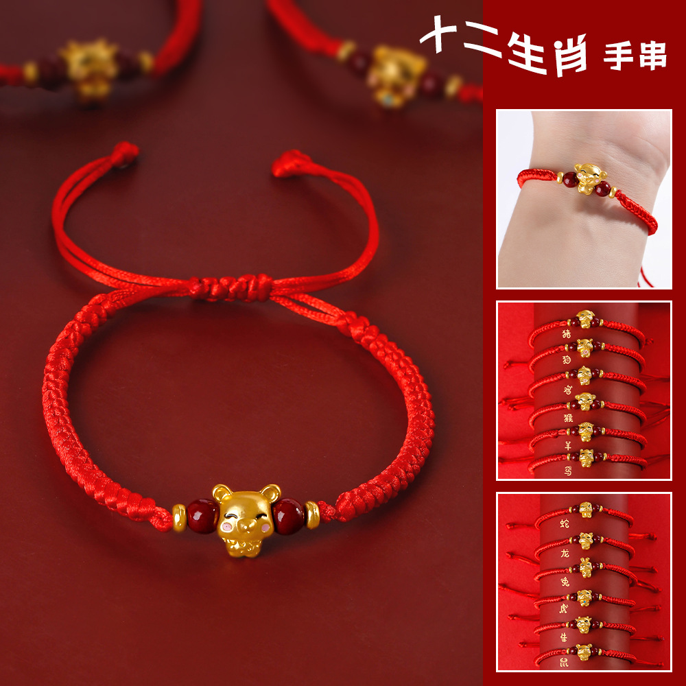 5G黄金系列-足金十二生肖手链( 玉髓古法手工编绳款)ZJX21156569