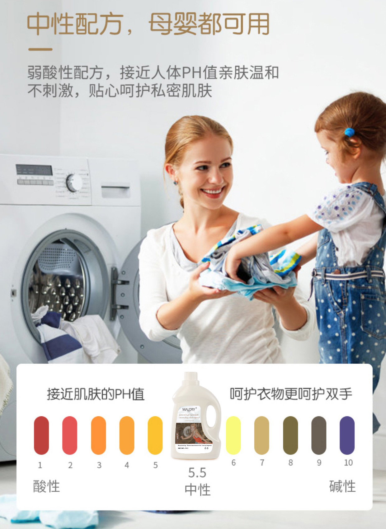 弱酸性温和配方:环保0添加:无漂白、无添加磷、无荧光剂,温和不伤手,母婴衣物安心洗