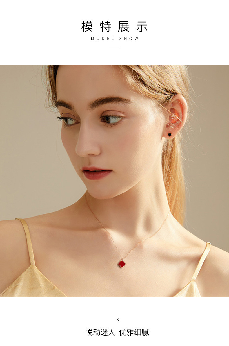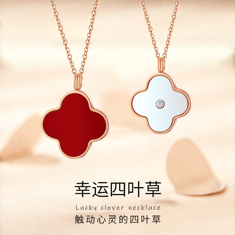 镶钻系列-四叶草 双面玛瑙