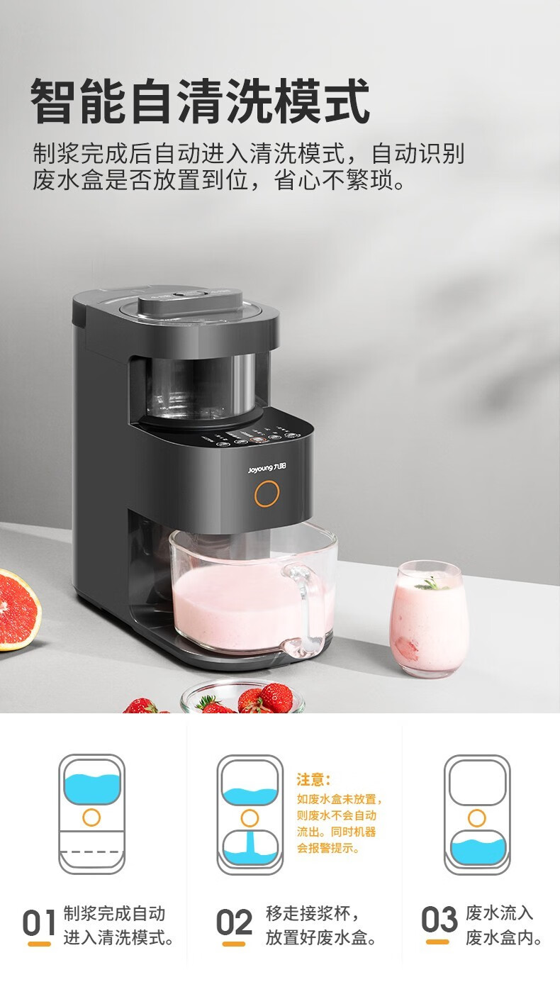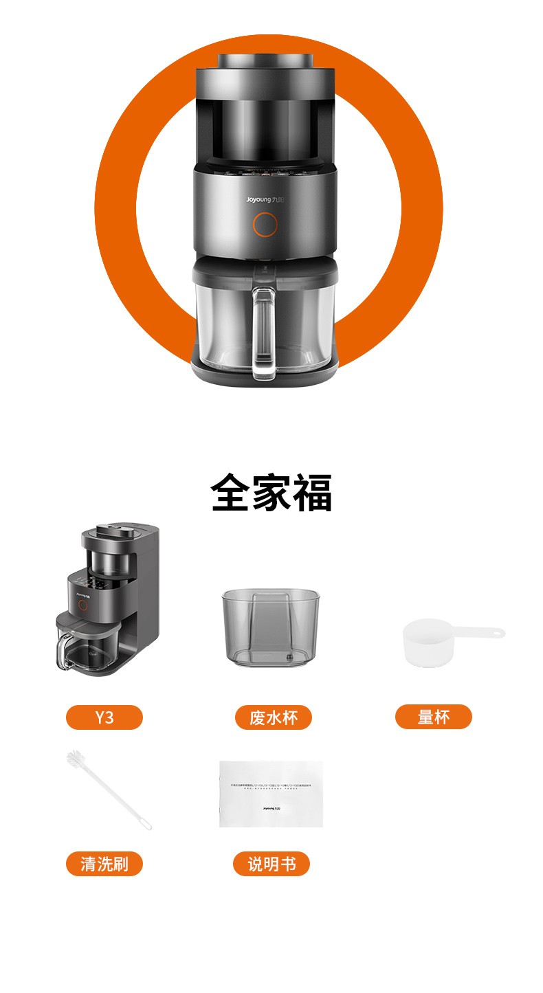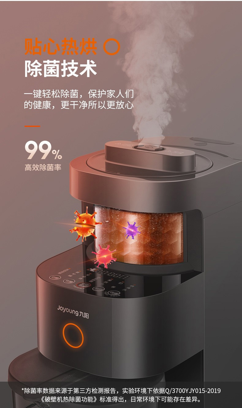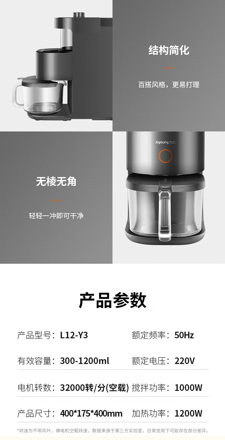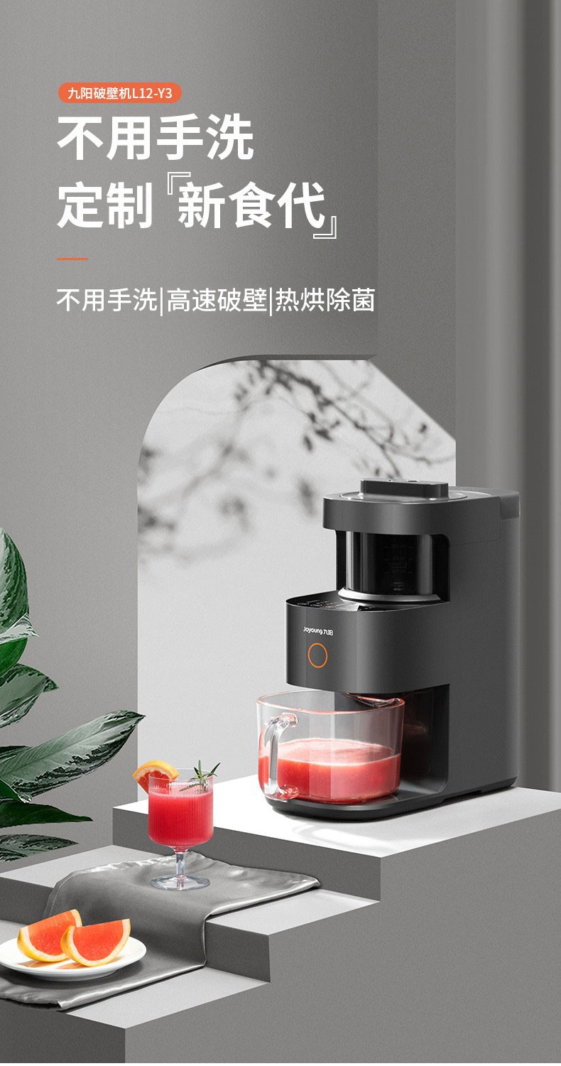 九阳(Joyoung)不用手洗高速破壁机加热全自动家用料理豆浆磨粉碎冰机预约热烘除菌 Y3太空灰