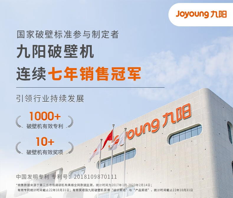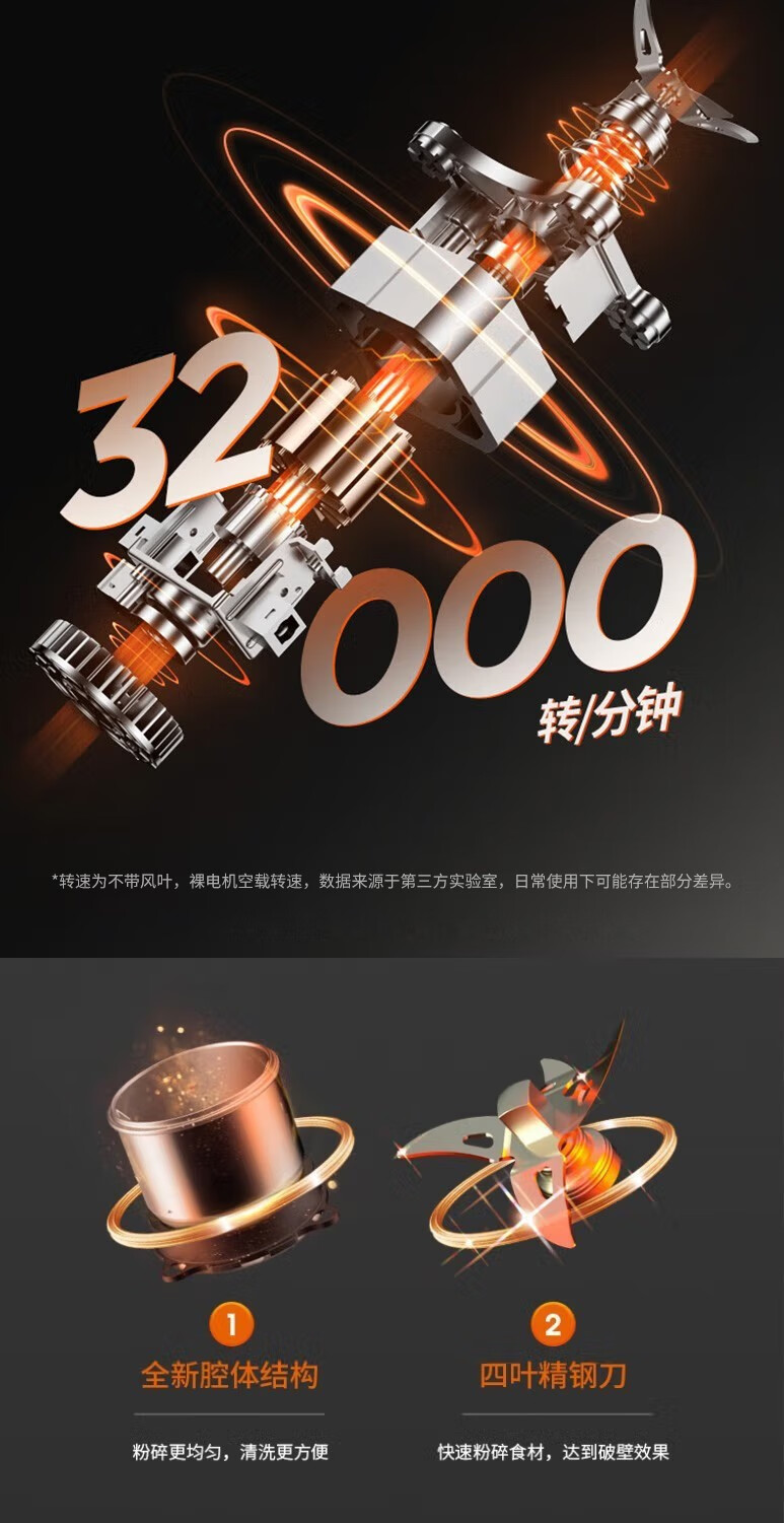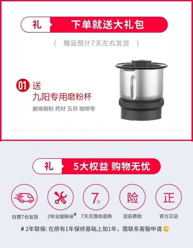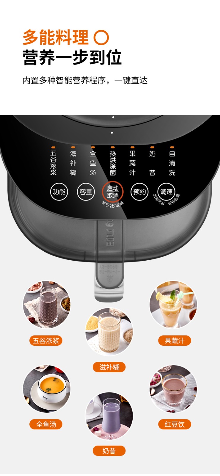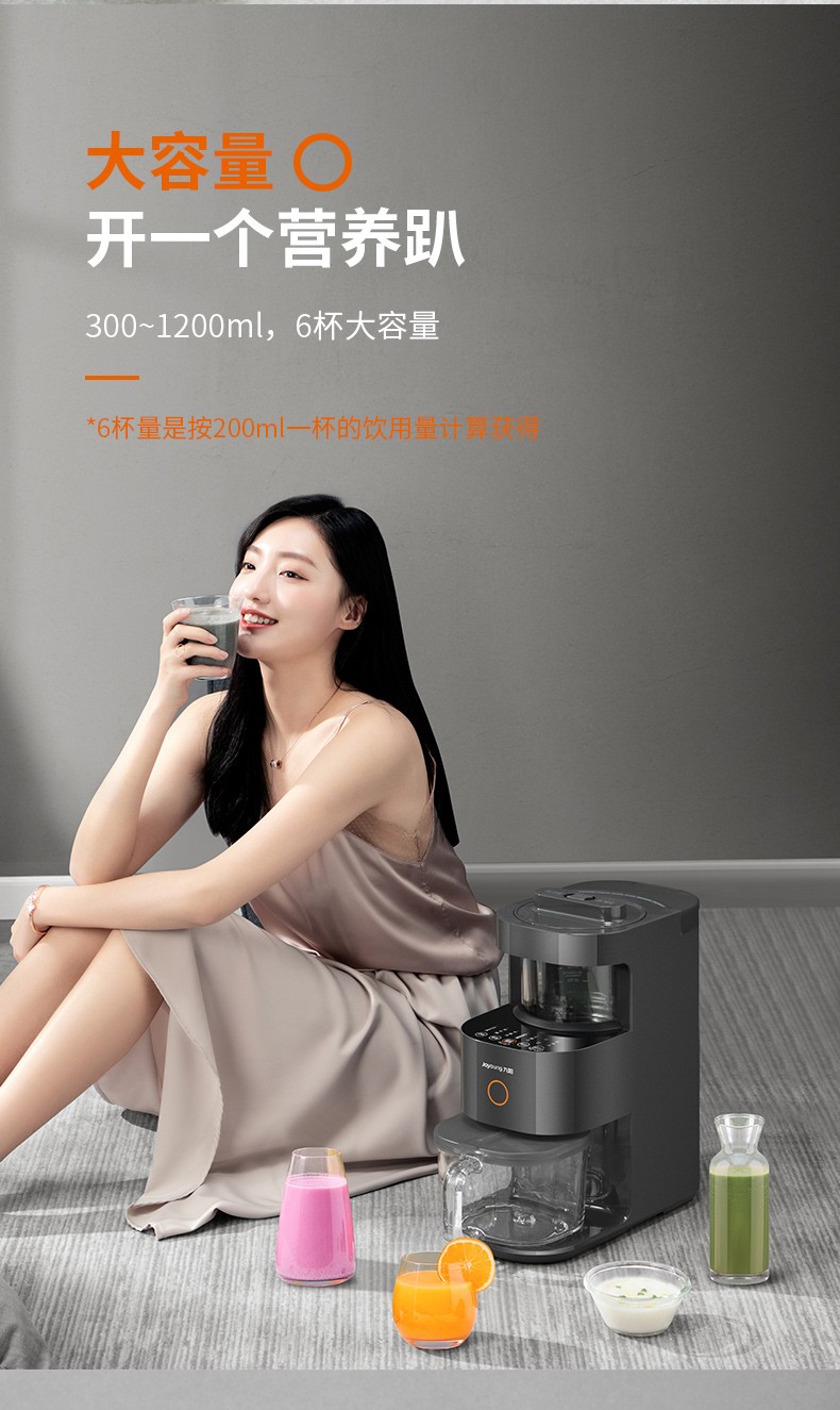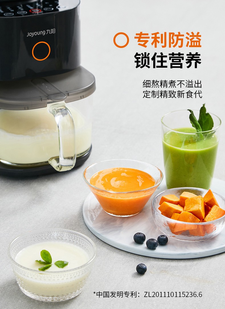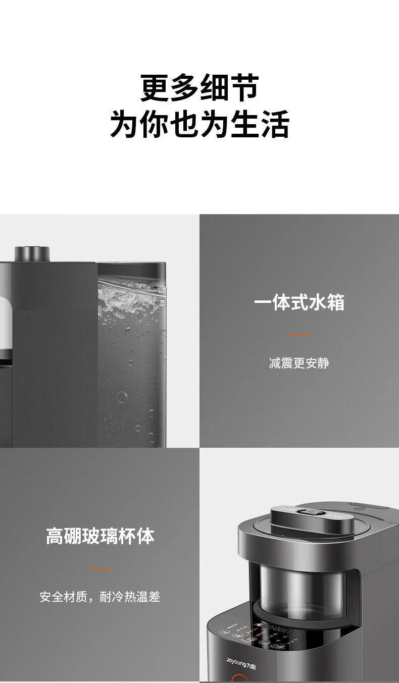 九阳(Joyoung)不用手洗高速破壁机加热全自动家用料理豆浆磨粉碎冰机预约热烘除菌 Y3太空灰