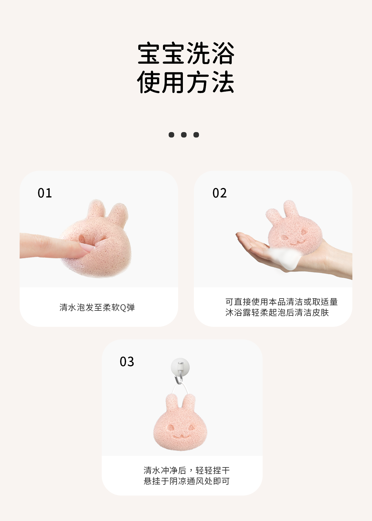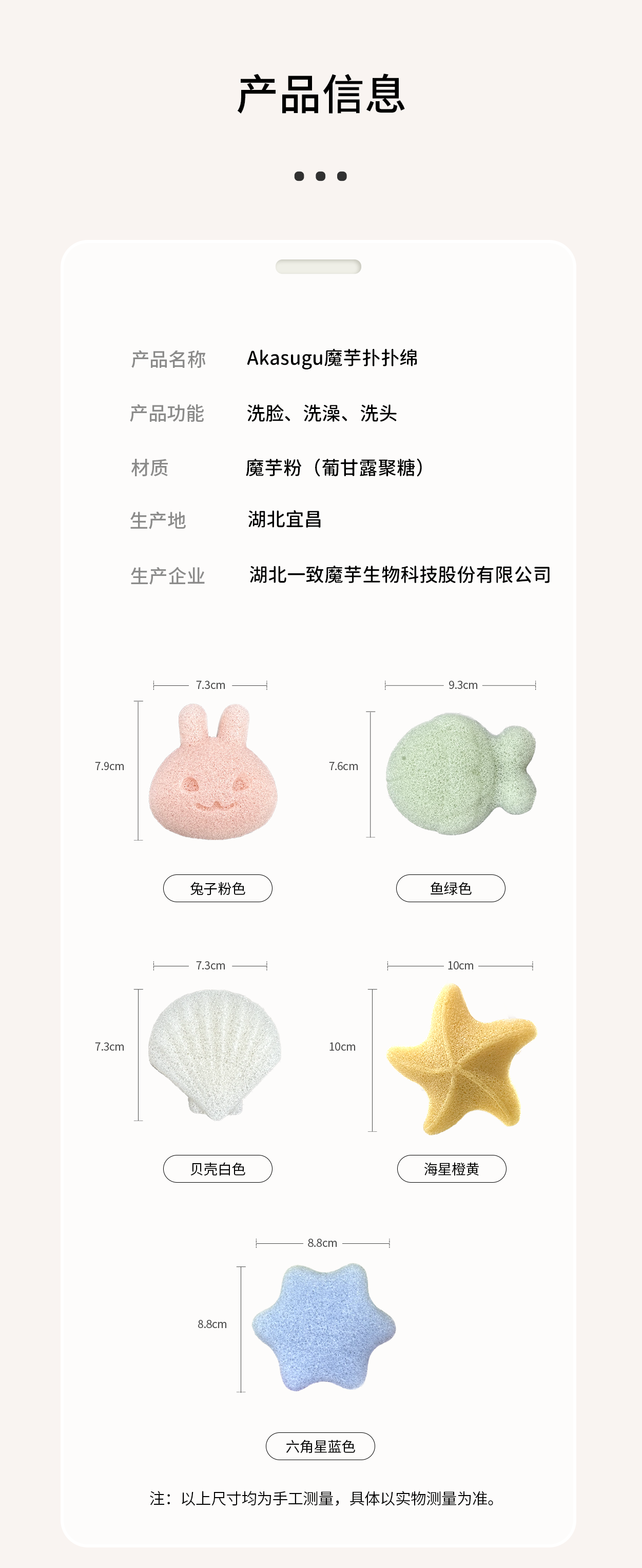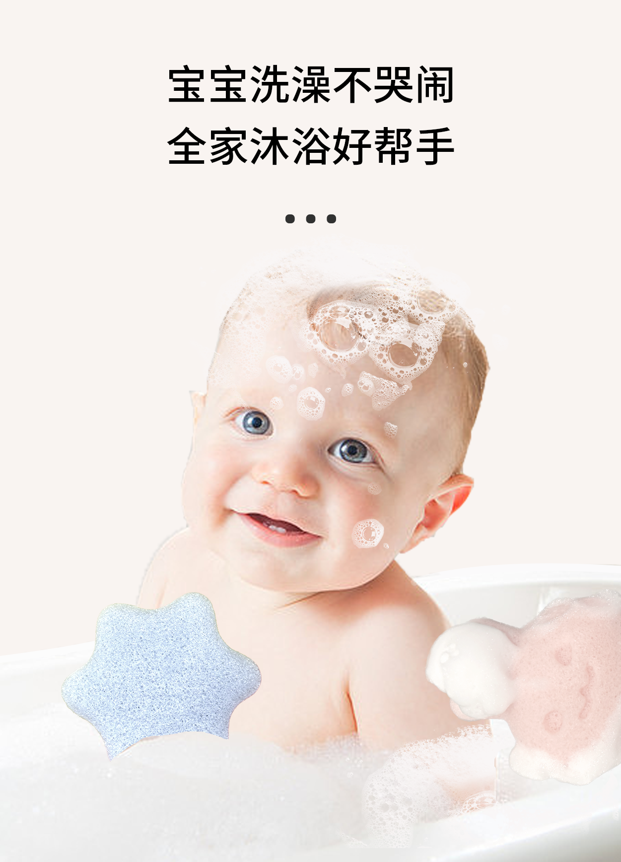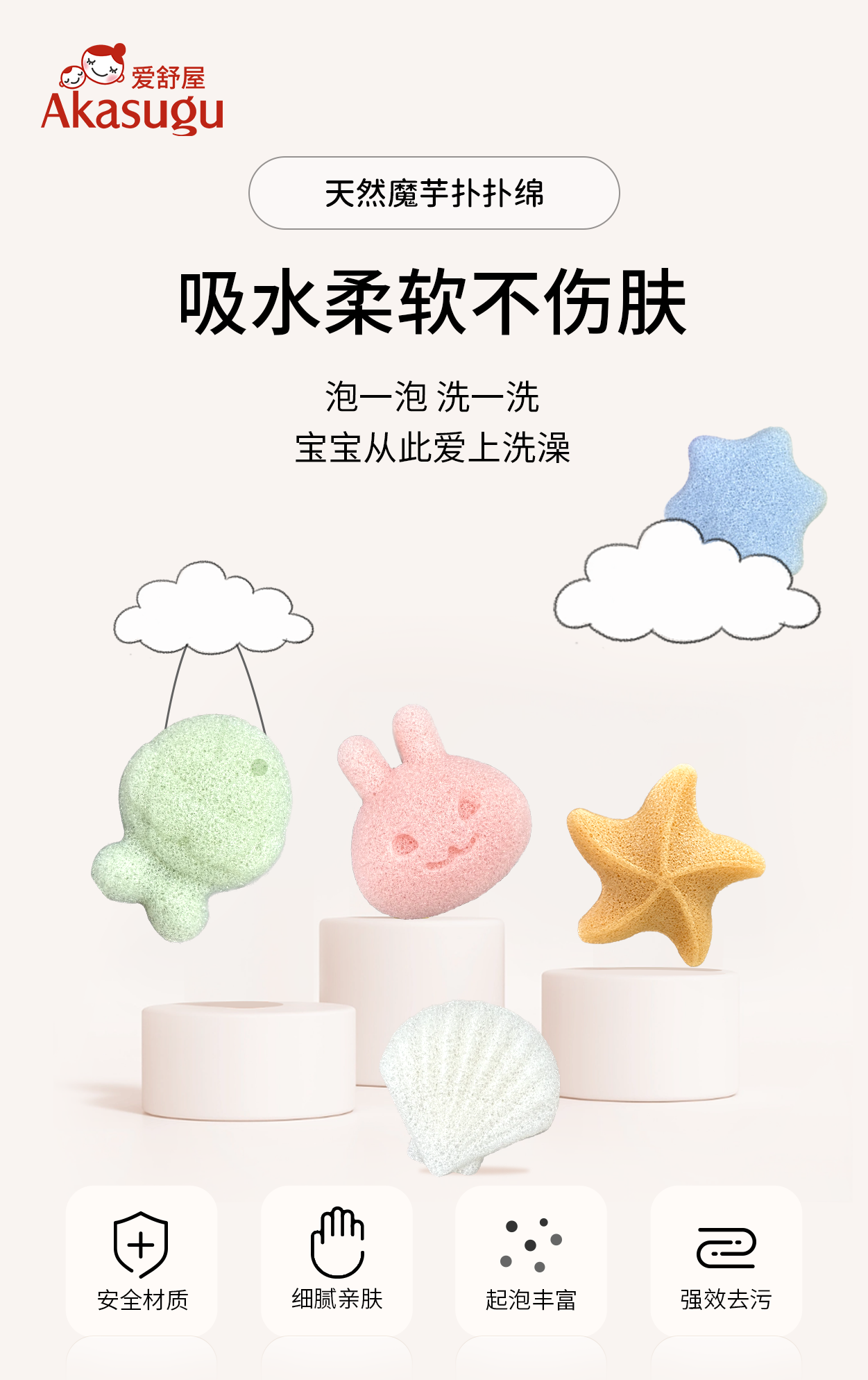 Akasugu爱舒屋婴儿洗澡海绵天然魔芋新生沐浴宝宝搓澡神器扑扑棉