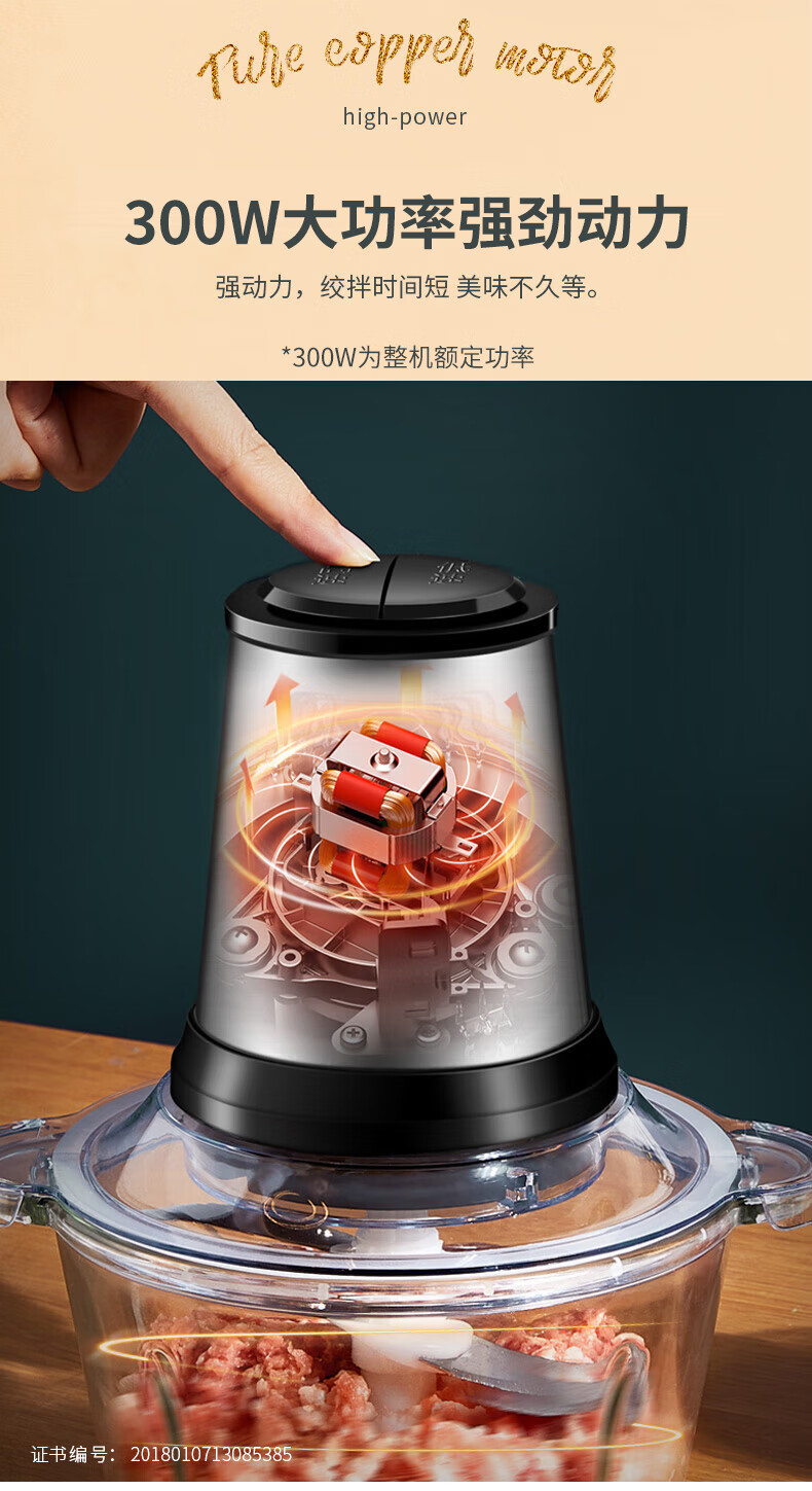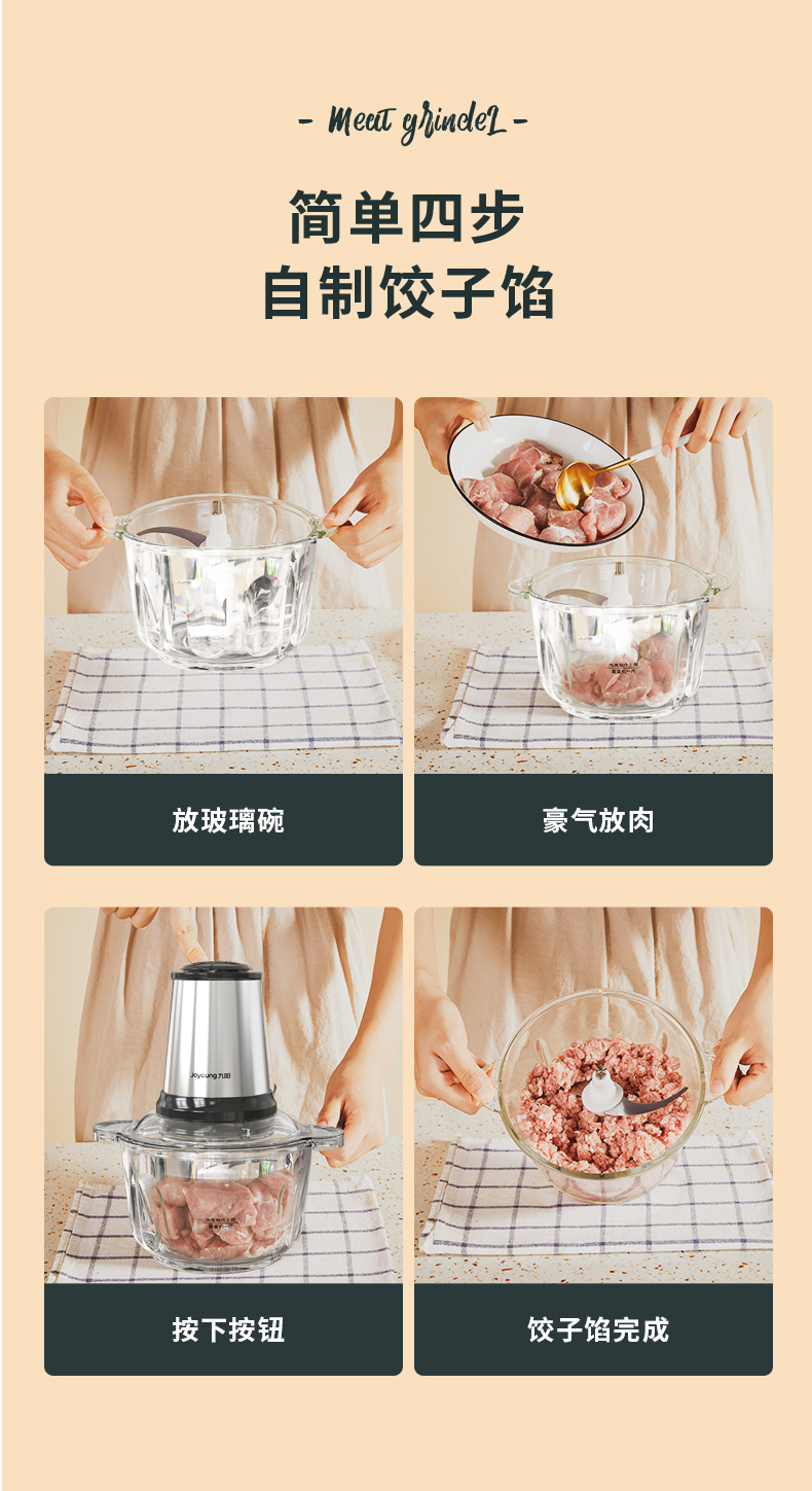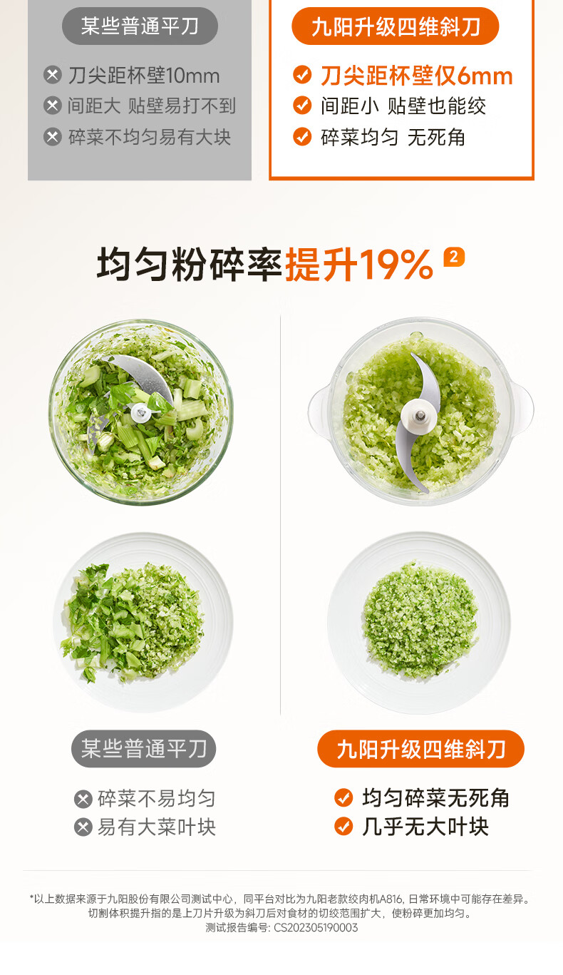【九阳S20-LA750】九阳(Joyoung)ZMD安心系列 绞肉机电动料理机碎肉机S20-LA750双档绞肉搅碎机奶昔果汁S20-LA750