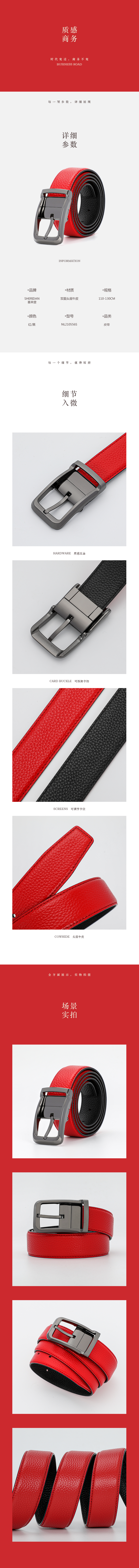 SHERIDAN喜来登男士针扣头层牛皮开门红腰带NL210556S