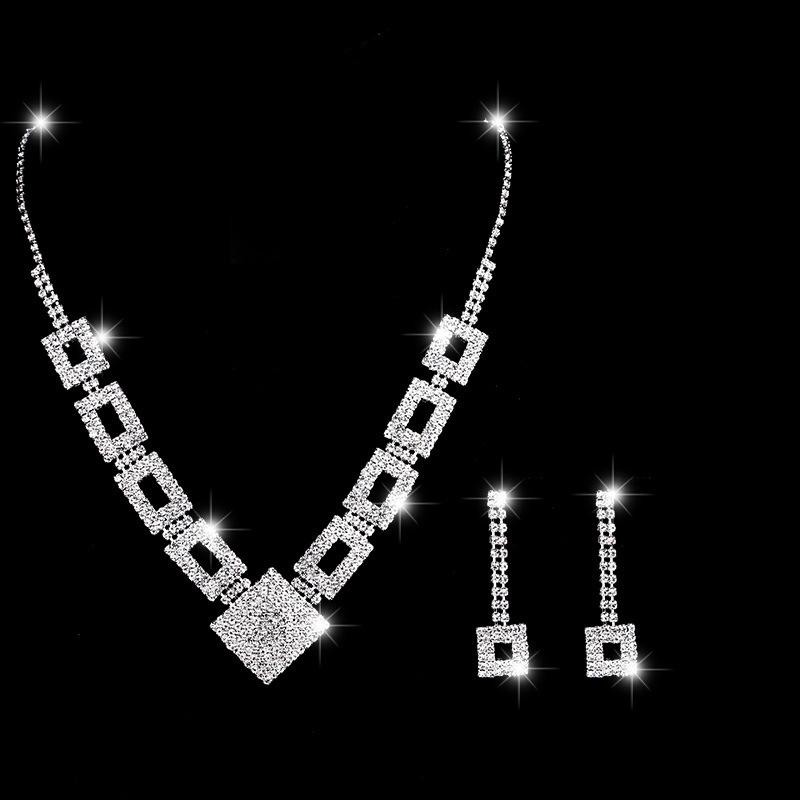 【闪耀迷人】首饰套装满钻三件套项链耳环耳饰手链晚宴礼服首饰配件