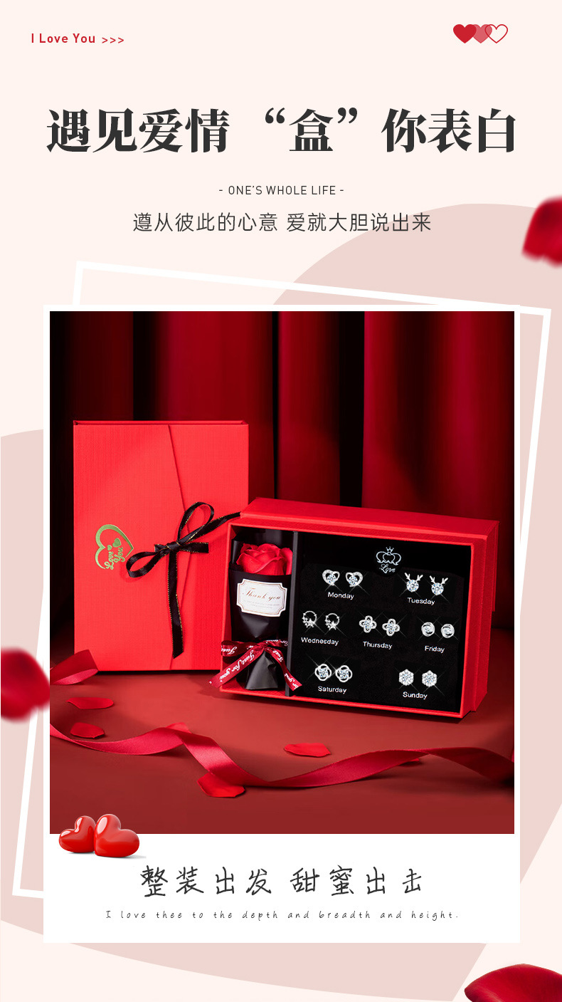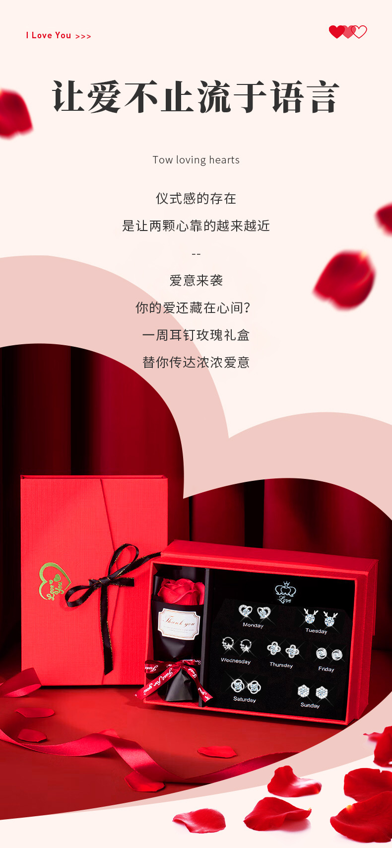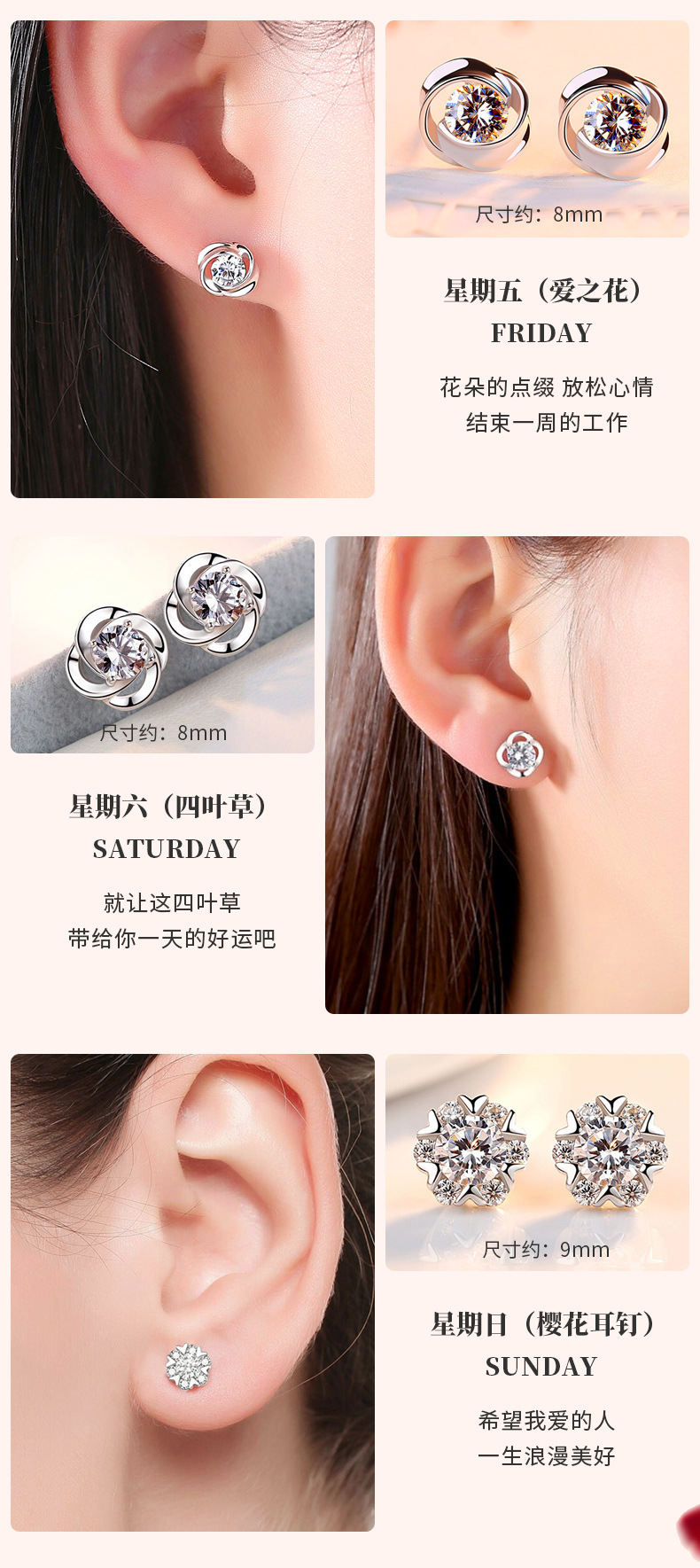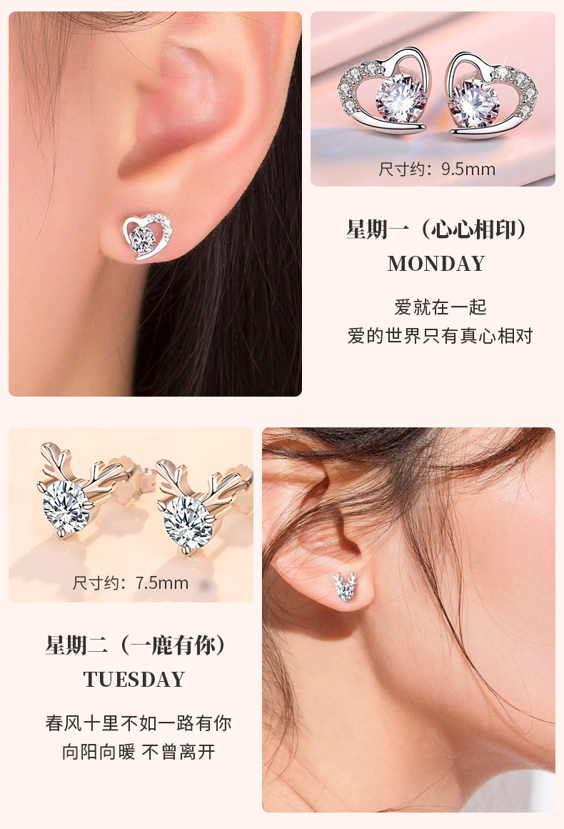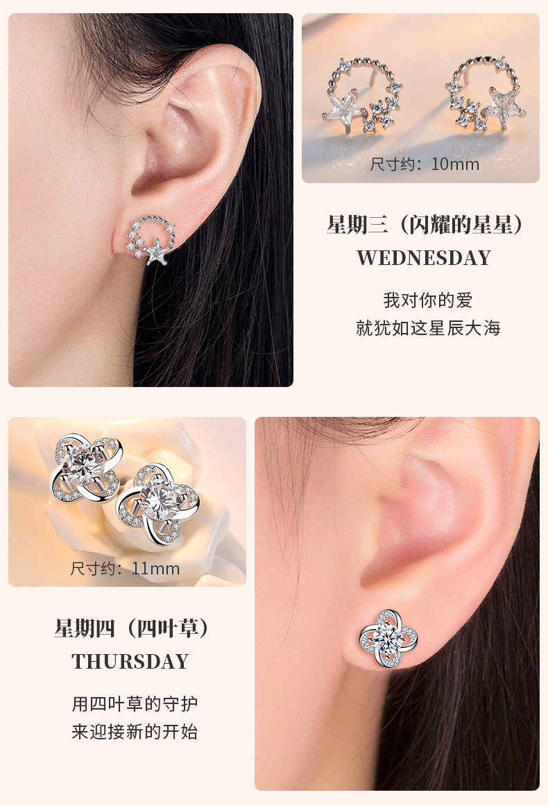 【美丽不重样】耳环925银一周耳钉套装流苏高级感简约银针耳饰七夕礼物送女友