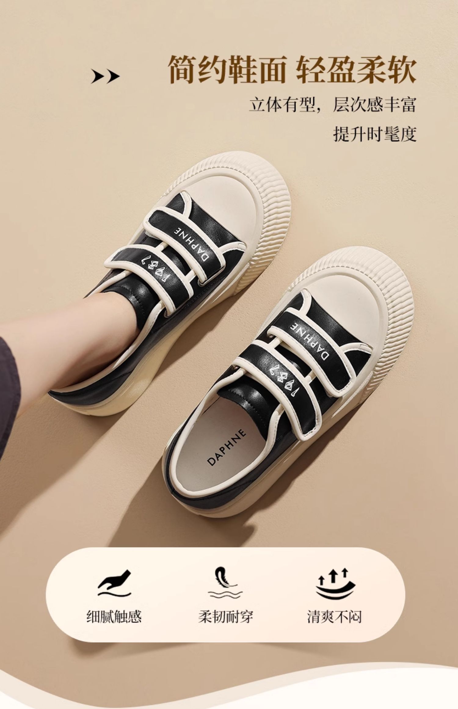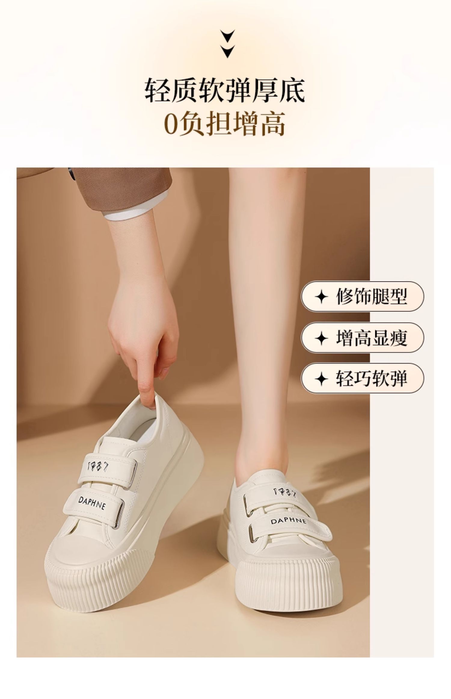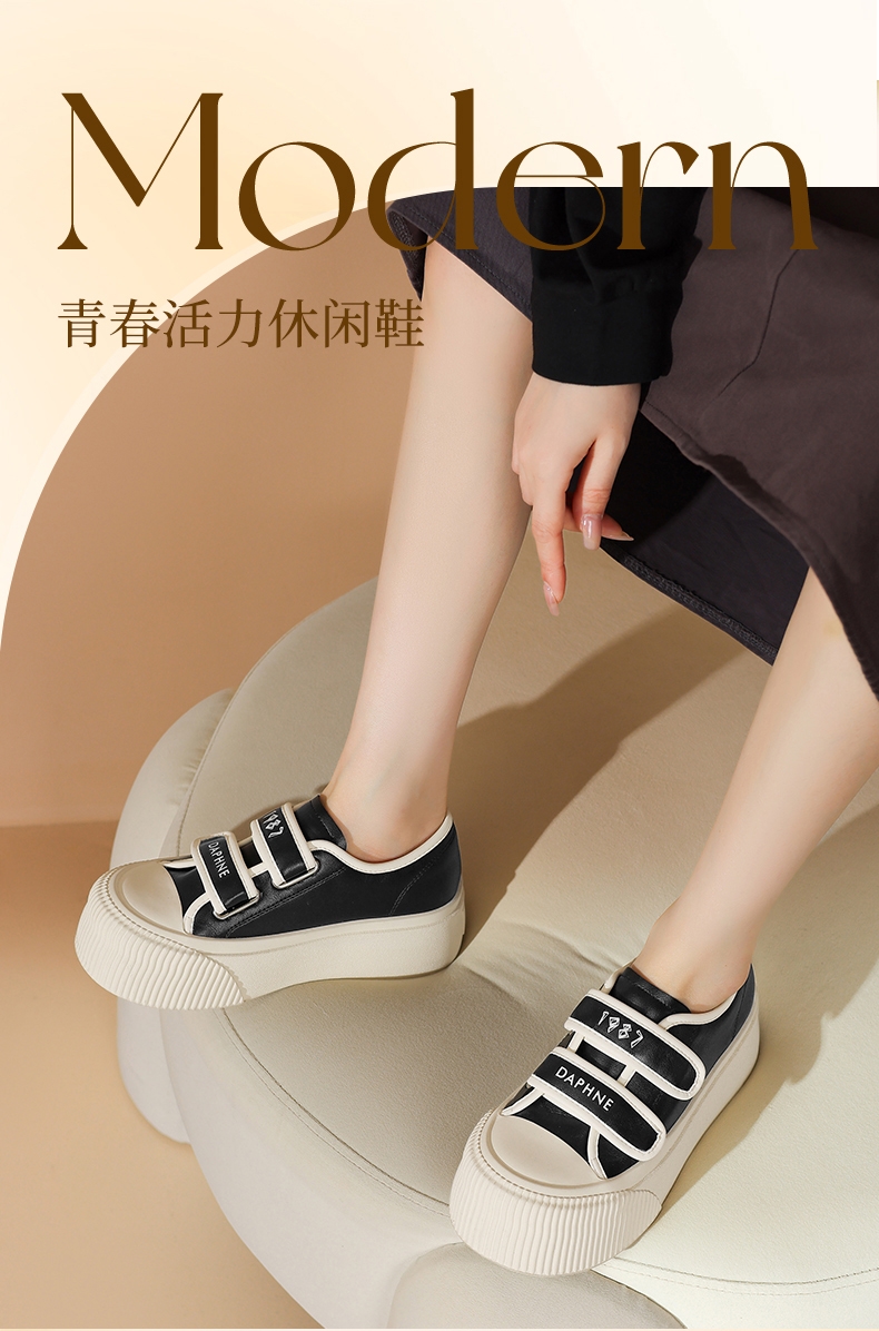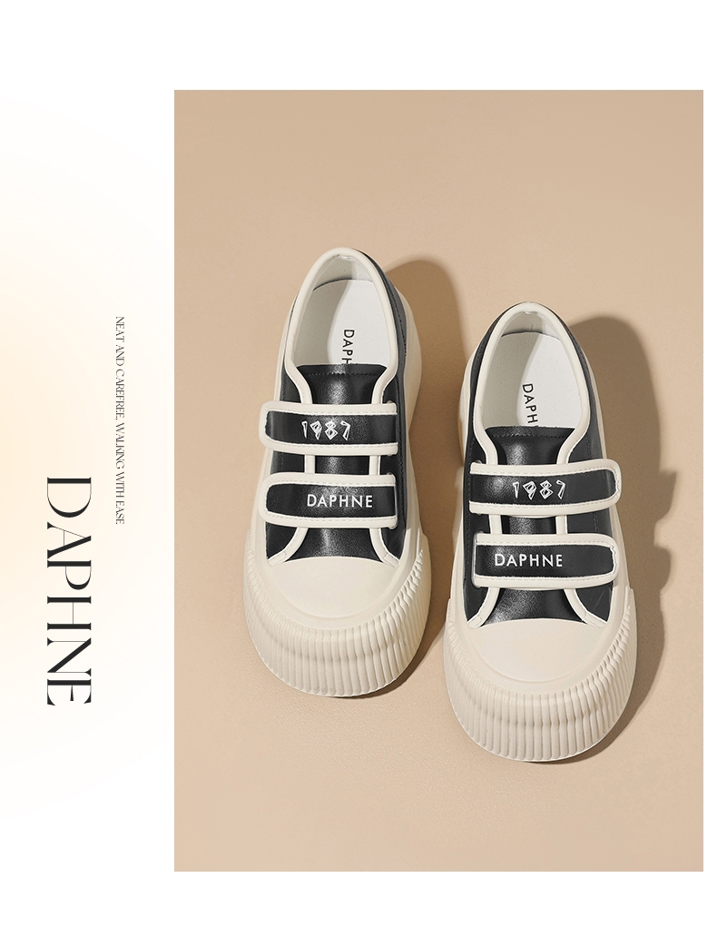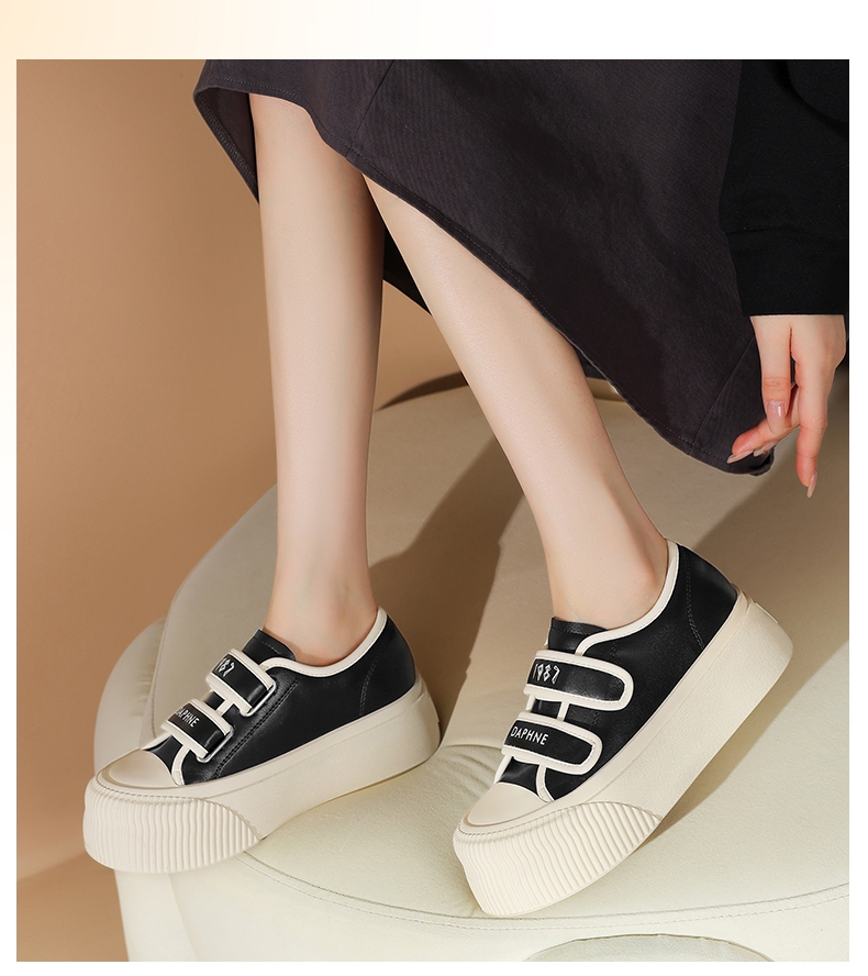 达芙妮魔术贴厚底板鞋女款新款松糕增高帆布鞋4024101185