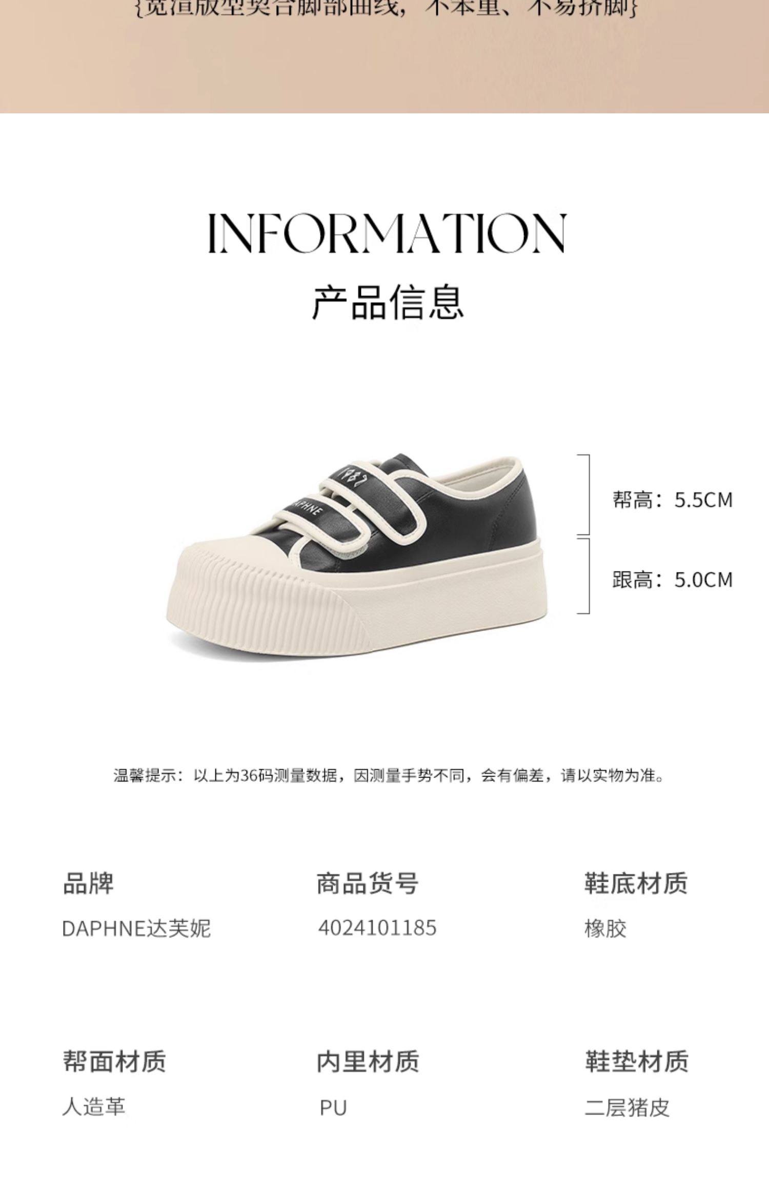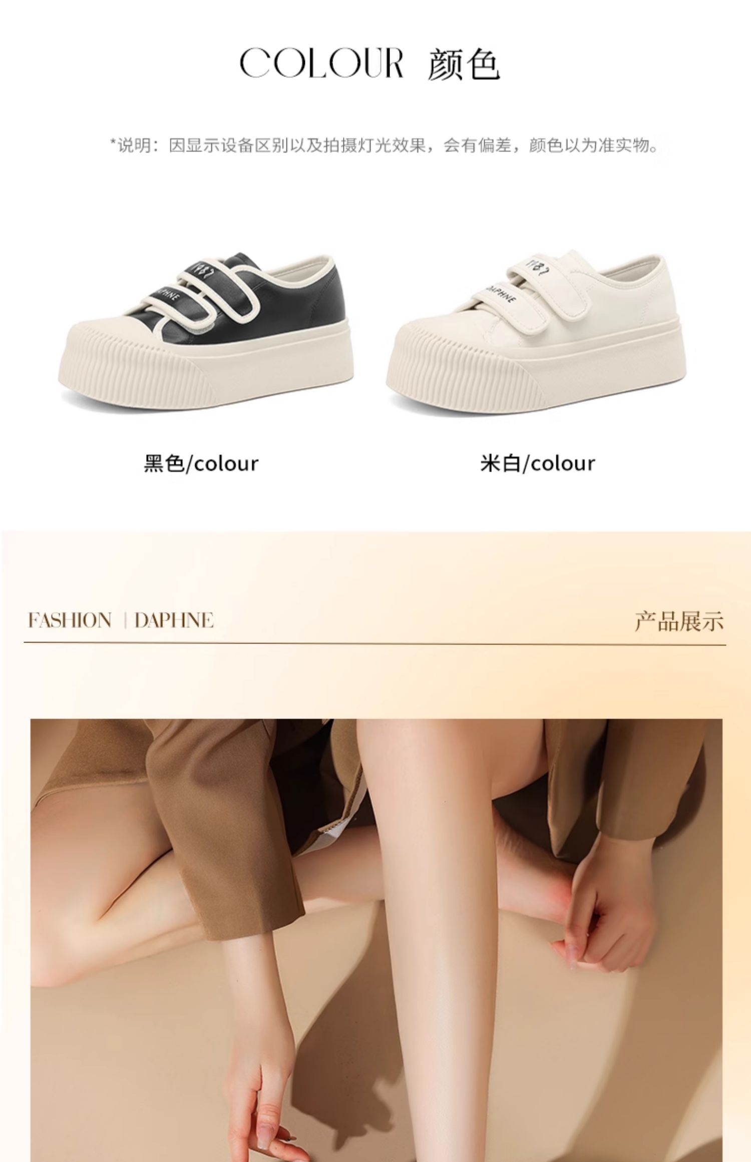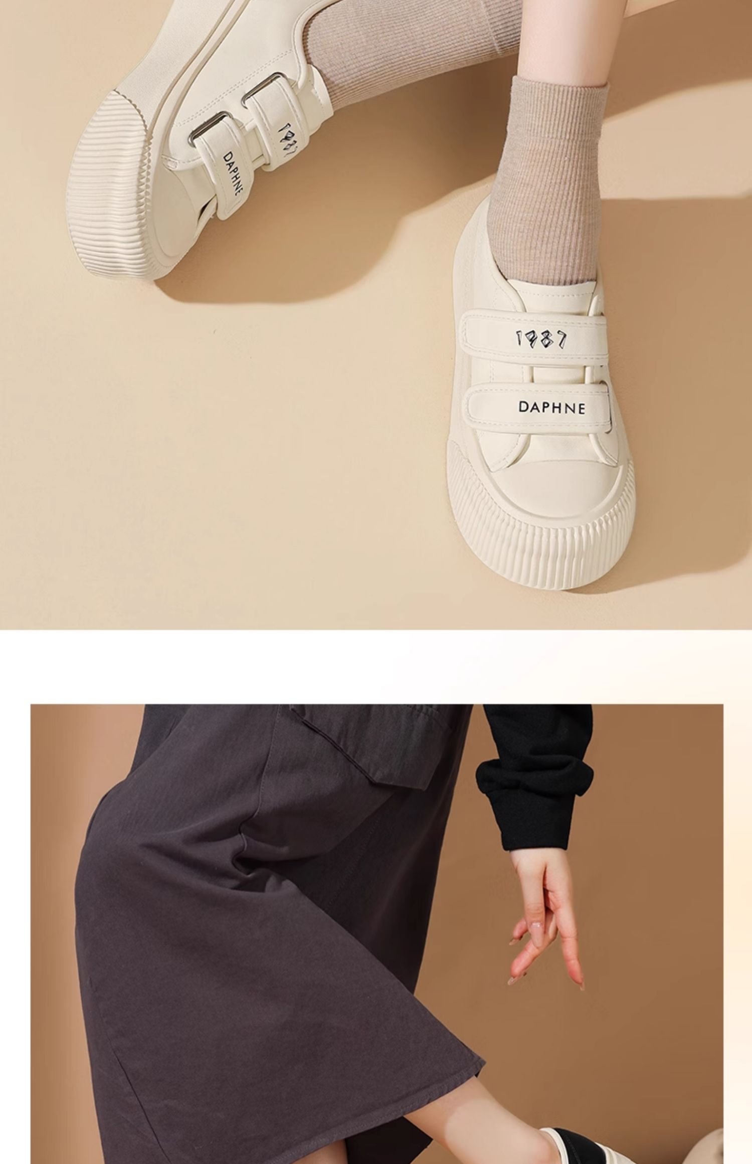 达芙妮魔术贴厚底板鞋女款新款松糕增高帆布鞋4024101185