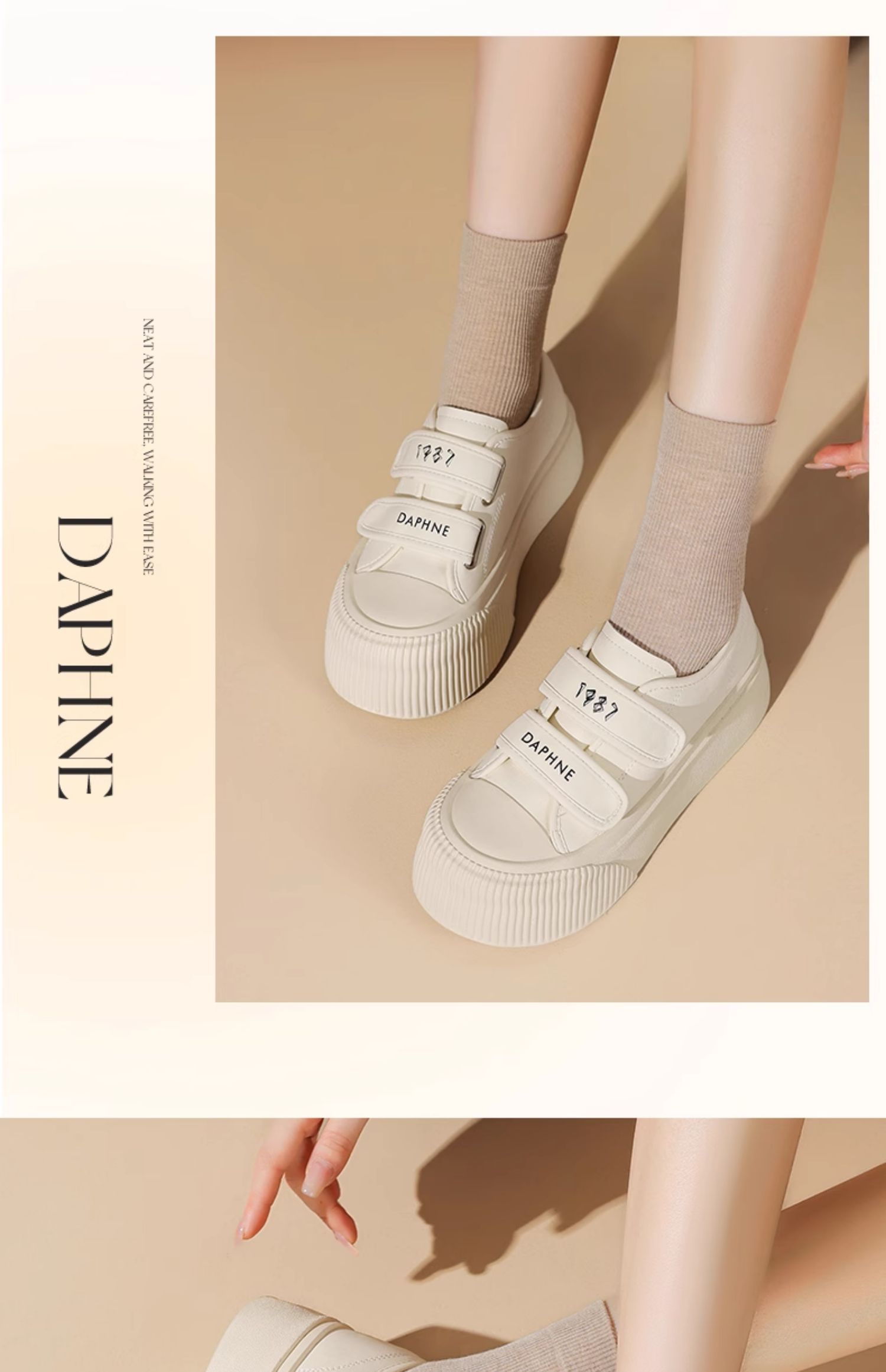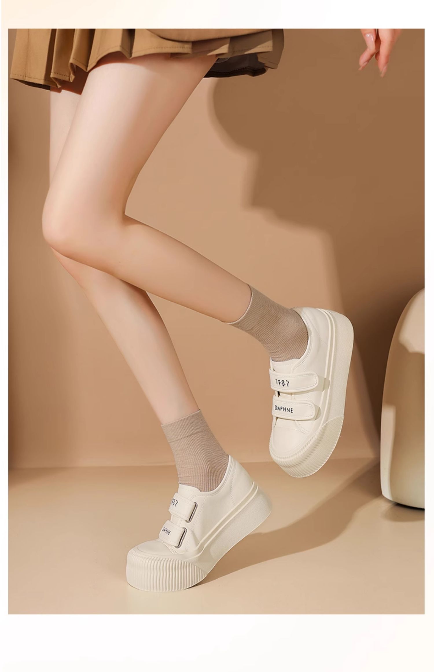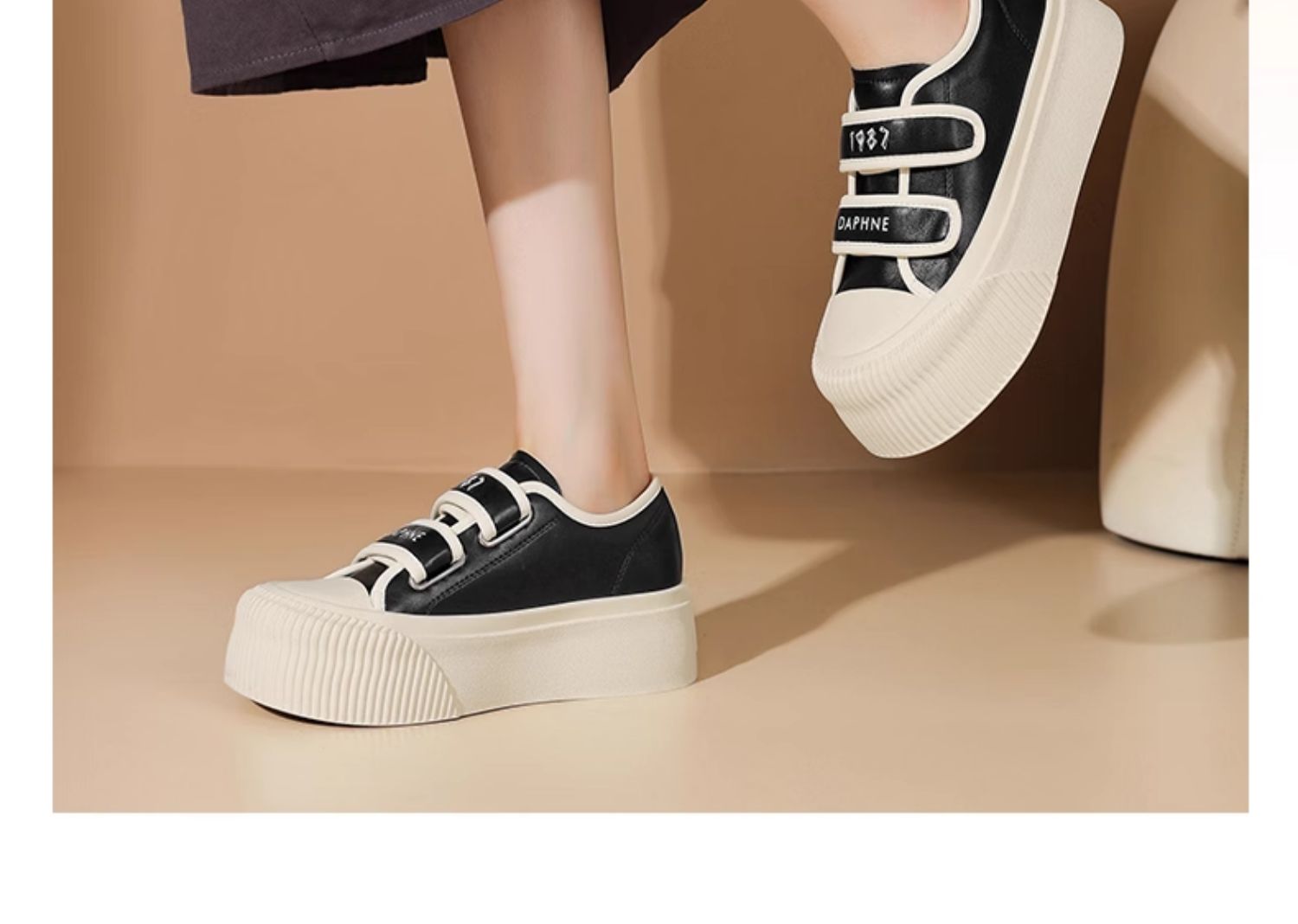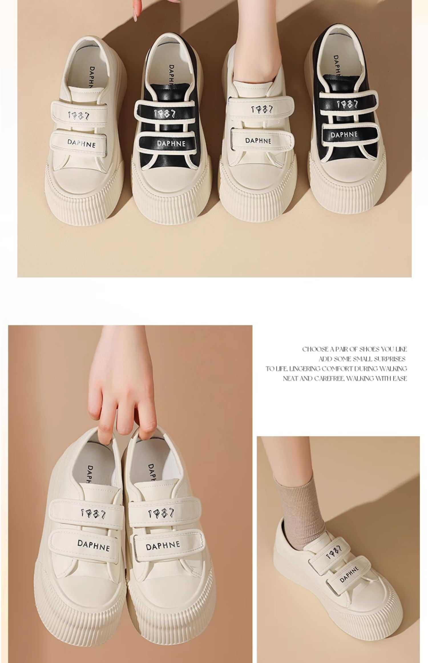 达芙妮魔术贴厚底板鞋女款新款松糕增高帆布鞋4024101185