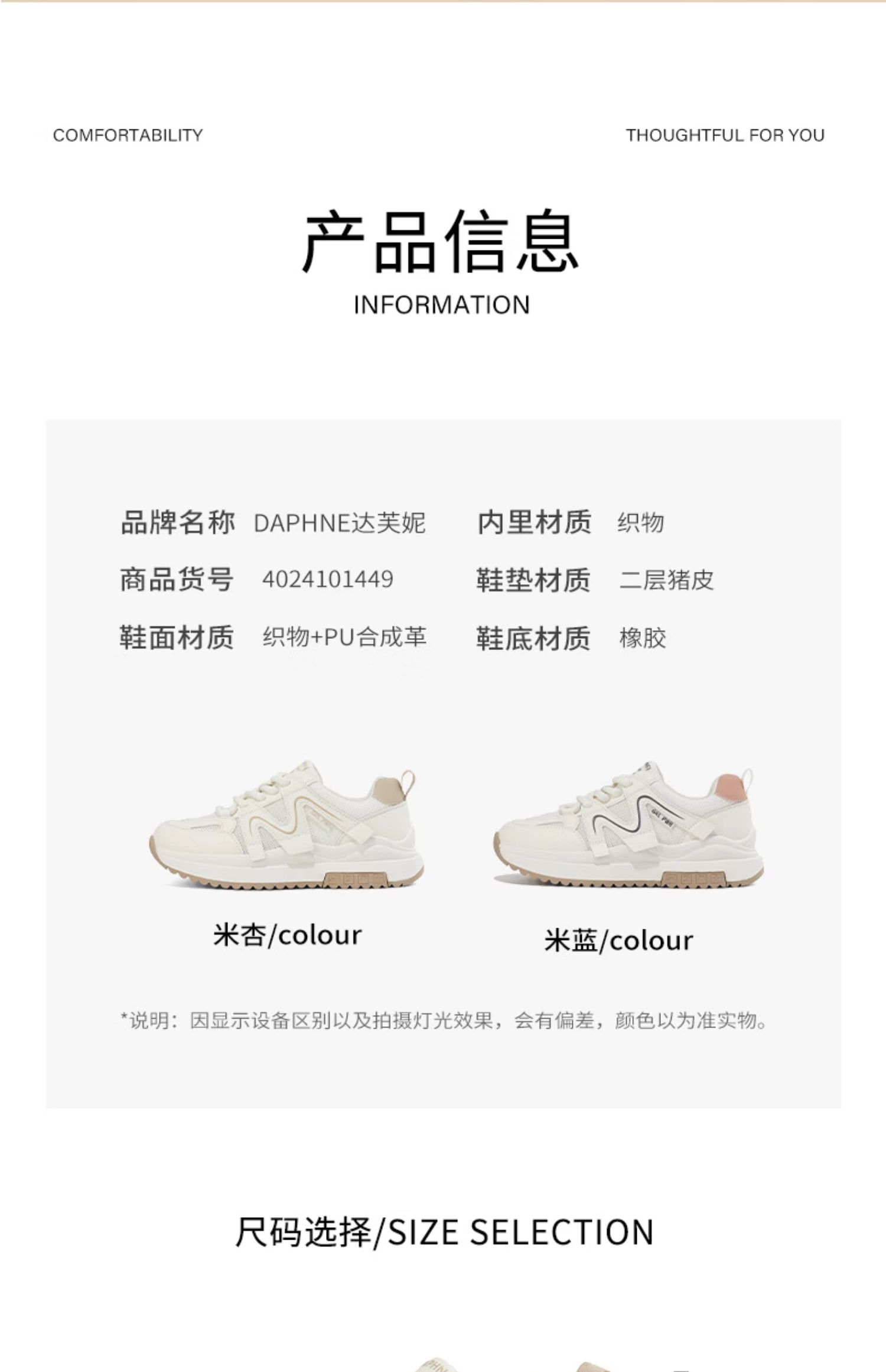 达芙妮透气网面老爹鞋增高厚底鞋小白鞋女鞋4024101449