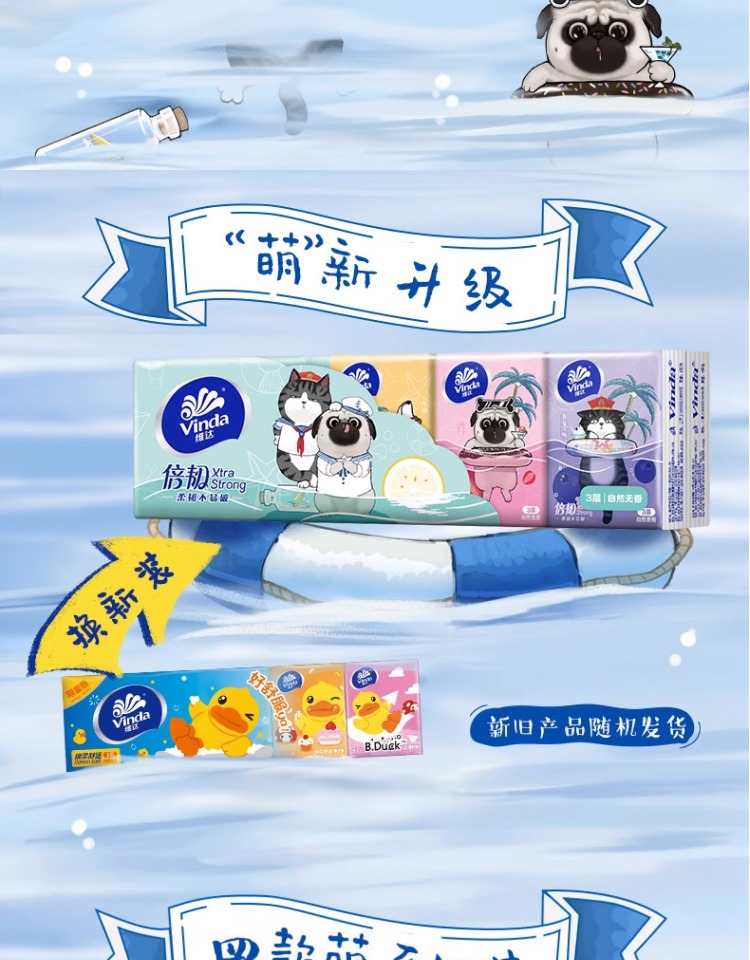 维达 Vinda 手帕纸3层8张10包 自然无香 小包纸巾随身装便携式整箱卫生纸
