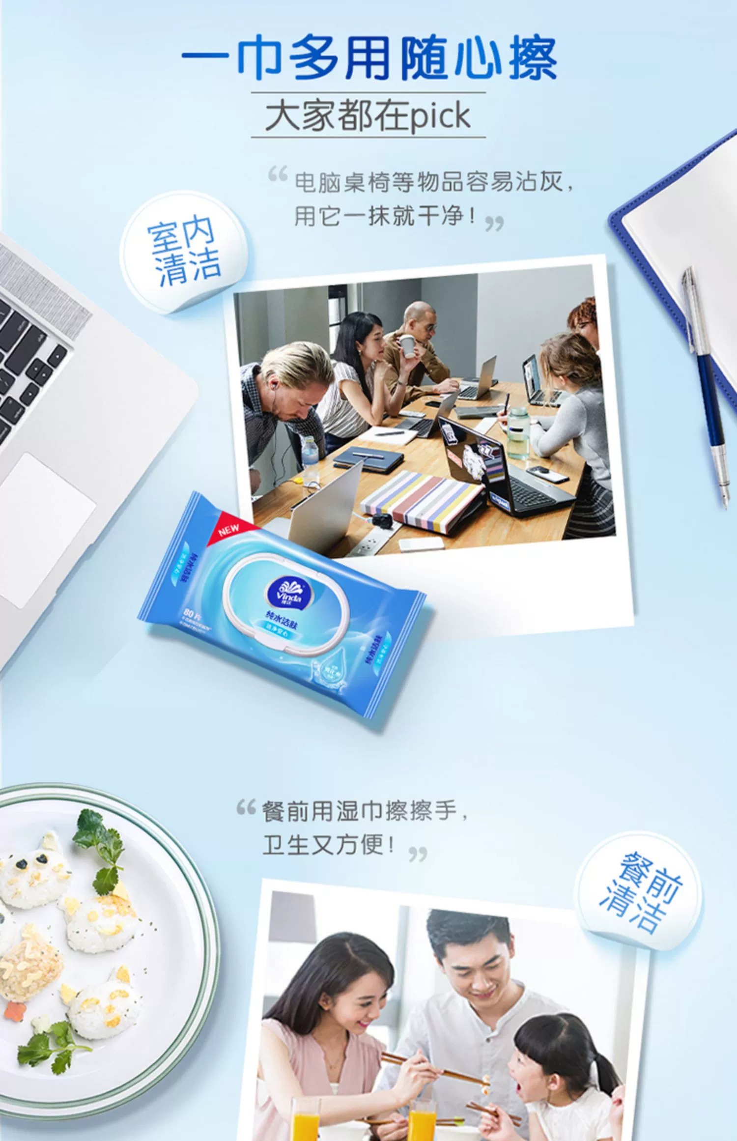 维达 杀菌消毒湿巾80抽 超市同款
