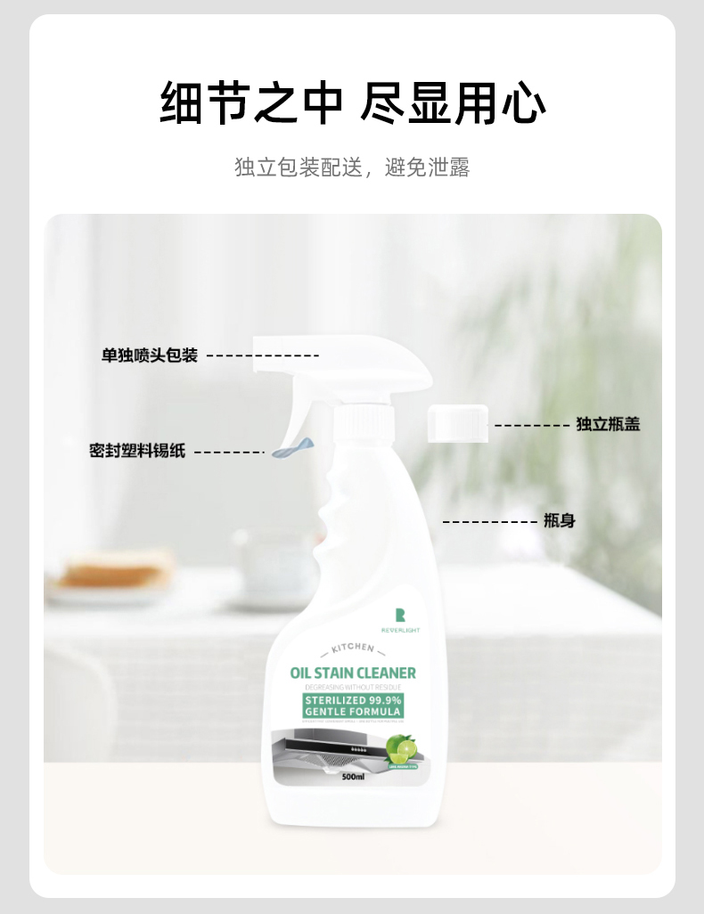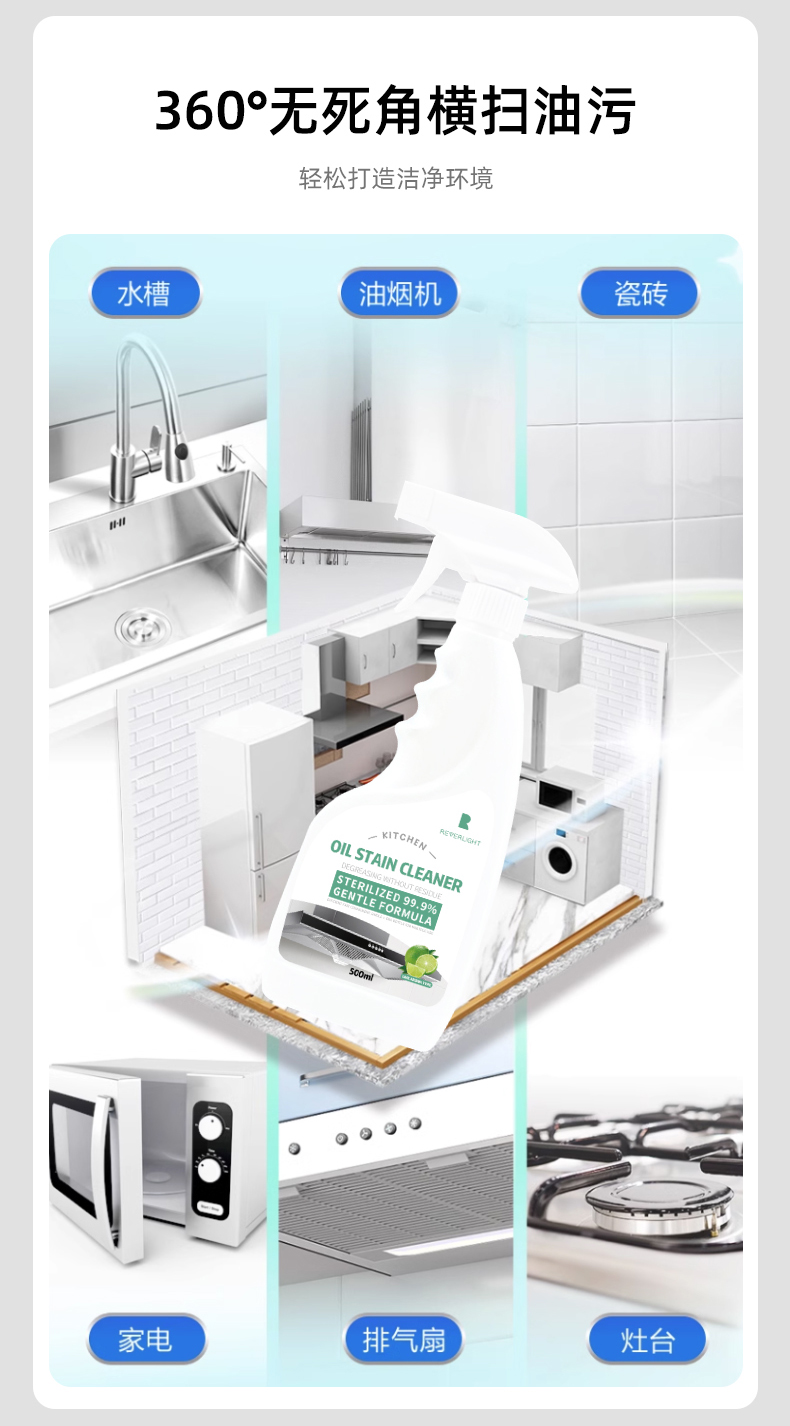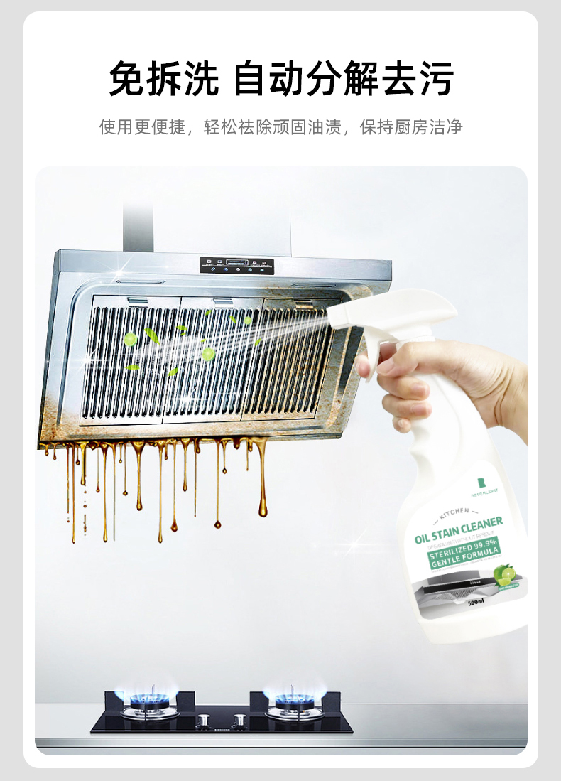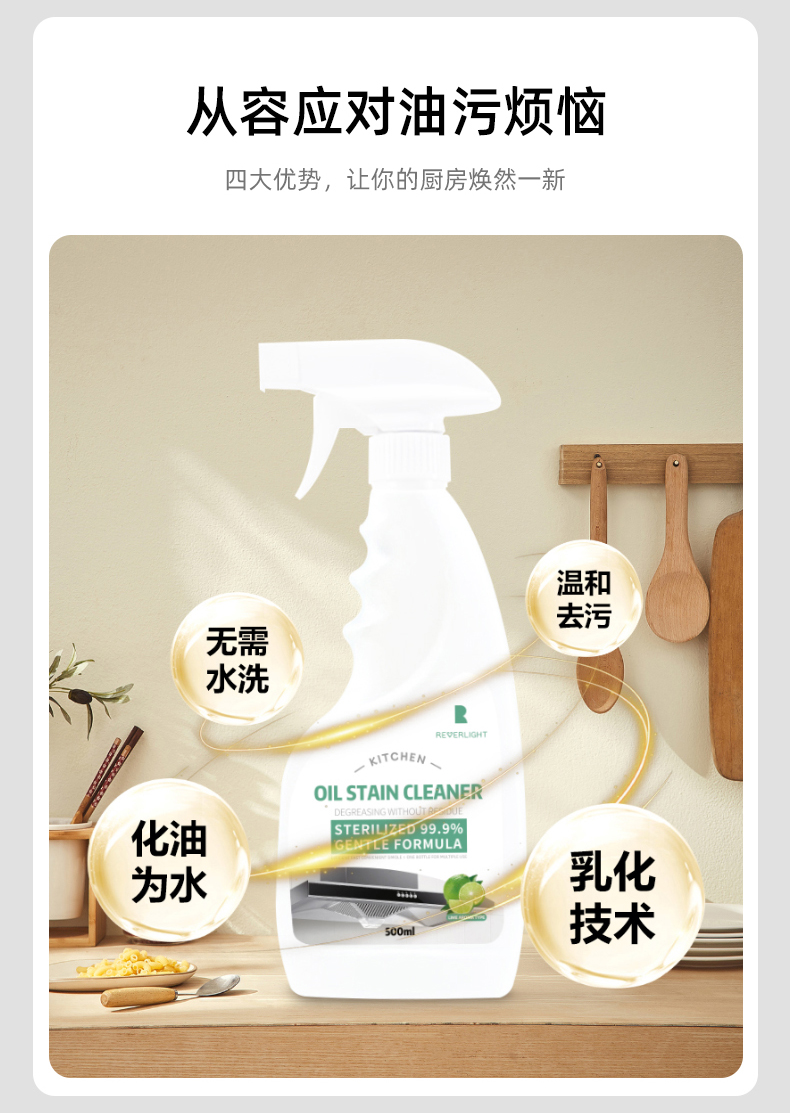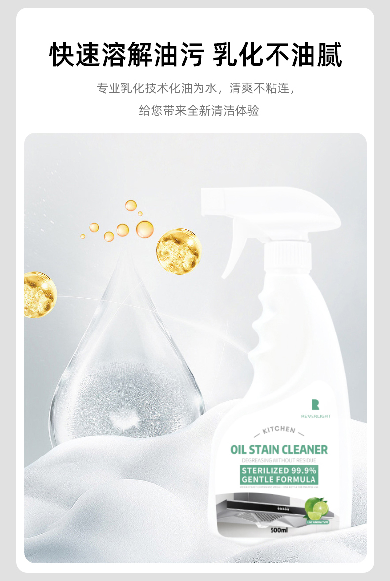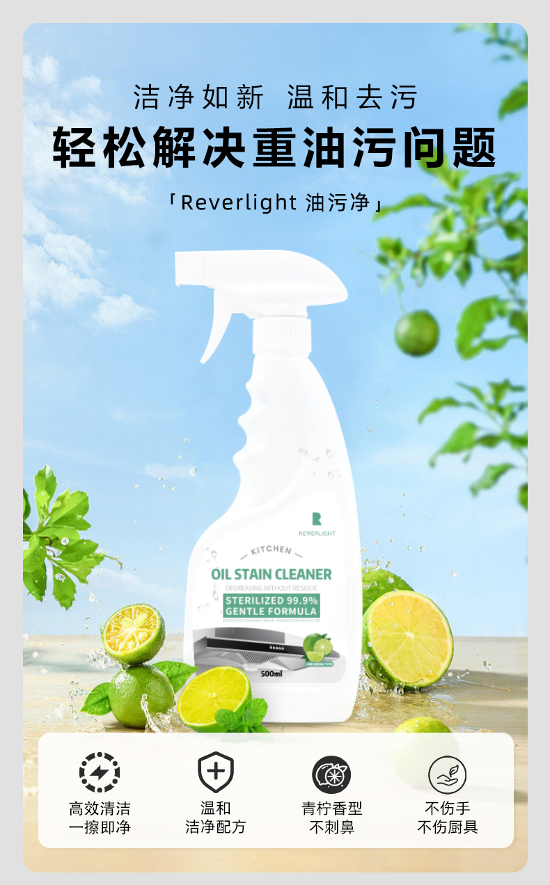 Reverlight重油污清洗剂油污净清新厨房油烟机清洁剂500ml/瓶