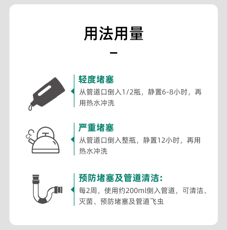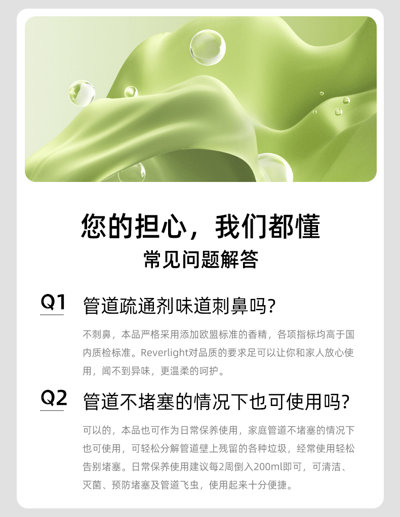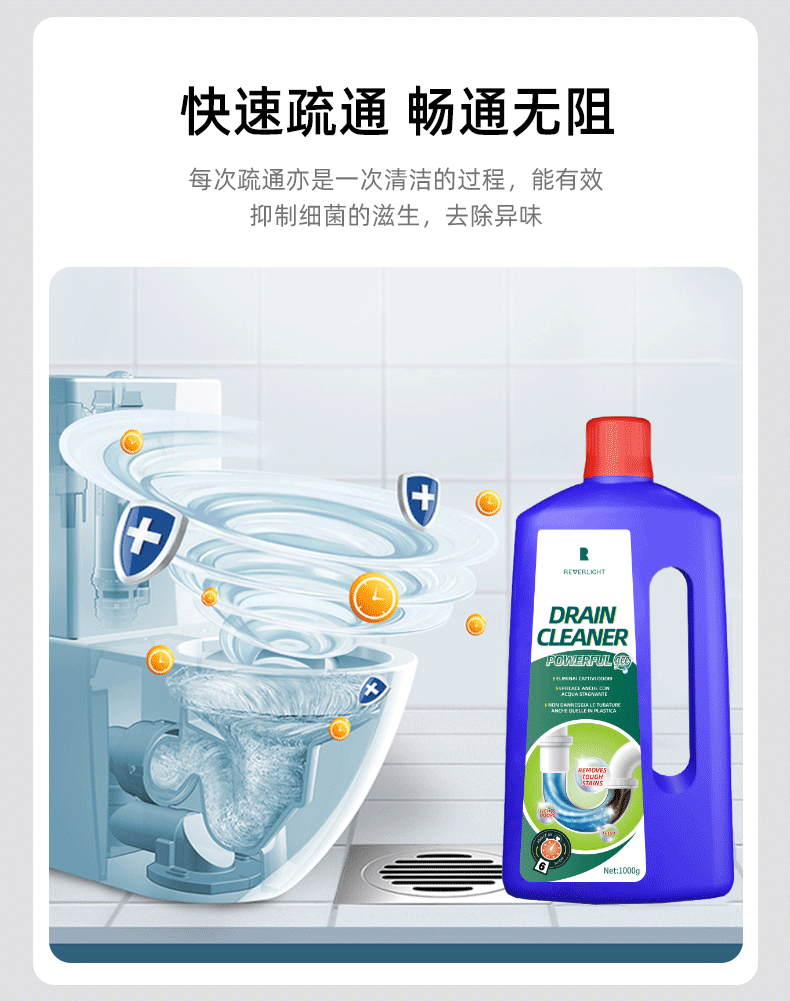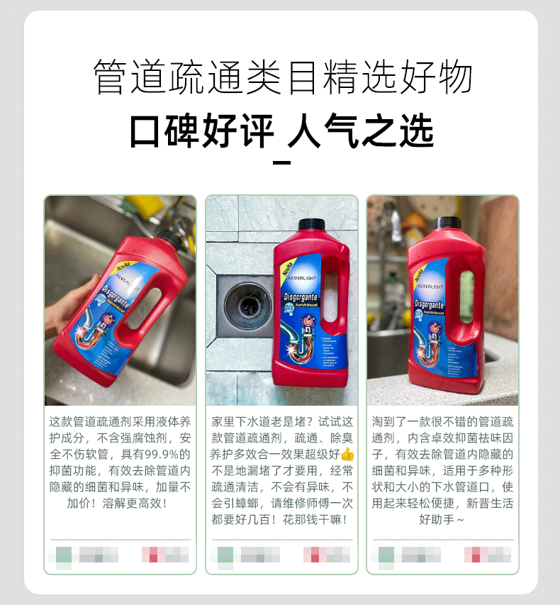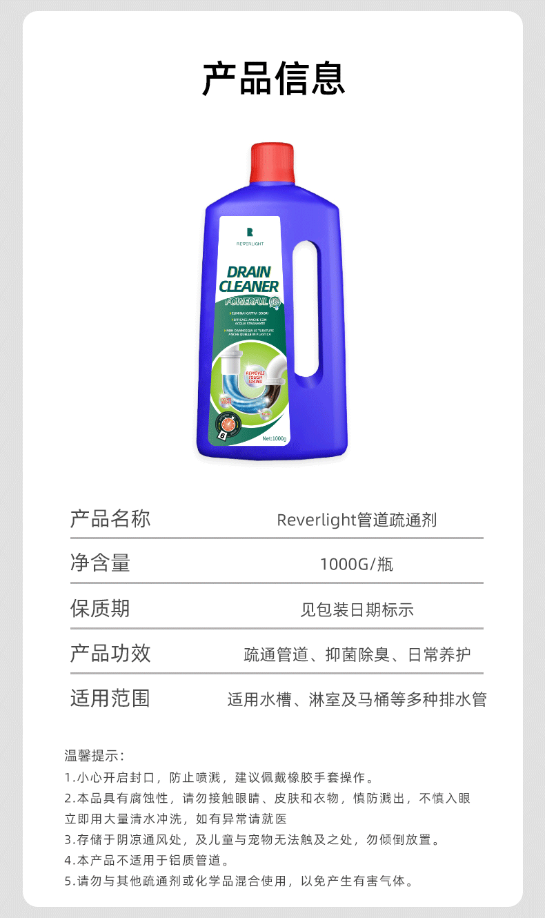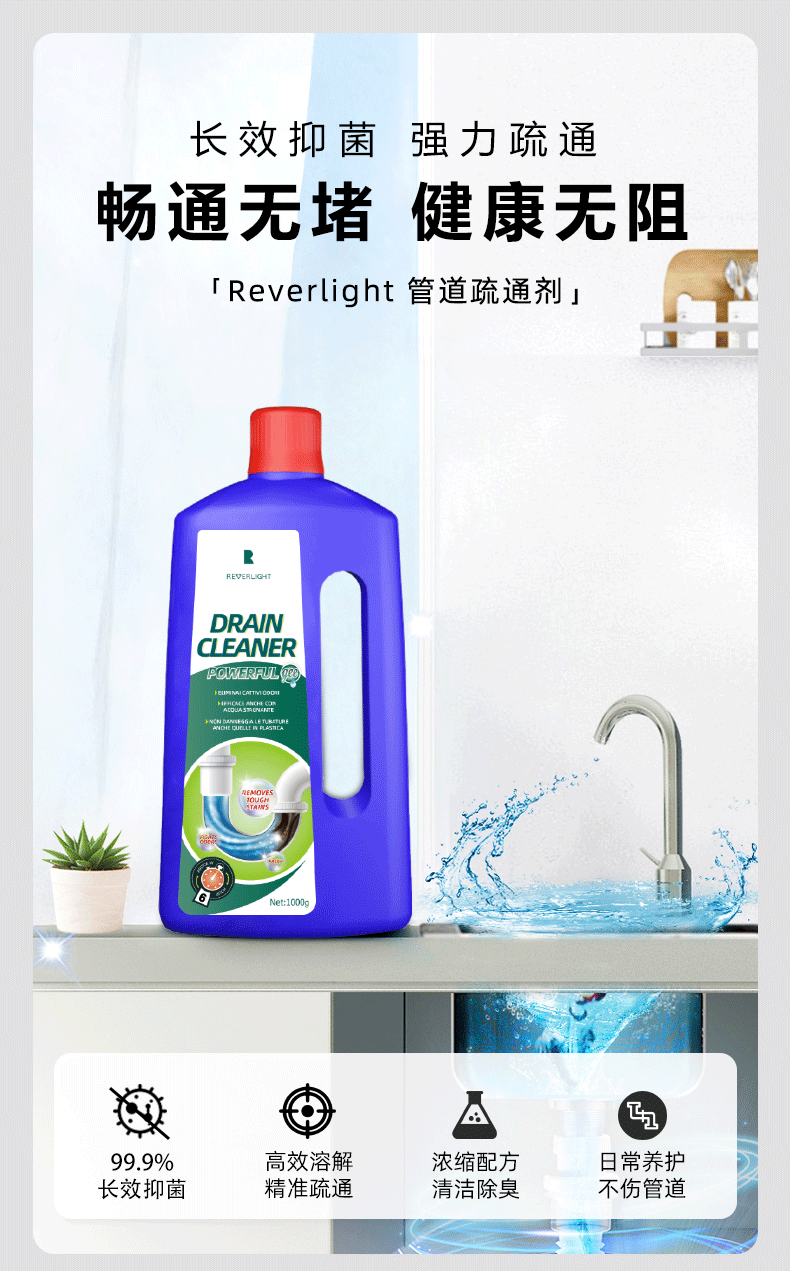 Reverlight 管道疏通剂强力溶解头发堵塞厨房厕所下水道疏通剂