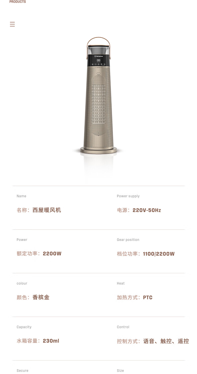 西屋家用暖风机/取暖器/加热风机/电暖器/电暖气片/电热风扇家用大面积台地立式轻音节能WTH-518R