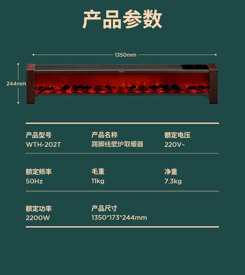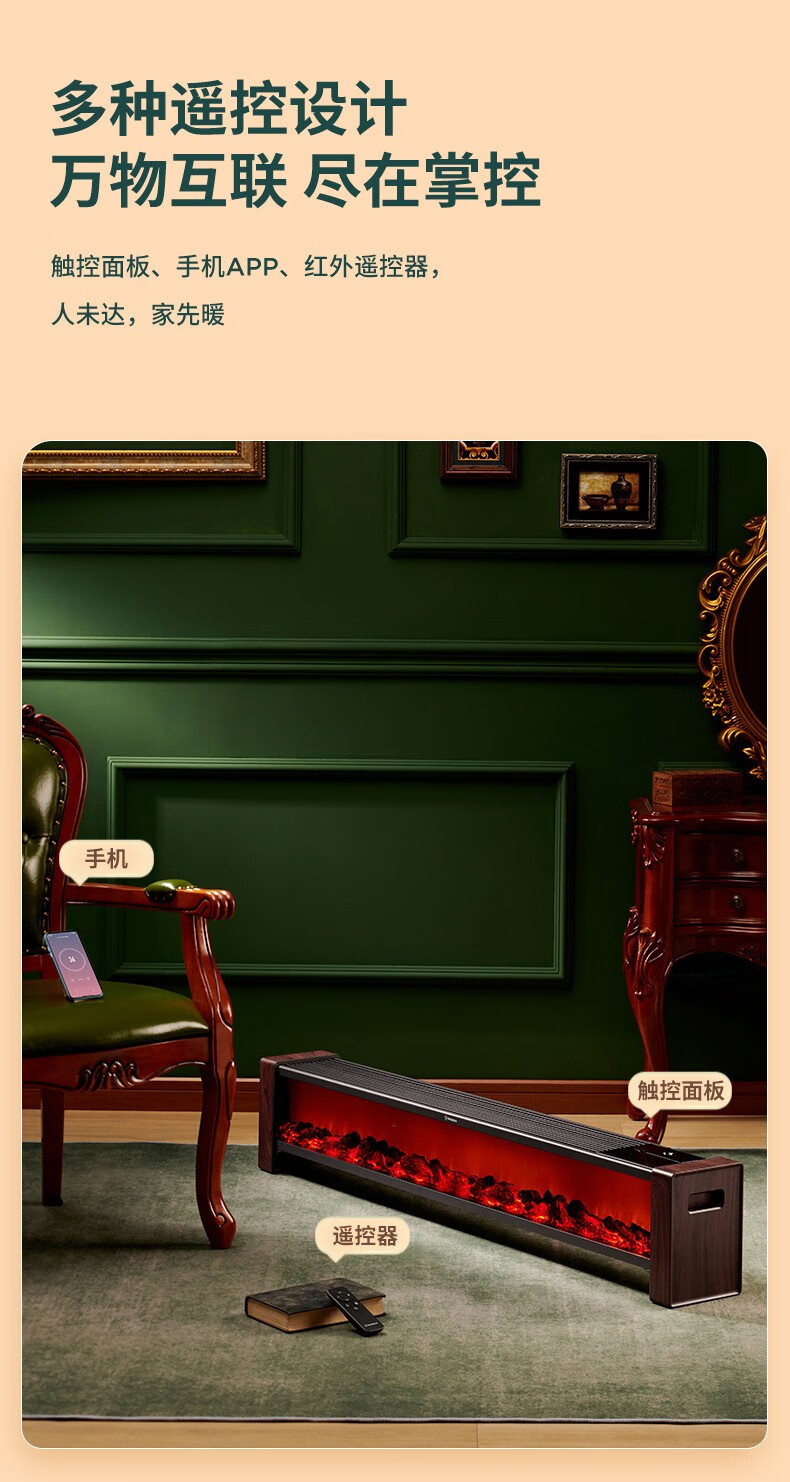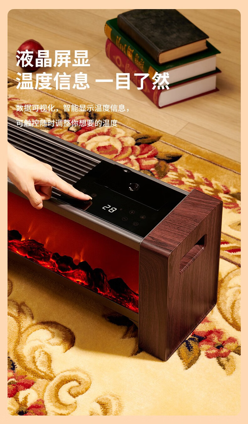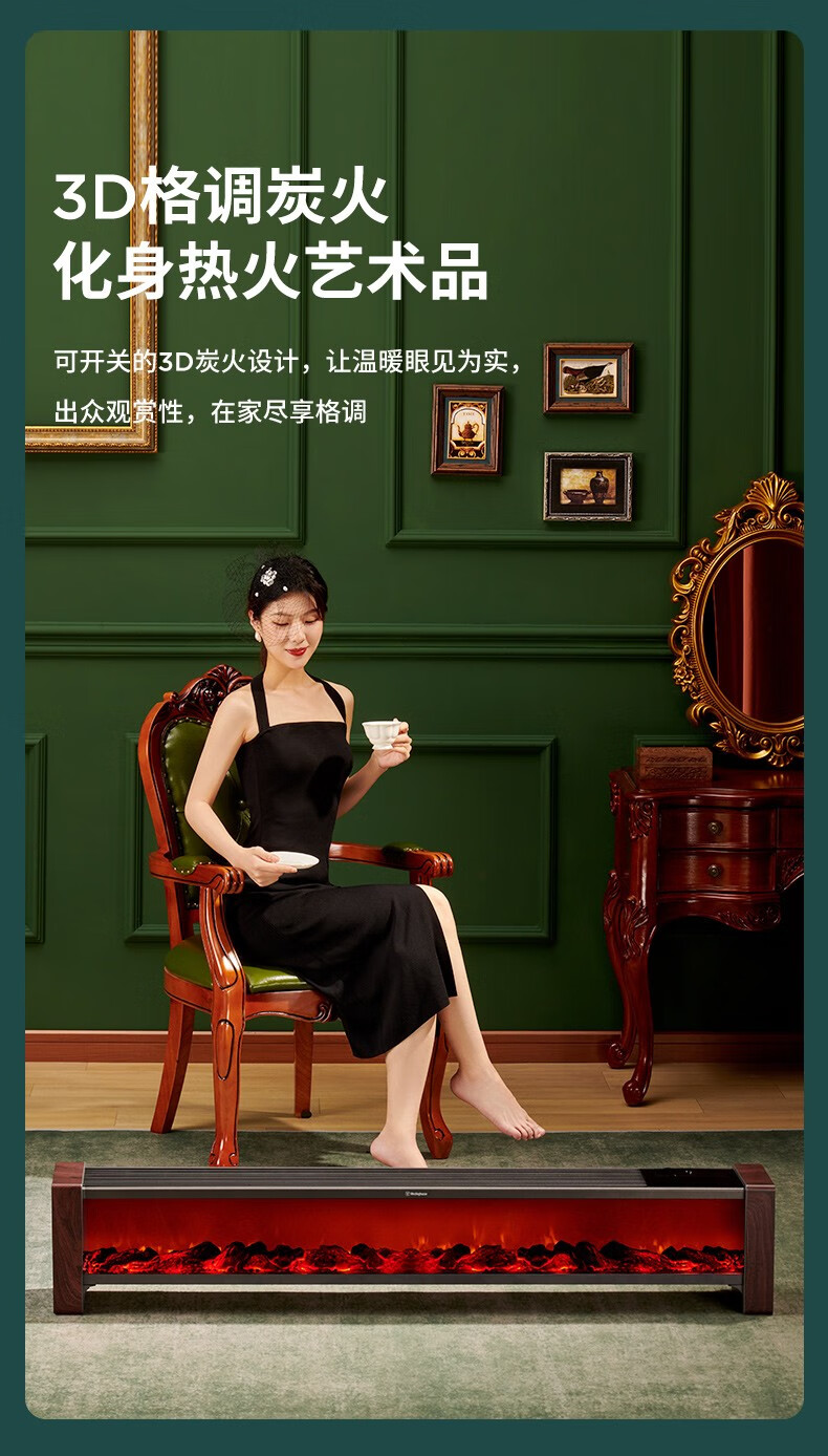 西屋(Westinghouse)踢脚线取暖器 石墨烯家用电暖气烤火炉壁炉移动地暖WTH-202T 红色