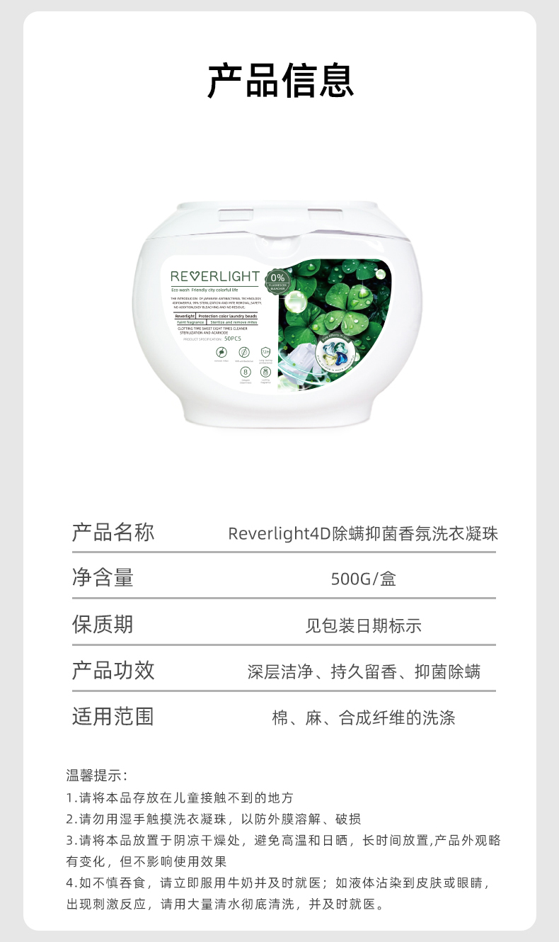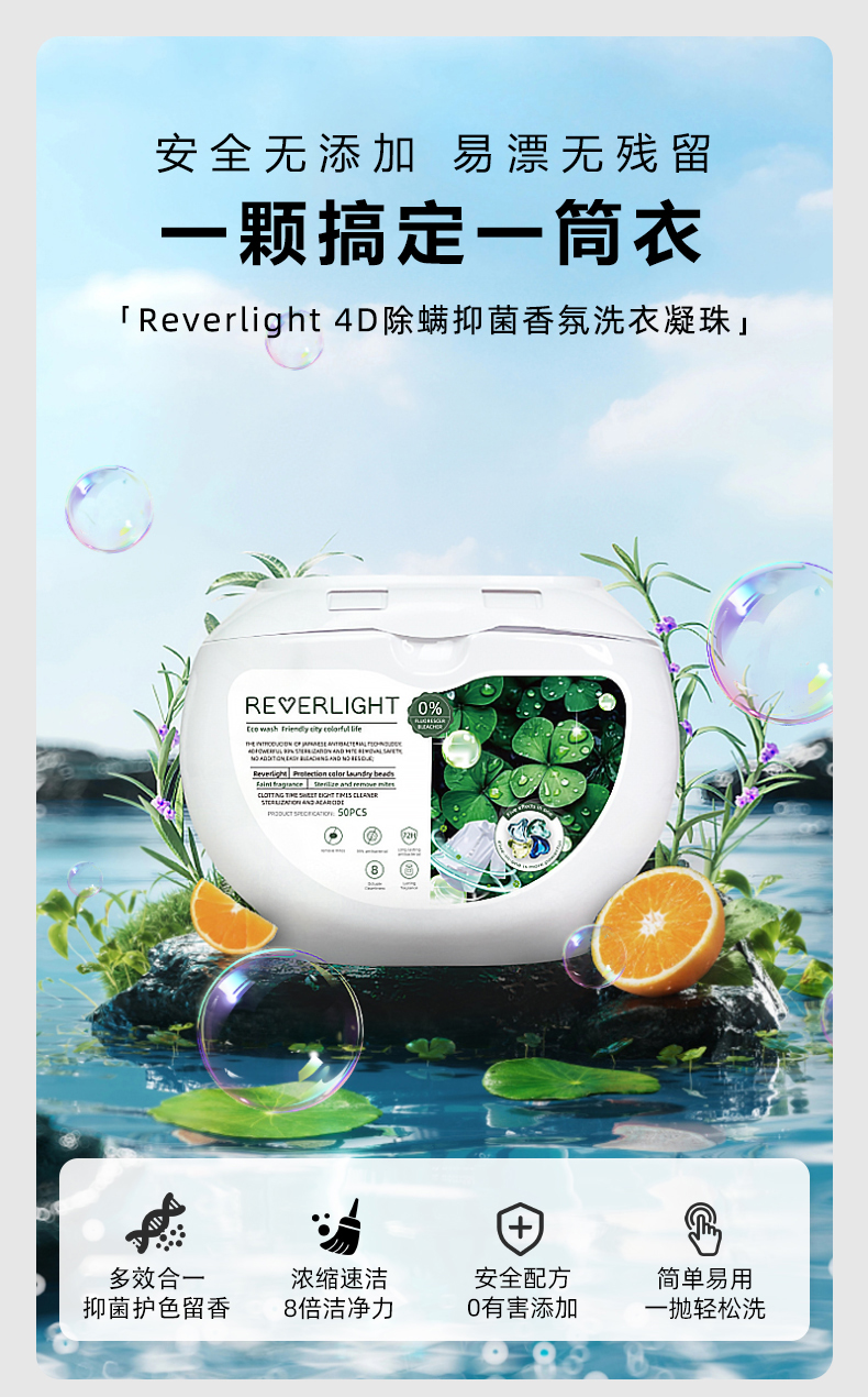 Reverlight 4D除螨抑菌香氛浓缩洗衣凝珠50颗装