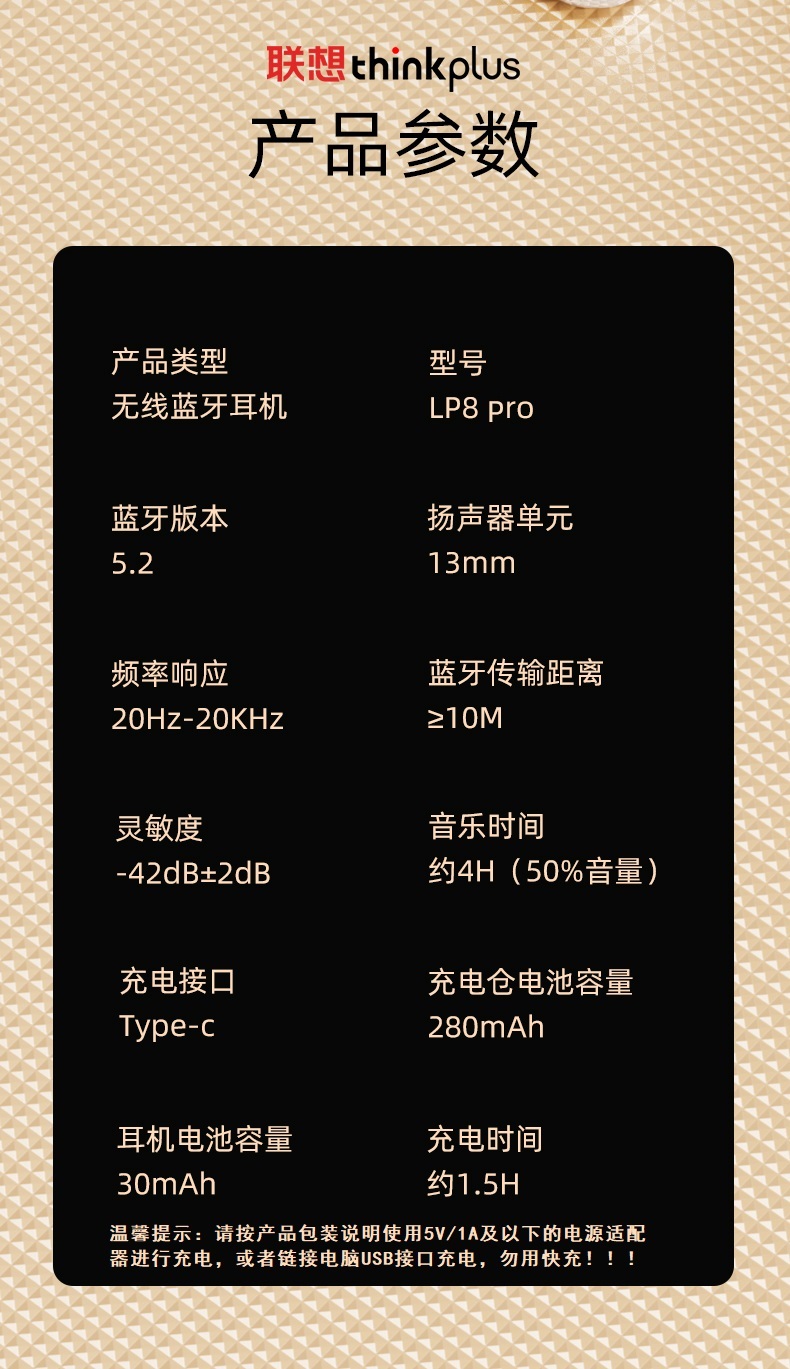 lenovo联想 thinkplus LivePods 真无线蓝牙耳机 LP8pro