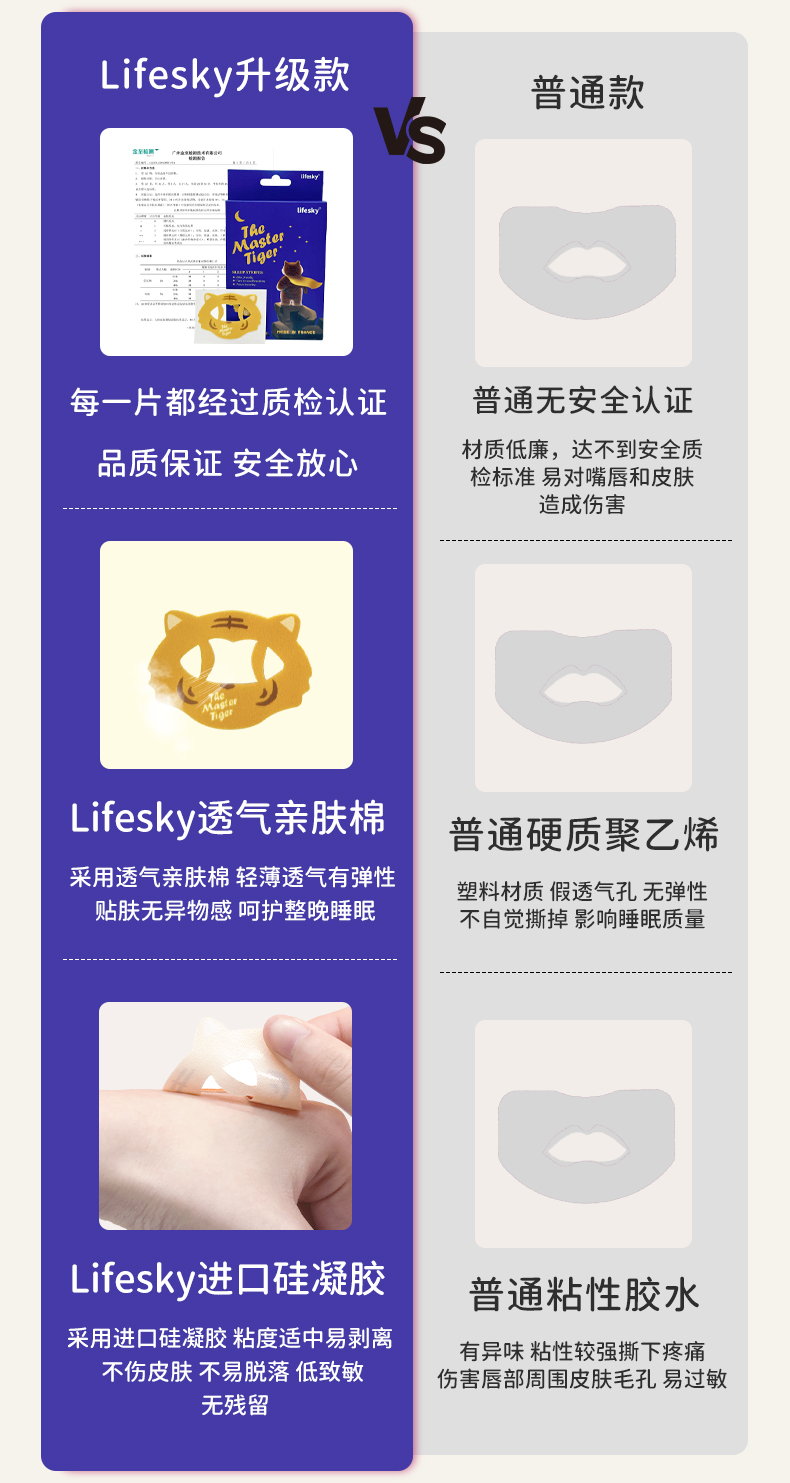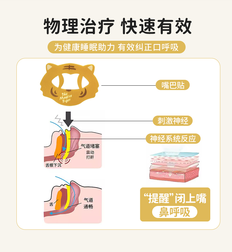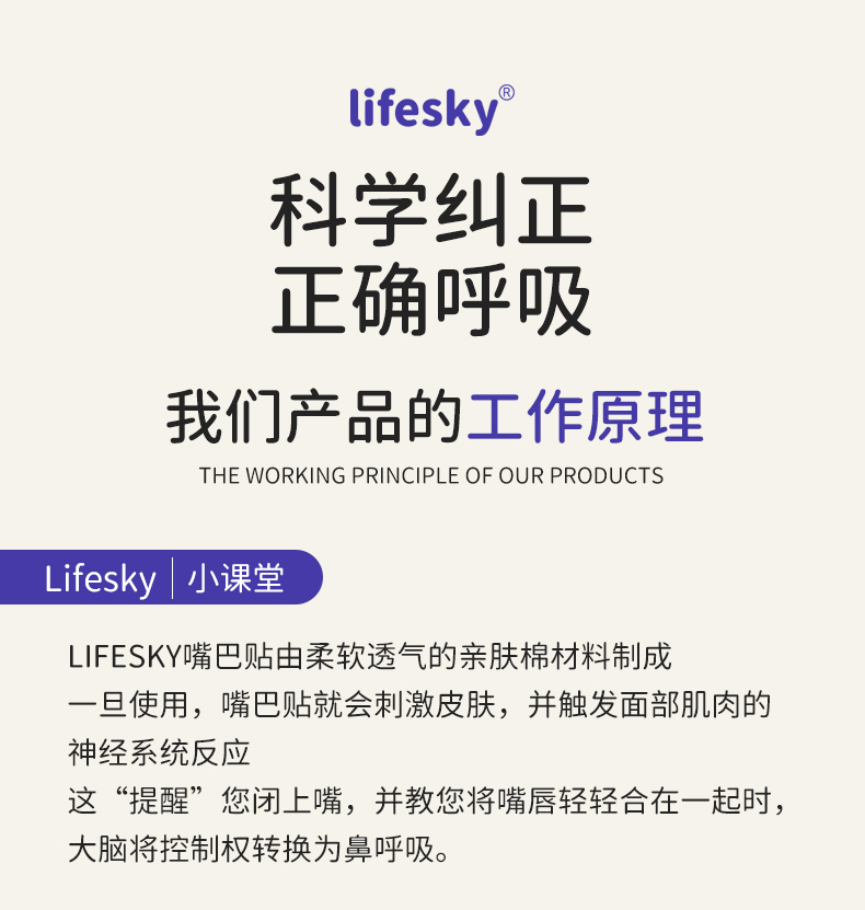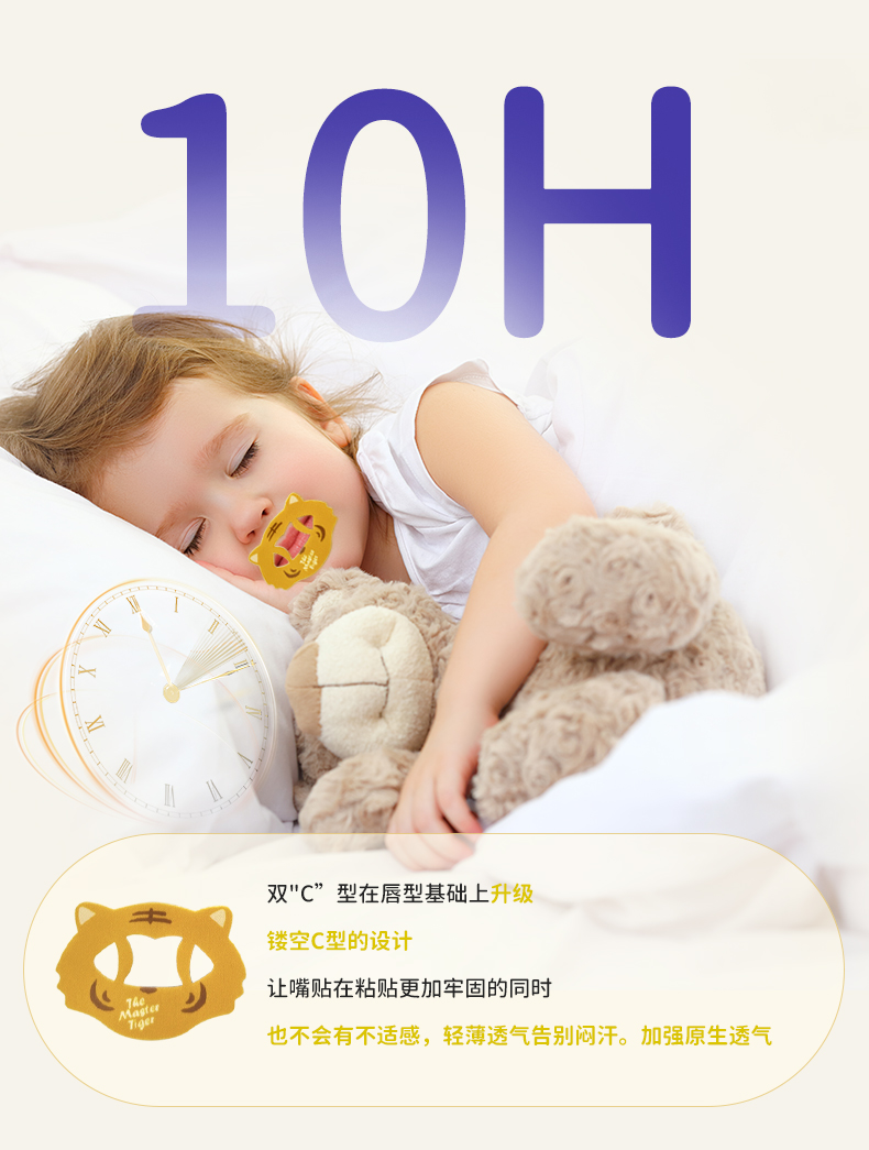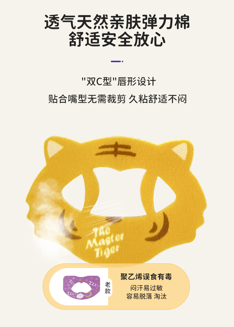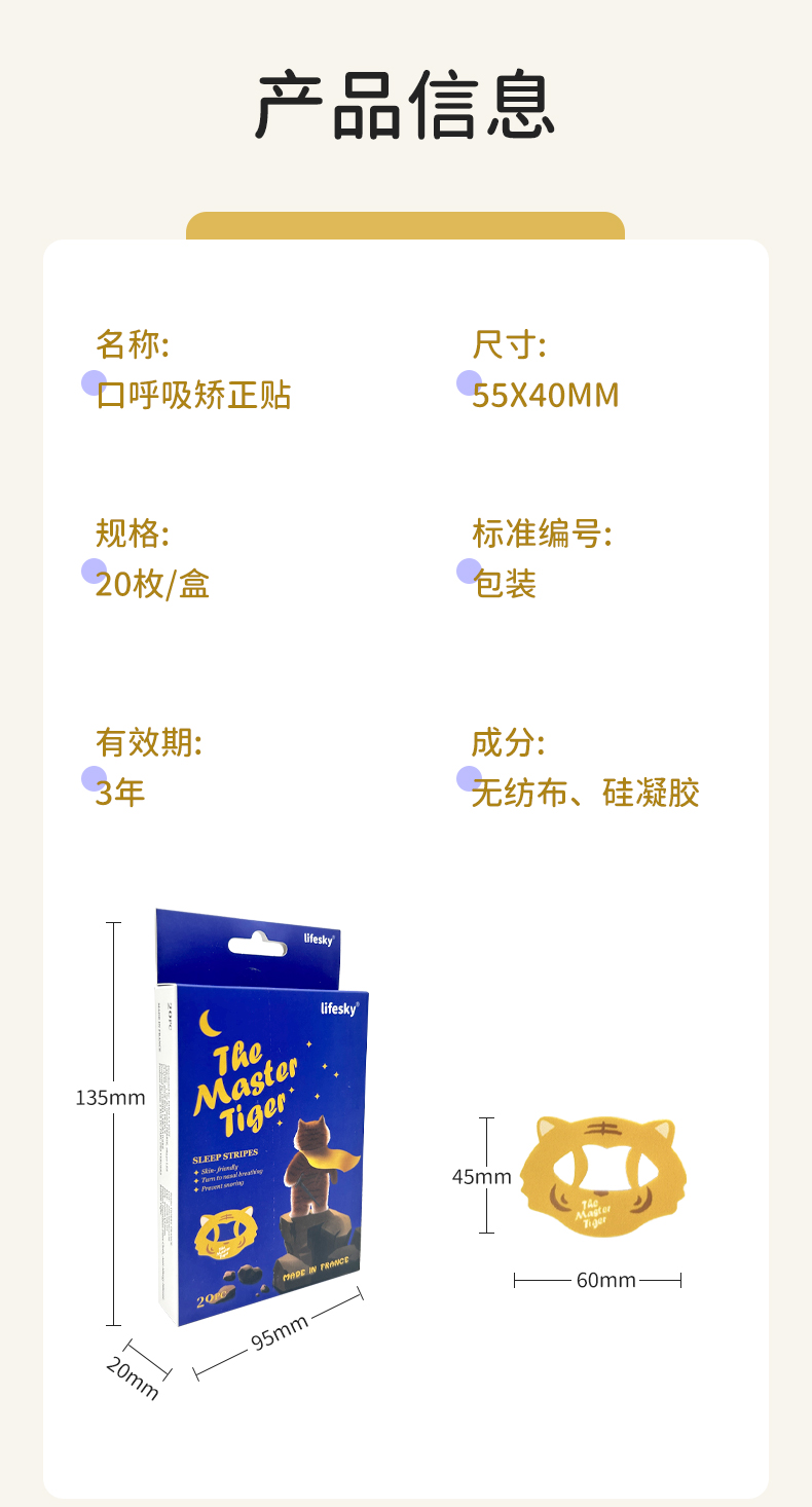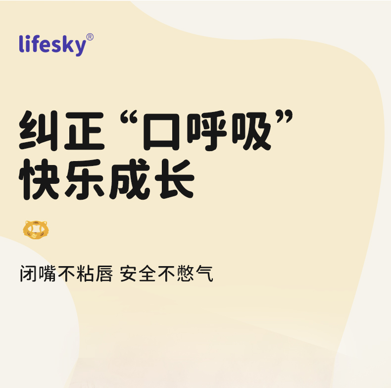 法国lifesky老虎大师口呼吸矫正贴闭嘴神器防张嘴巴封口贴闭口嘴唇贴闭合儿童20片/盒