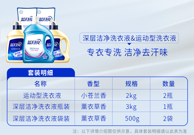 运动型洗衣液(小苍兰香)2kg*2+薰衣草洁净洗衣液3kg+薰衣草洁净洗衣液袋装500g*2