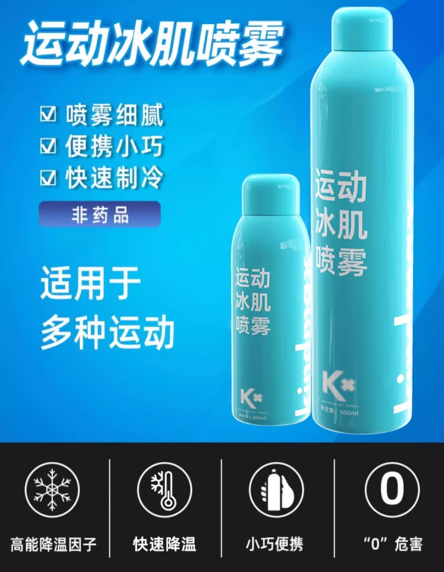 康玛士运动冷冻喷雾冰肌喷雾肌肉拉伤缓解疼痛急速冷脚踝关节