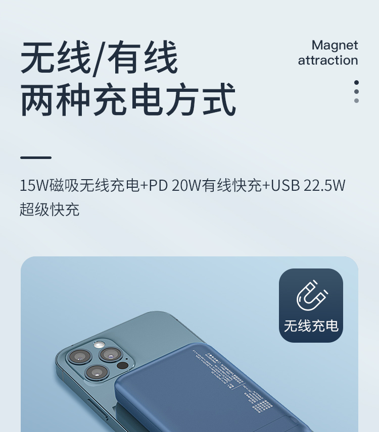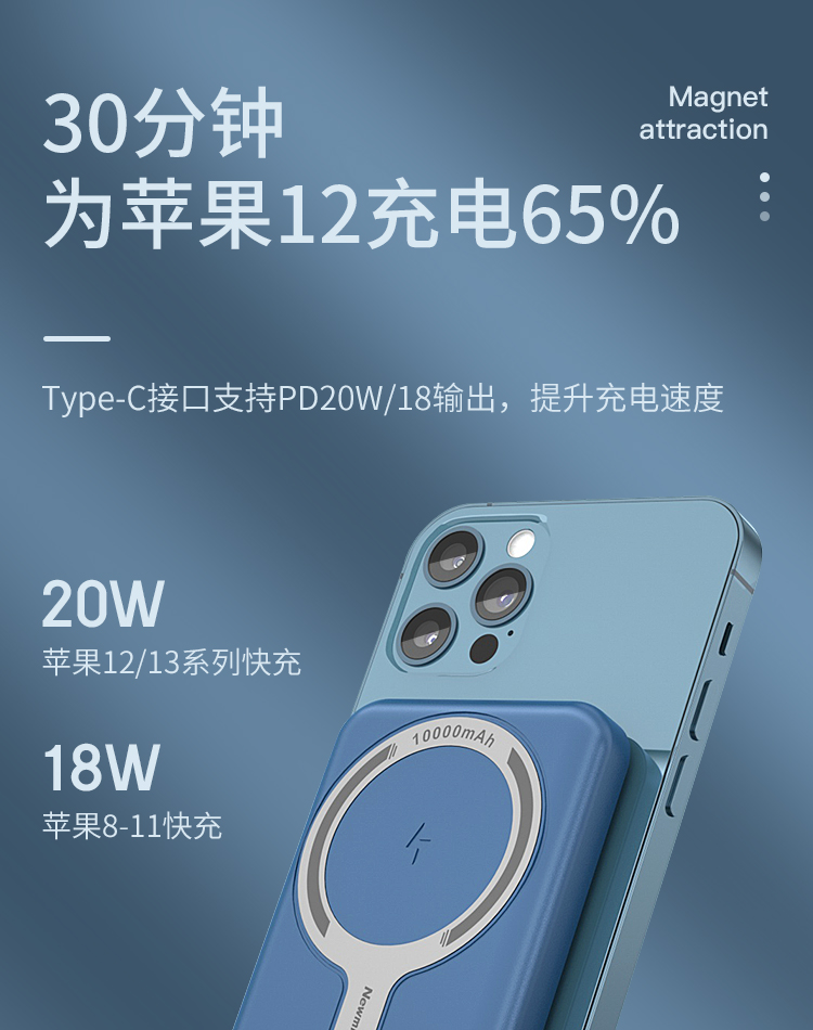 纽曼(Newmine)磁吸充电宝10000毫安时 适用于华为快充PD20W二合一无线MagSafe苹果移动电源