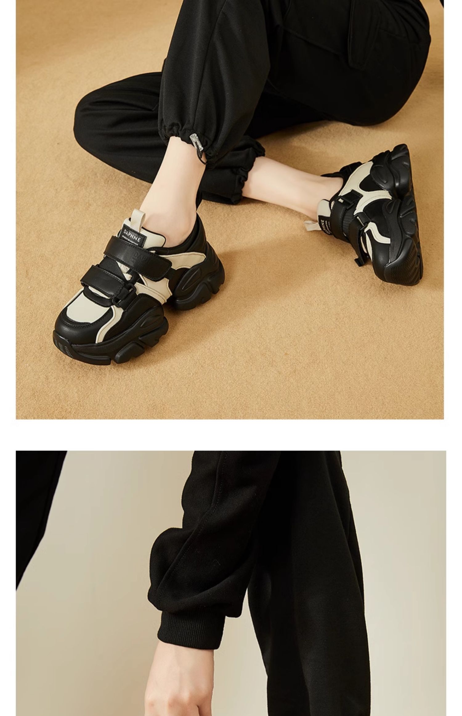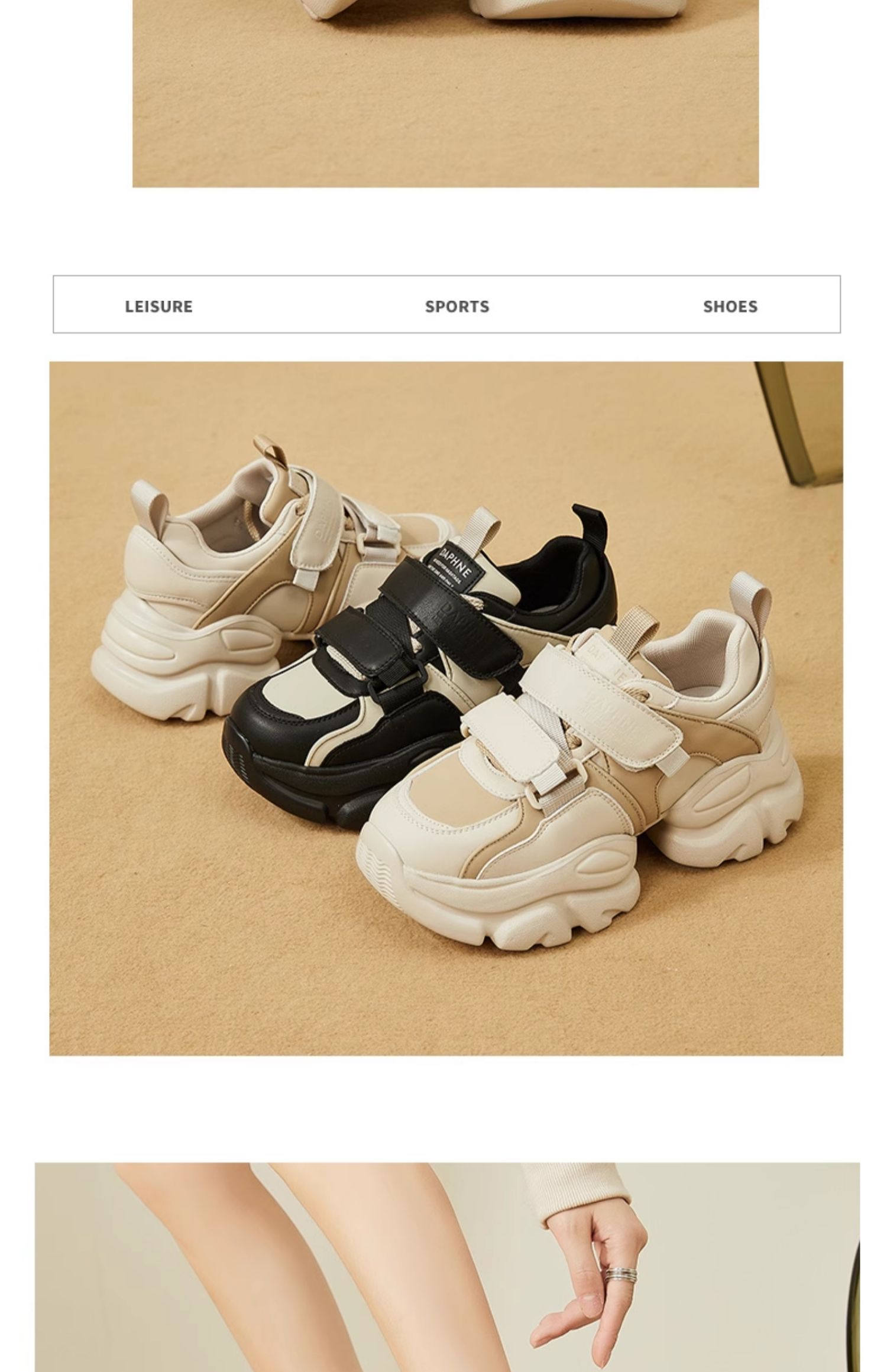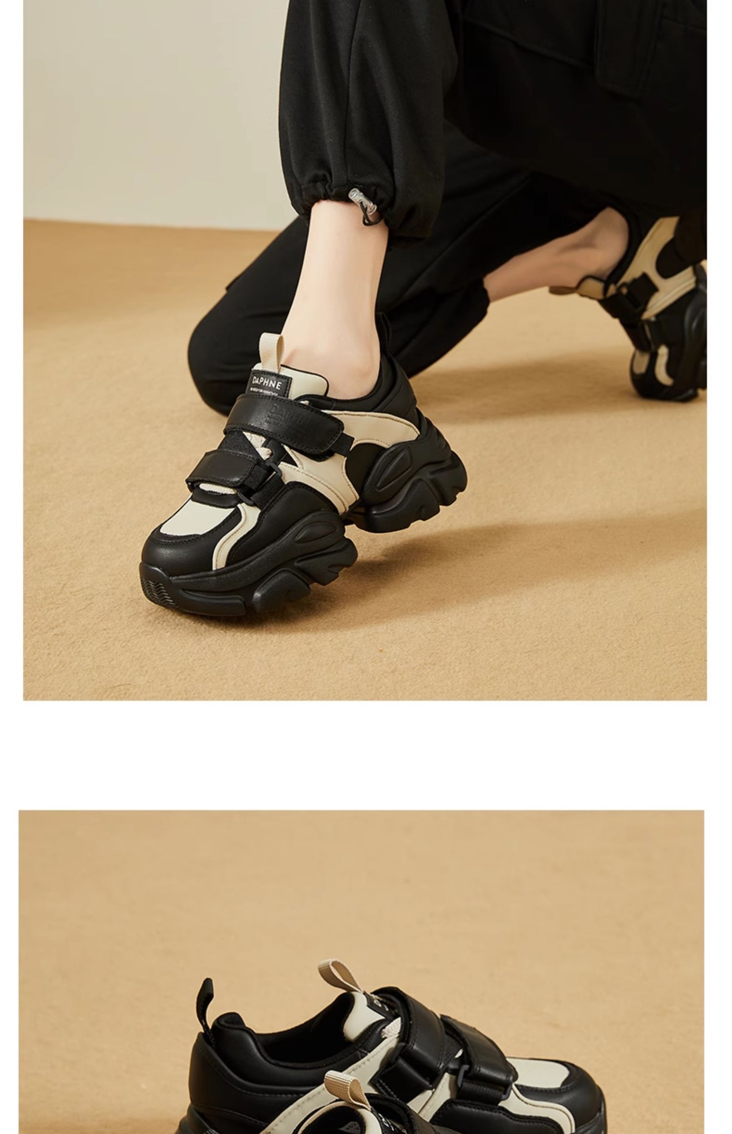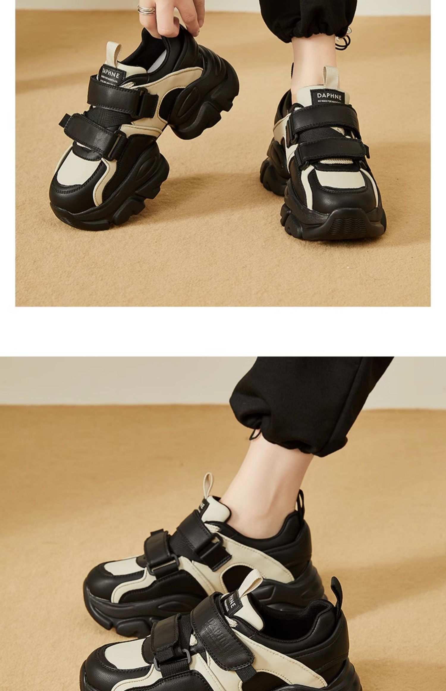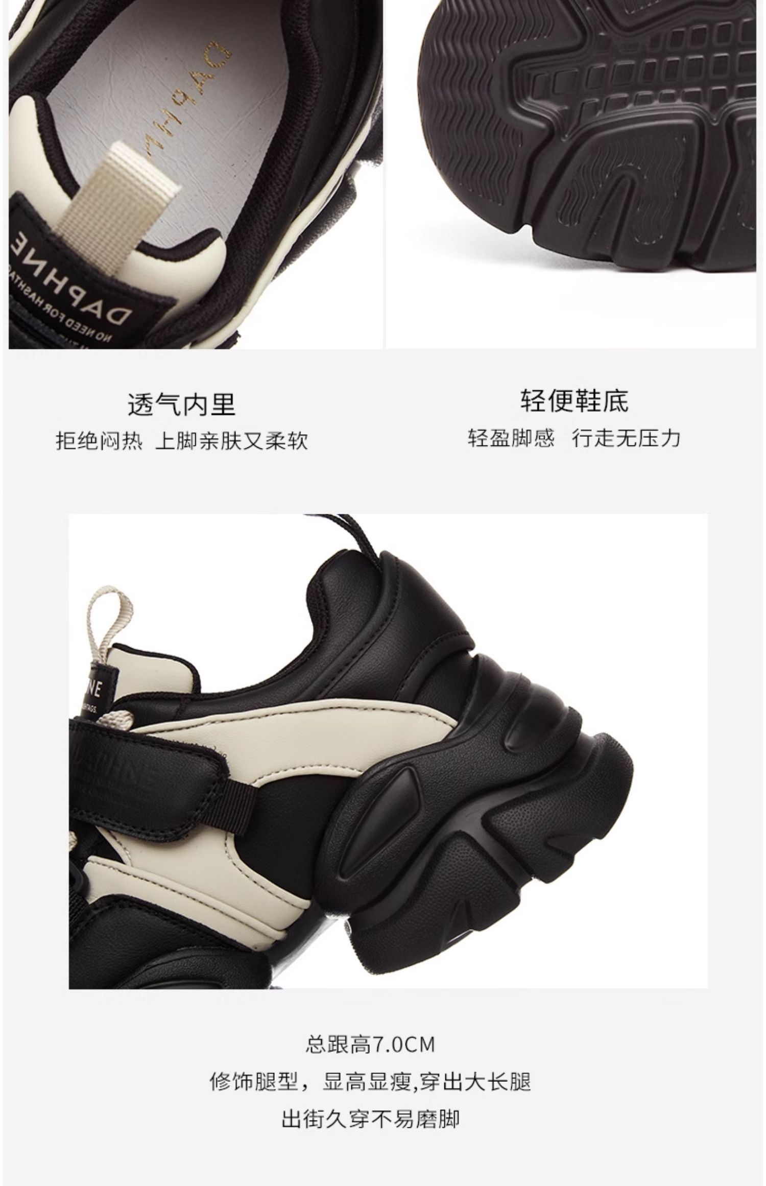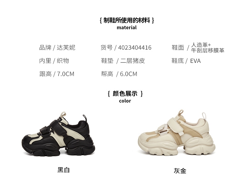 达芙妮魔术贴轻便老爹鞋女款新款夏季厚底增高运动休闲鞋4023404416