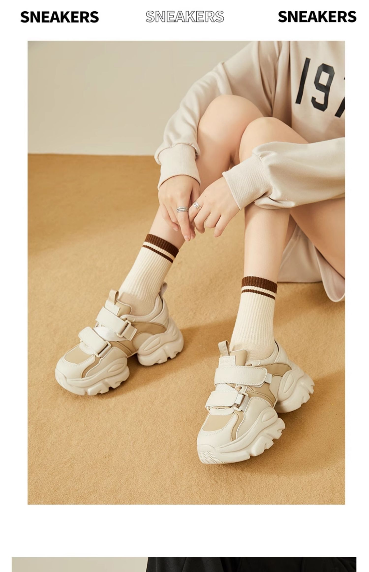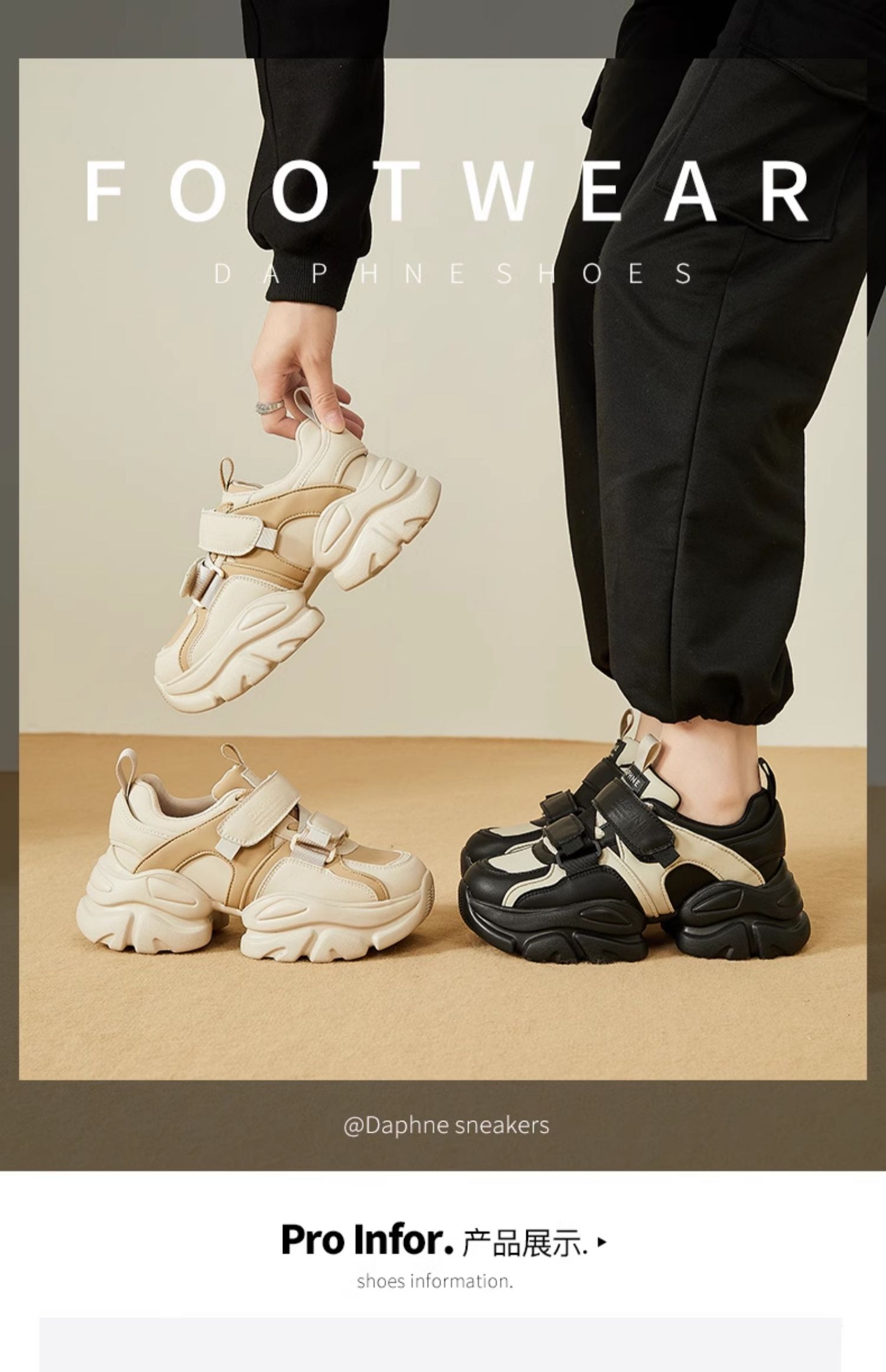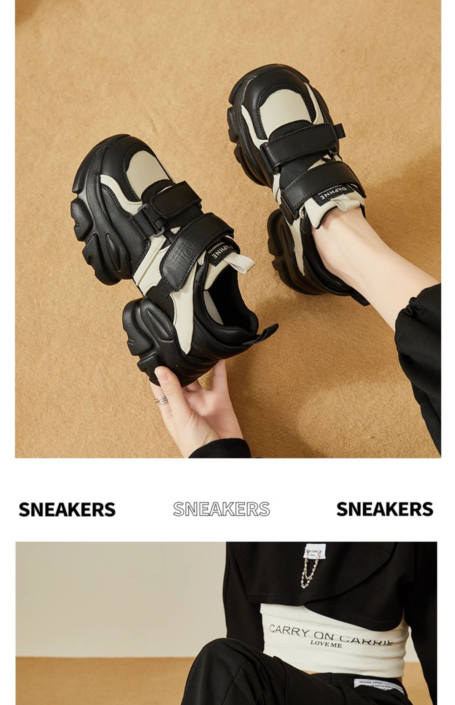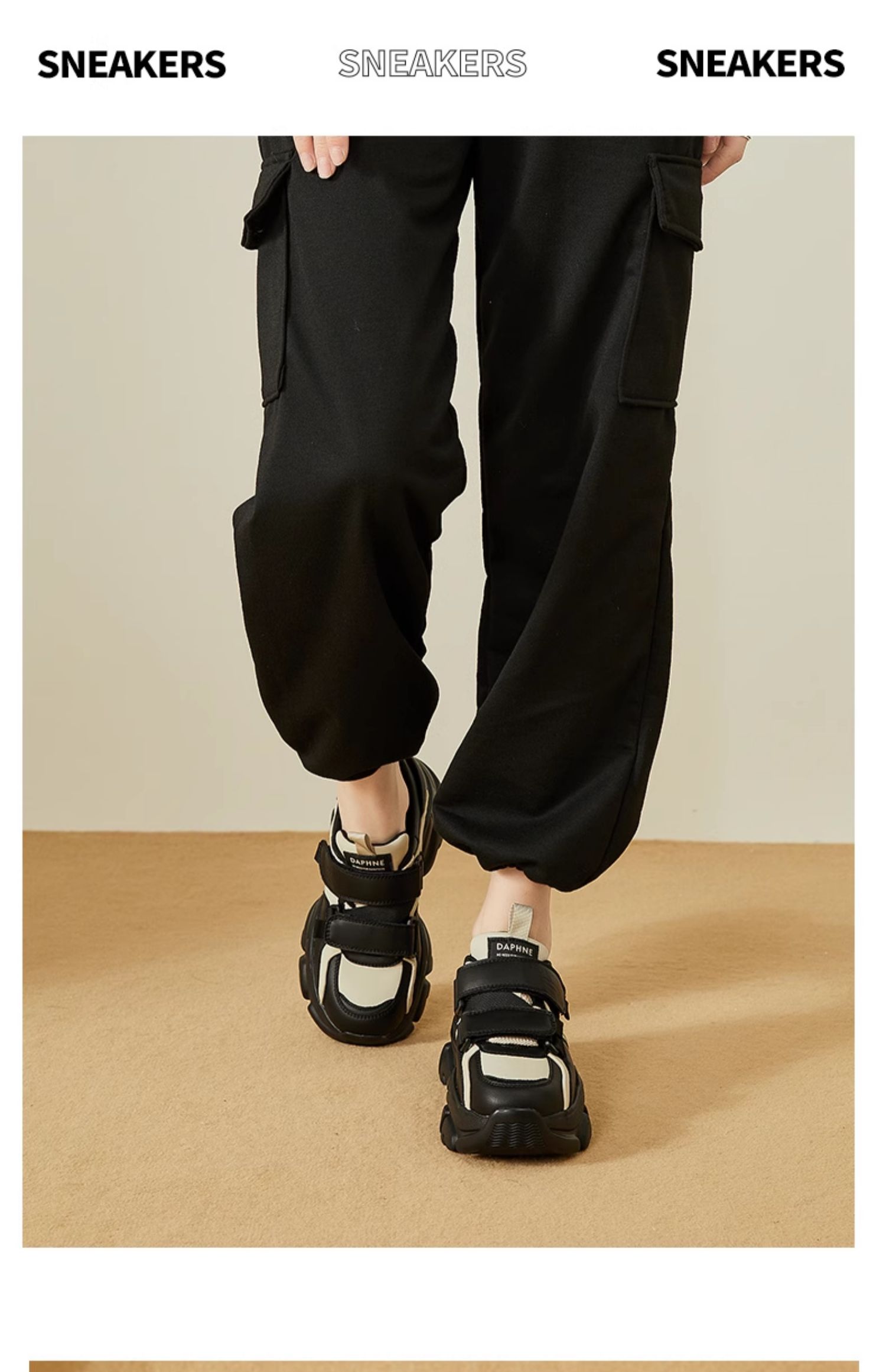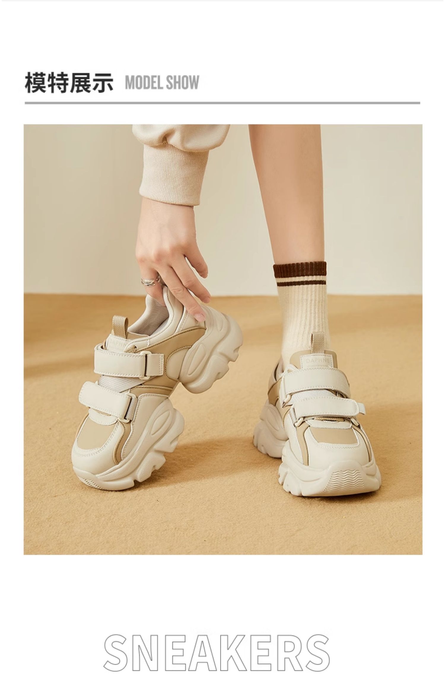 达芙妮魔术贴轻便老爹鞋女款新款夏季厚底增高运动休闲鞋4023404416