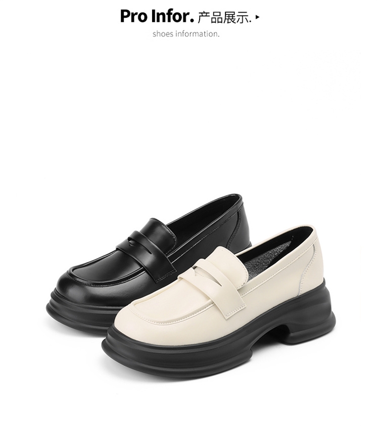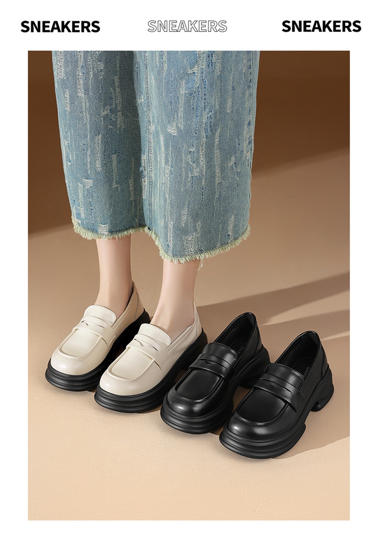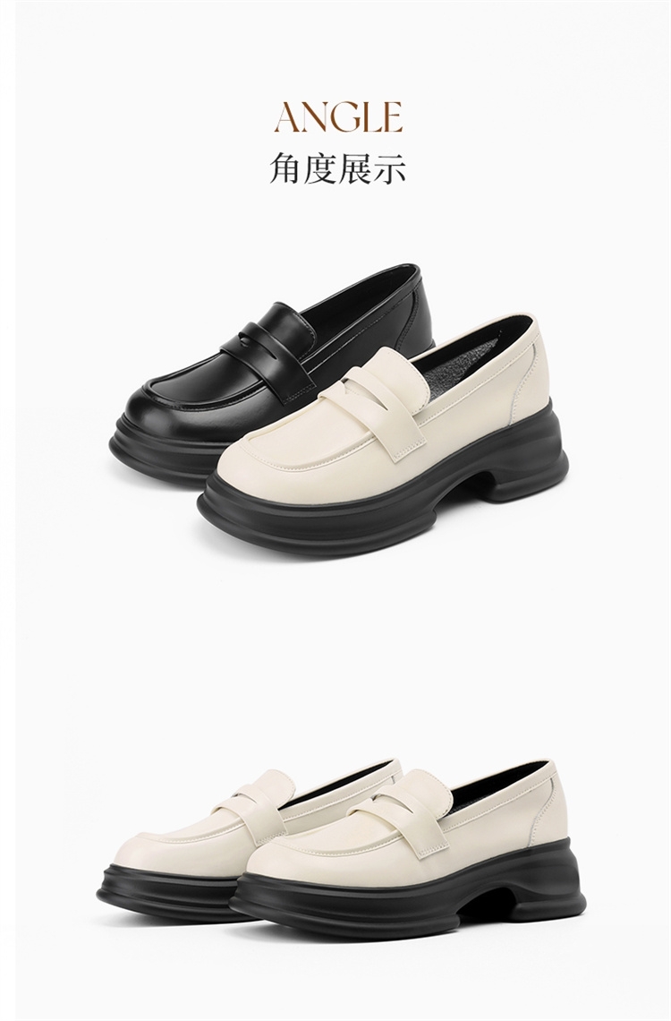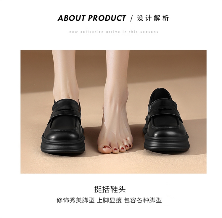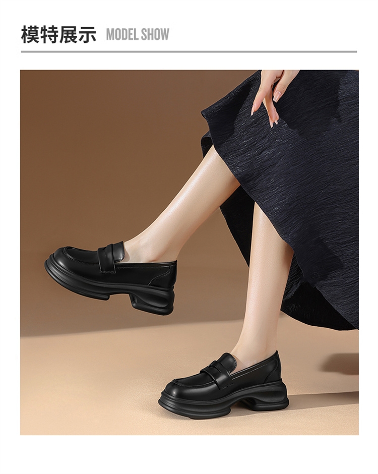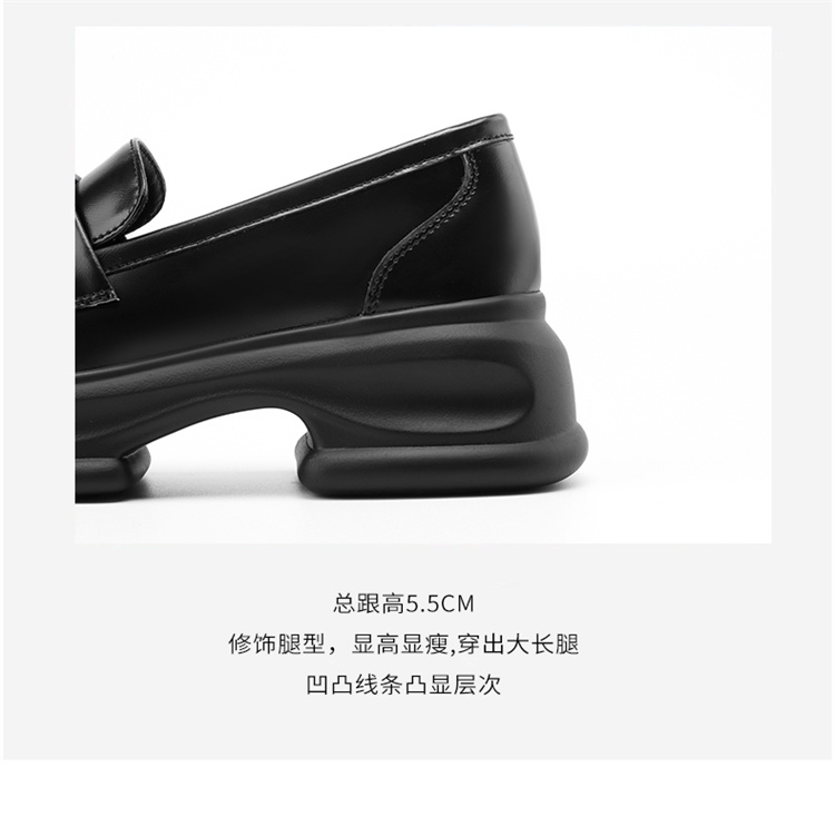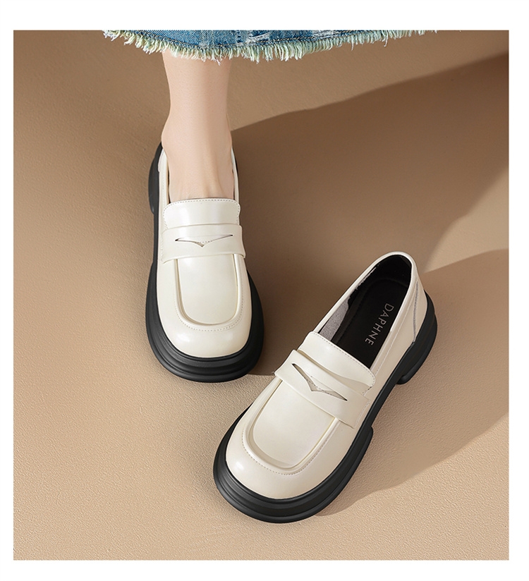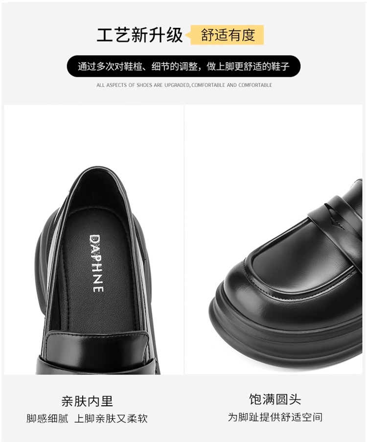 达芙妮厚底增高乐福鞋女新款夏季粗跟一脚蹬小皮鞋4024101268
