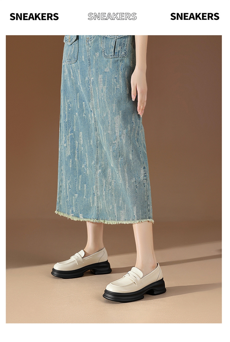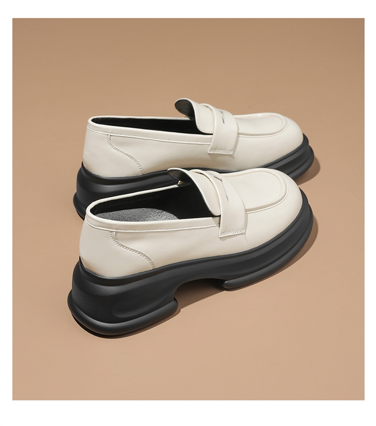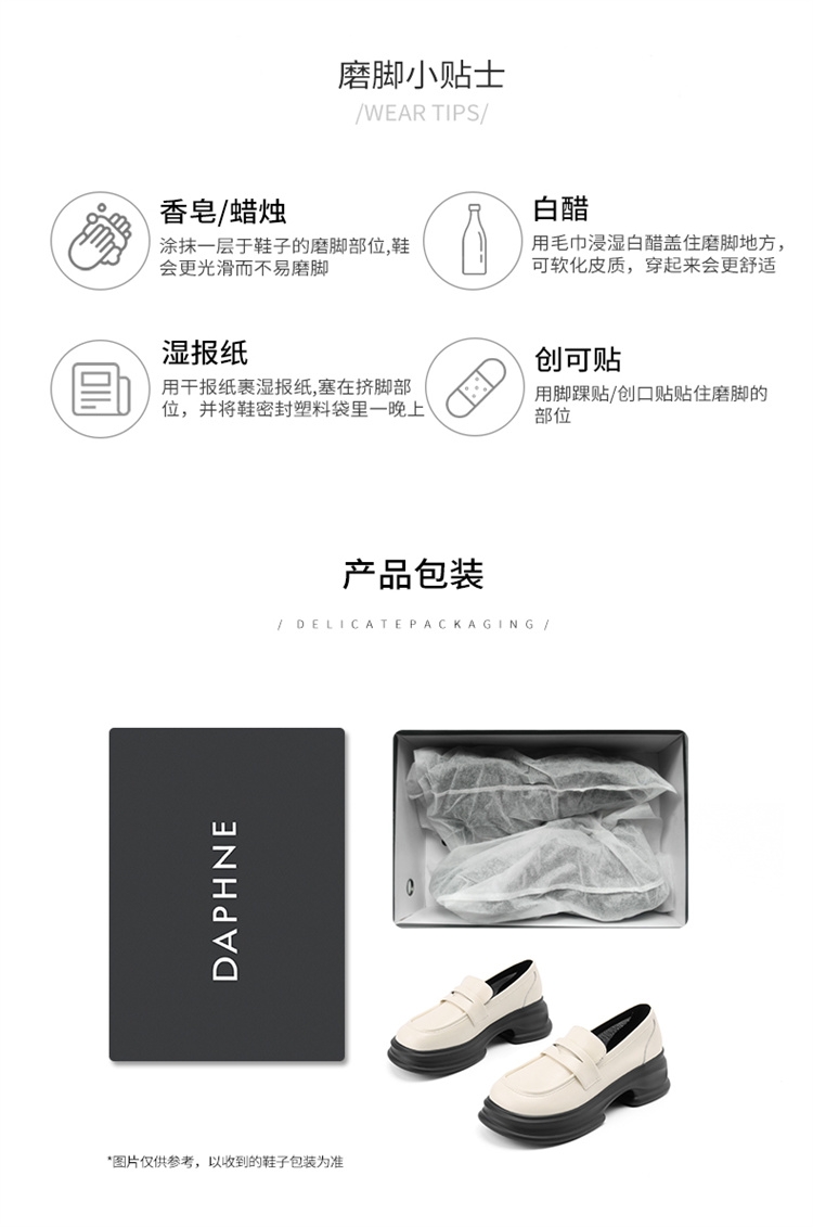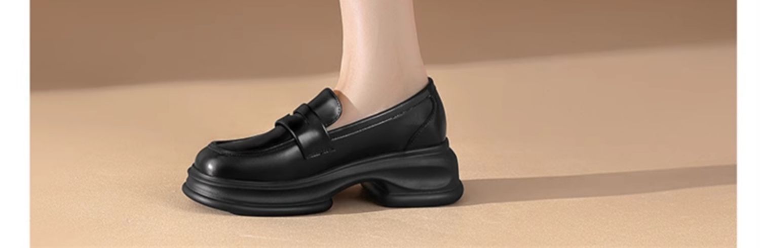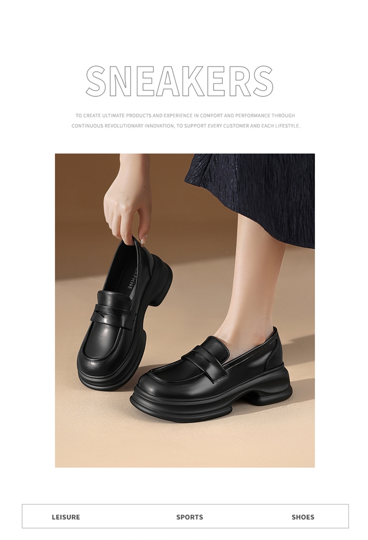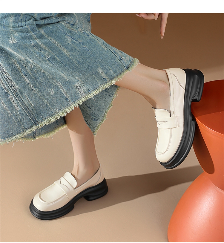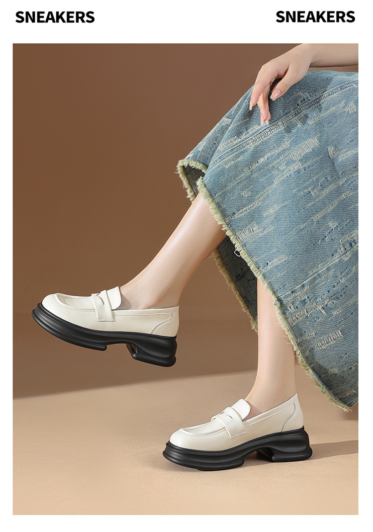达芙妮厚底增高乐福鞋女新款夏季粗跟一脚蹬小皮鞋4024101268